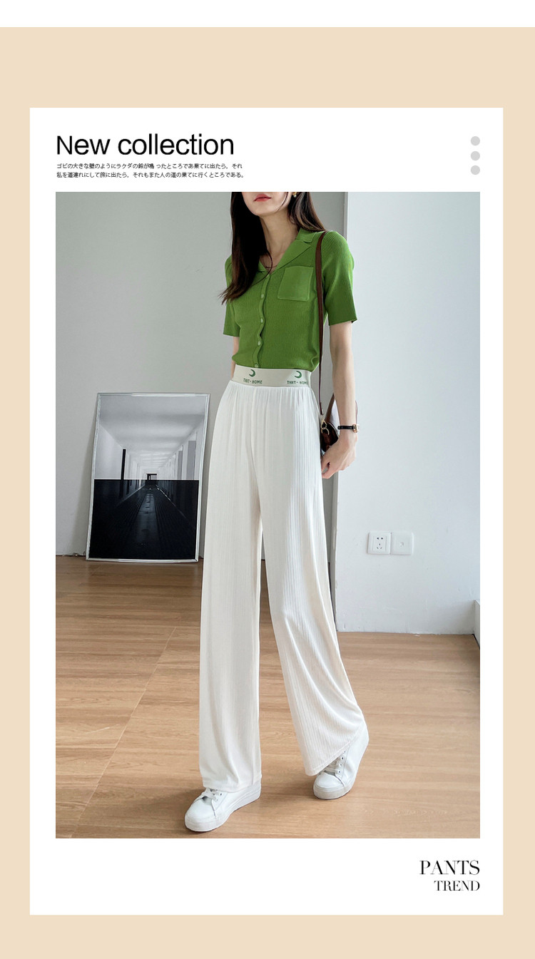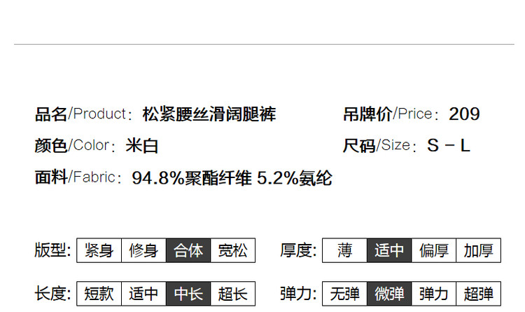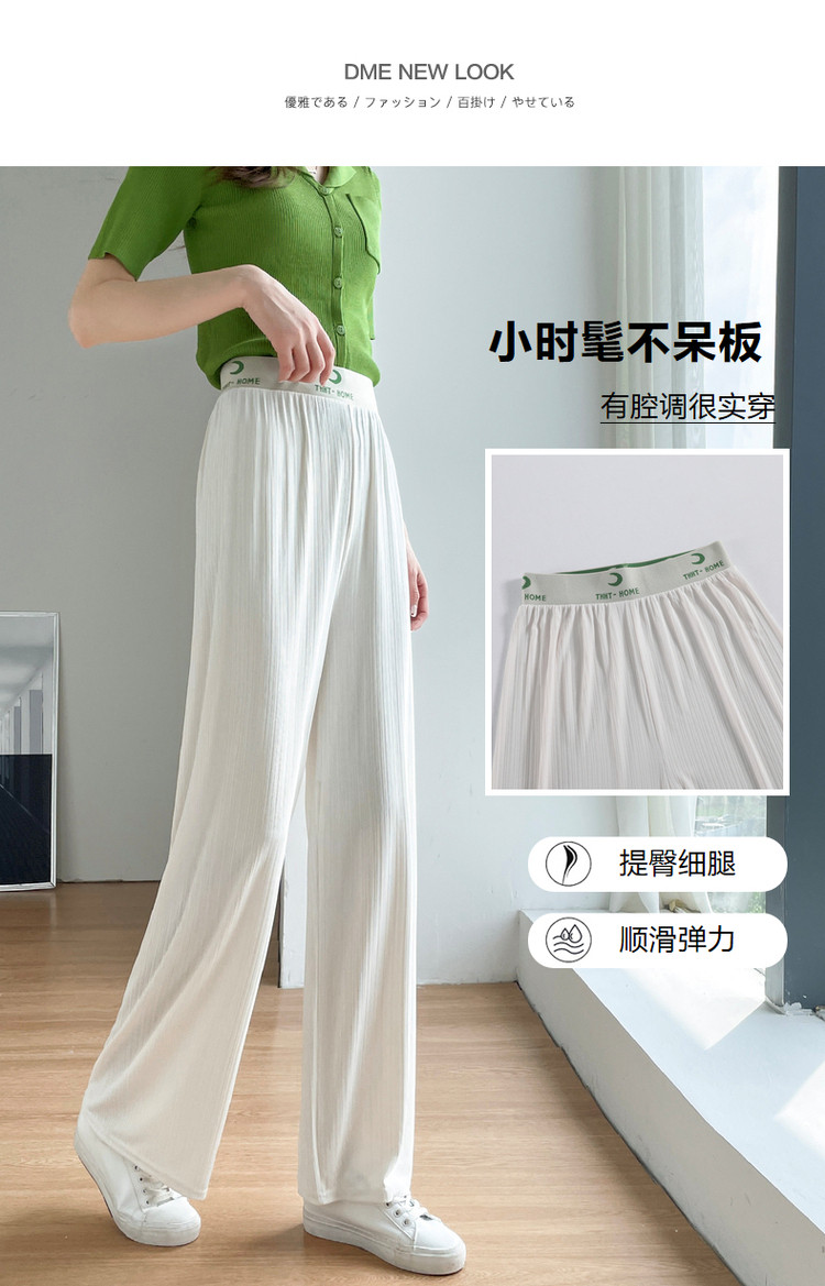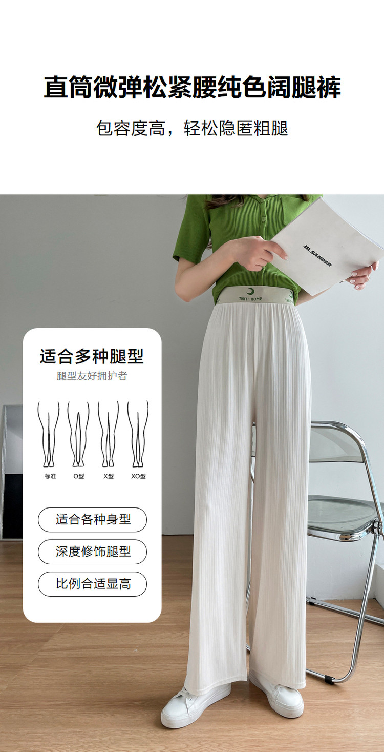 商品名称:【松紧腰阔腿裤】夏季透气长裤子女丝滑女裤直筒休闲裤 629505