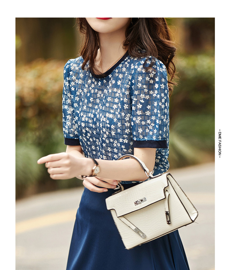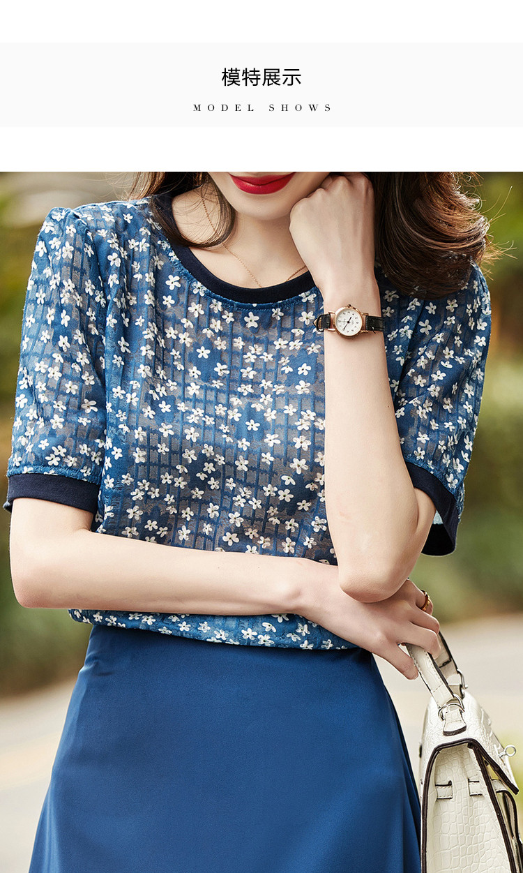 商品名称:【印花衬衣】夏季撞色合体休闲衬衫女上衣 799233