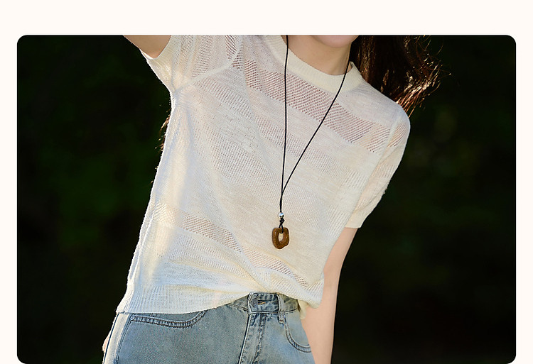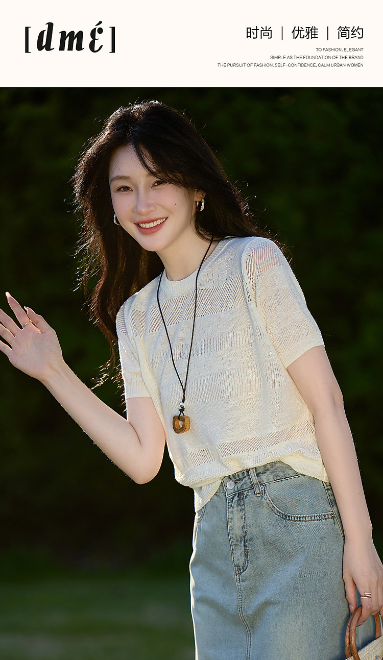 商品名称:【法风浮雕肌理】夏优雅不重样圆领线衫局部镂空质感针织衫女上衣 441345