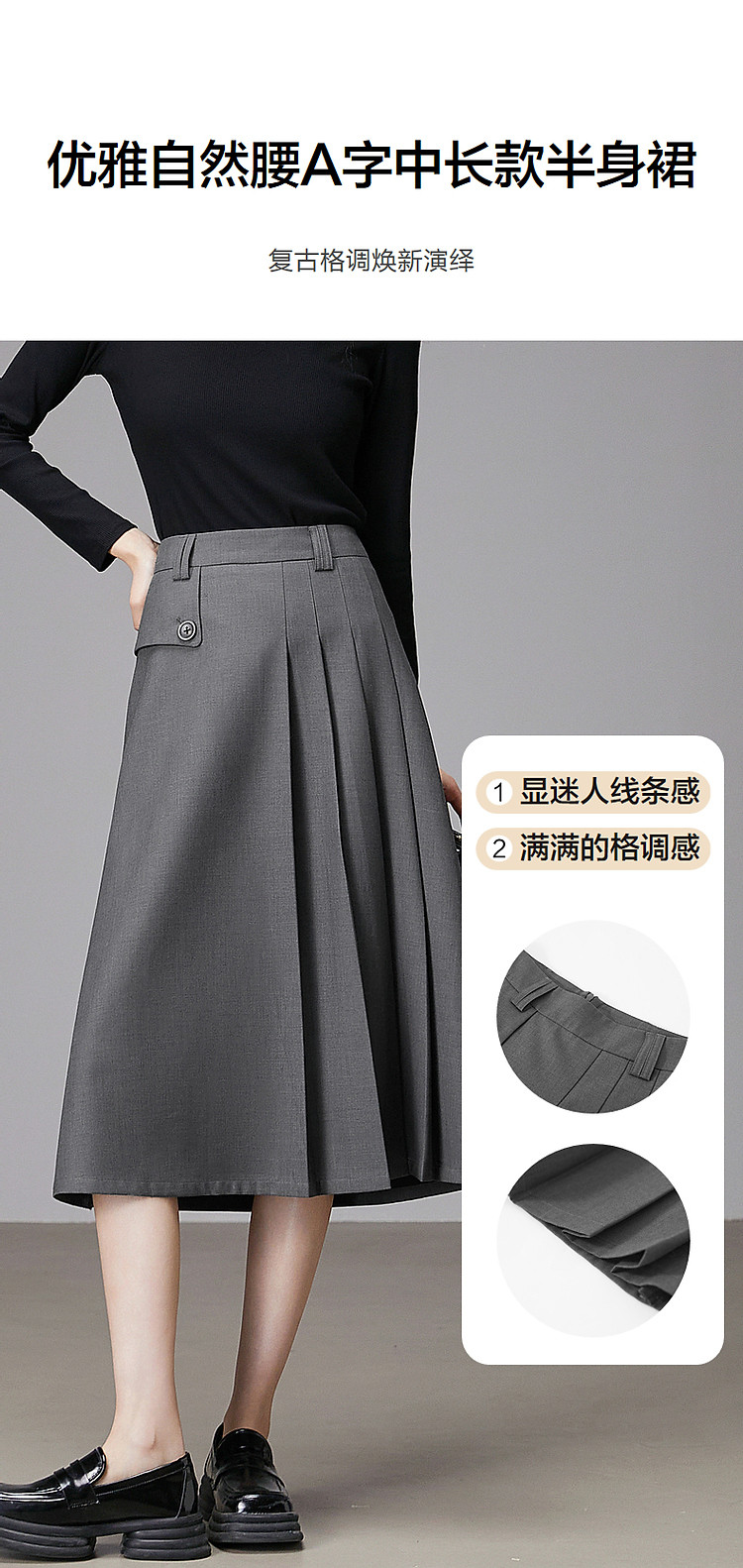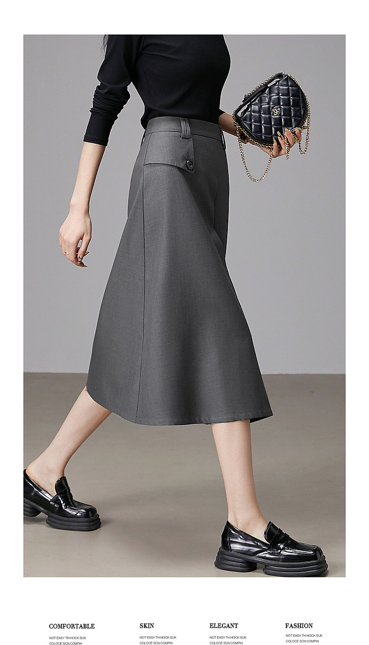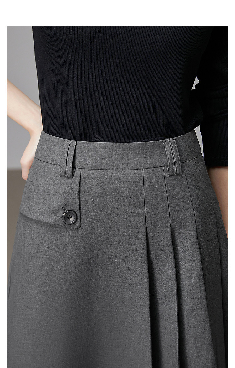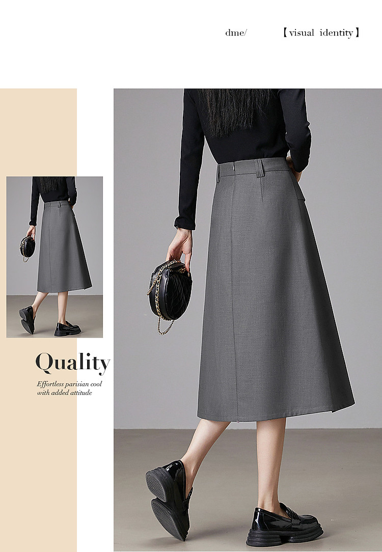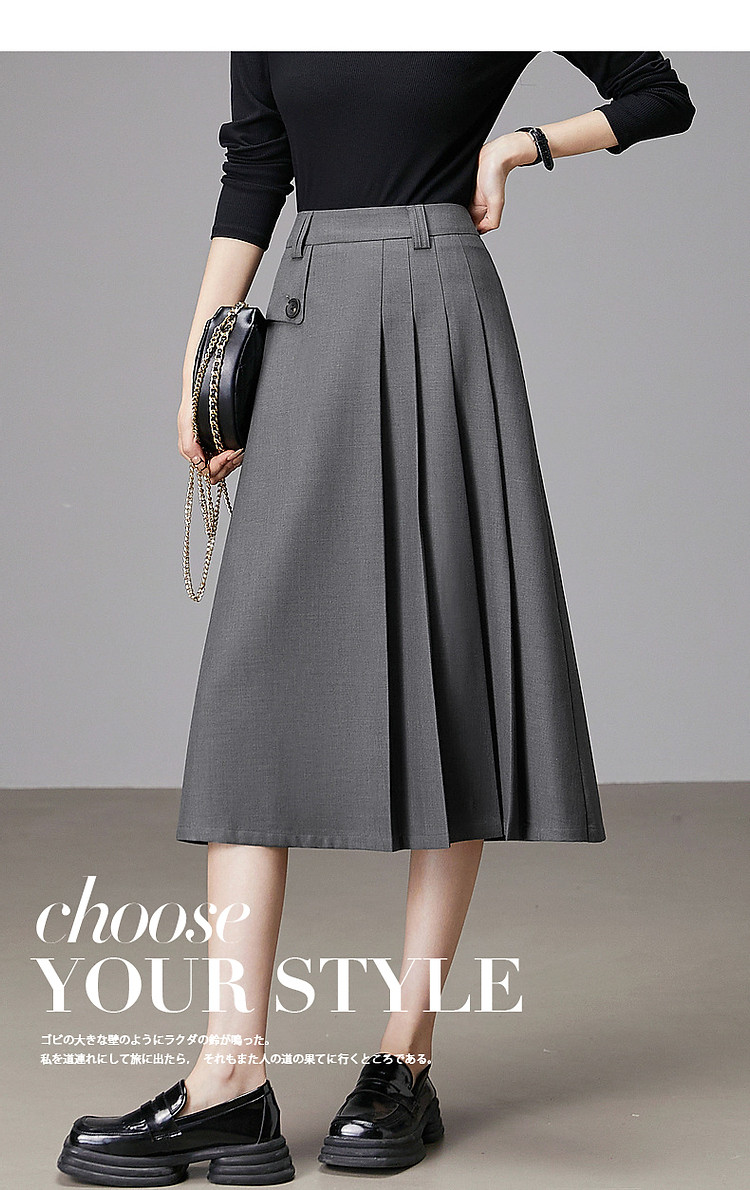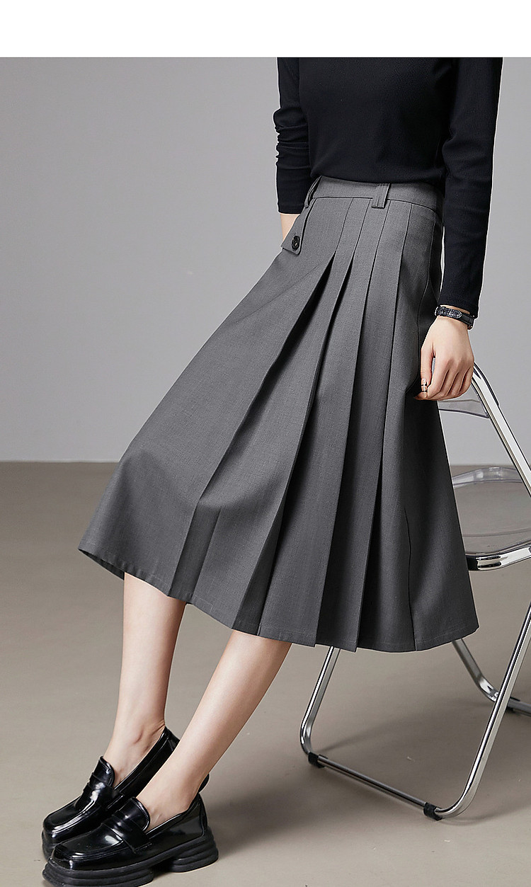 商品名称:【知识分子穿搭】春季智性风打褶中腰A字气质藏肉半身裙女中长款 800065