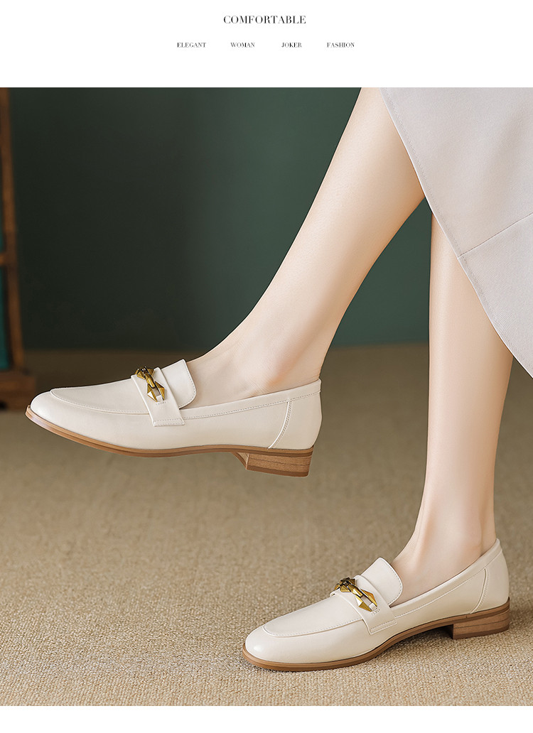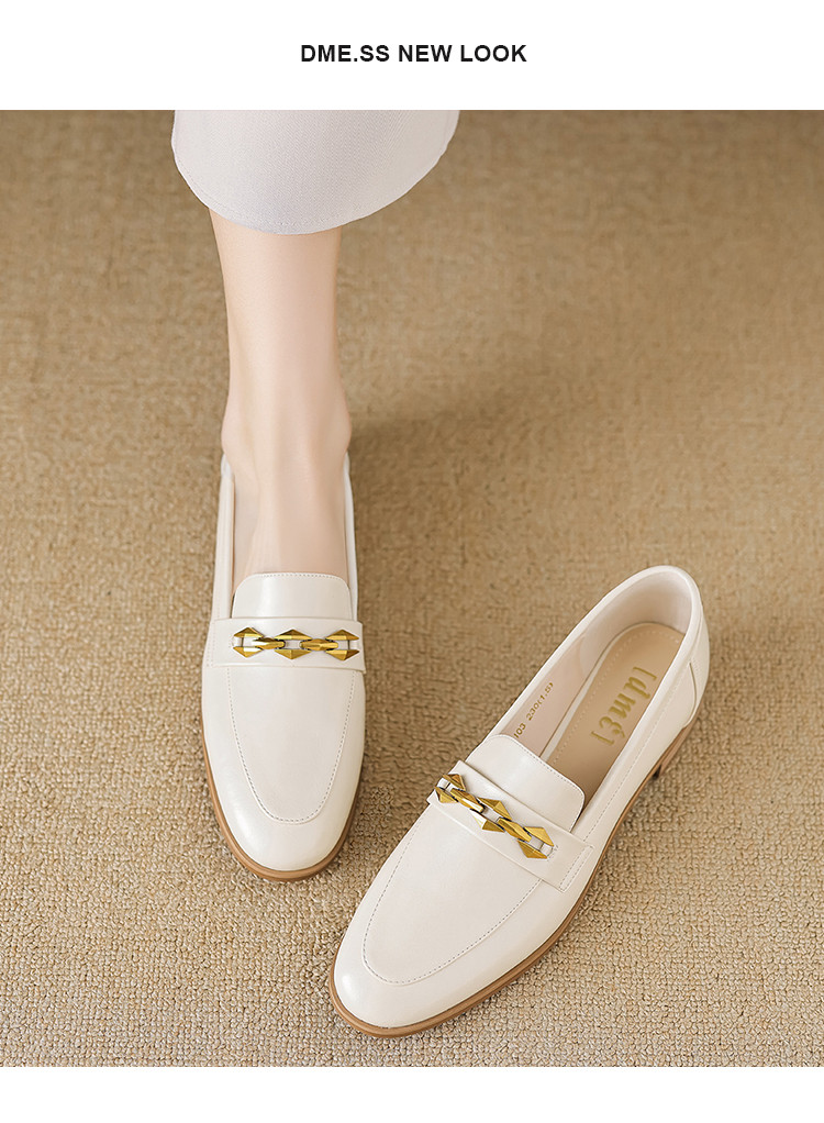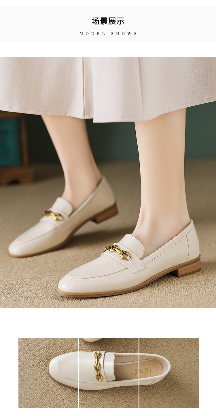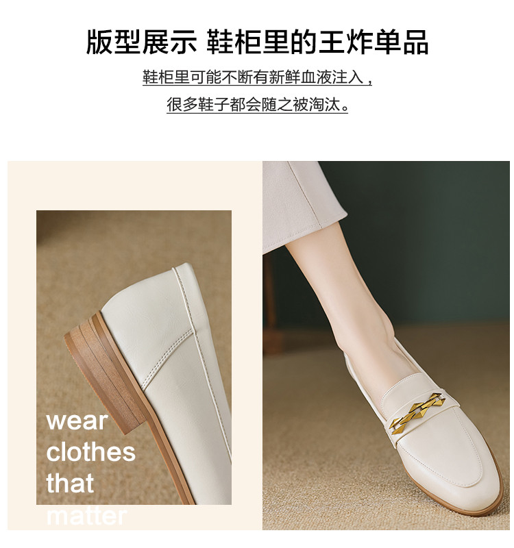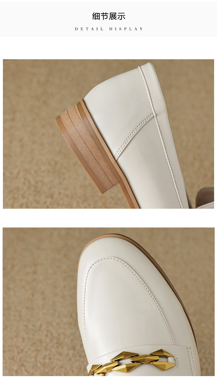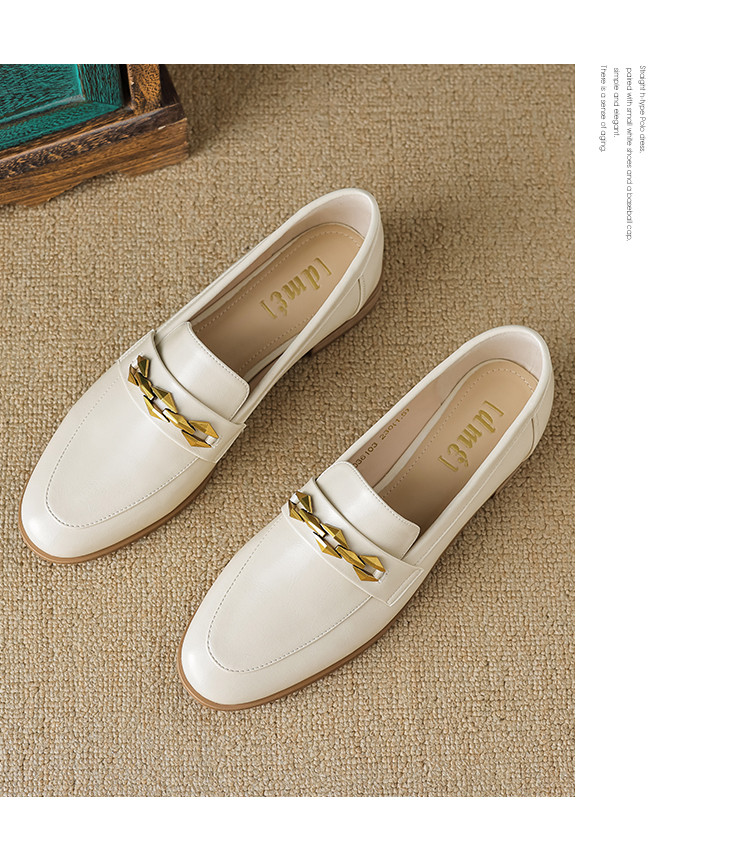 商品名称:春季复古通勤撞色底金属饰扣圆头时装乐福鞋女单鞋 460609