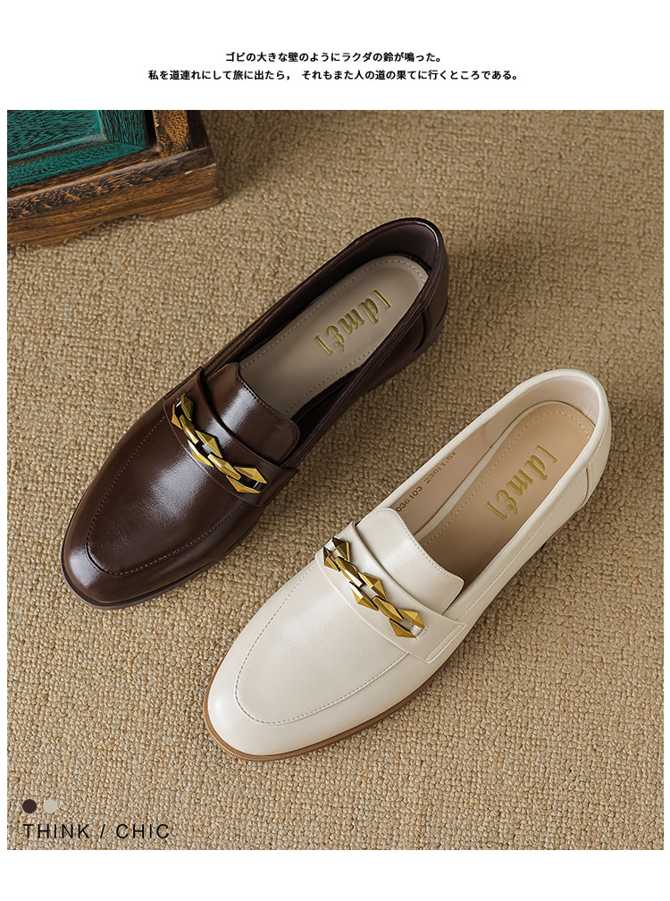 春季复古通勤撞色底金属饰扣圆头时装乐福鞋女单鞋 460609