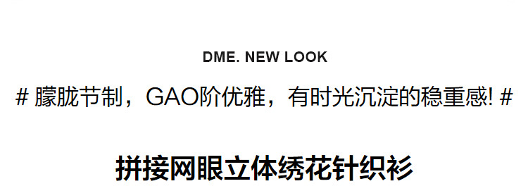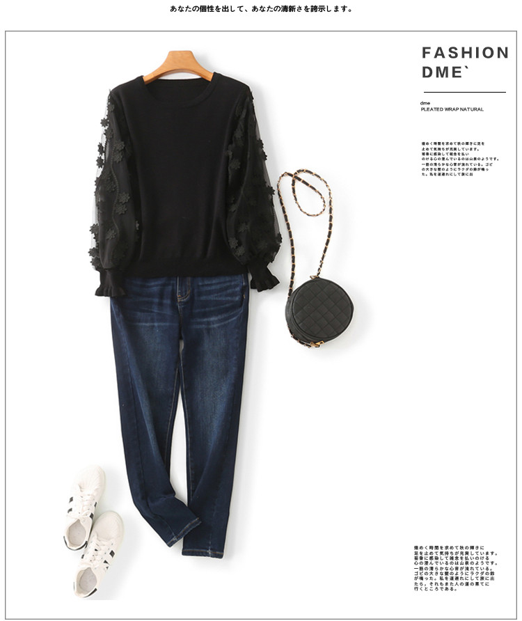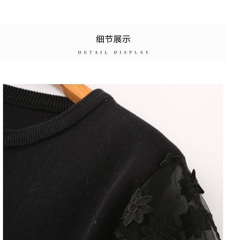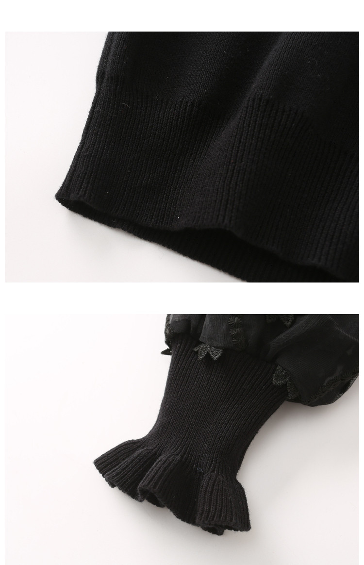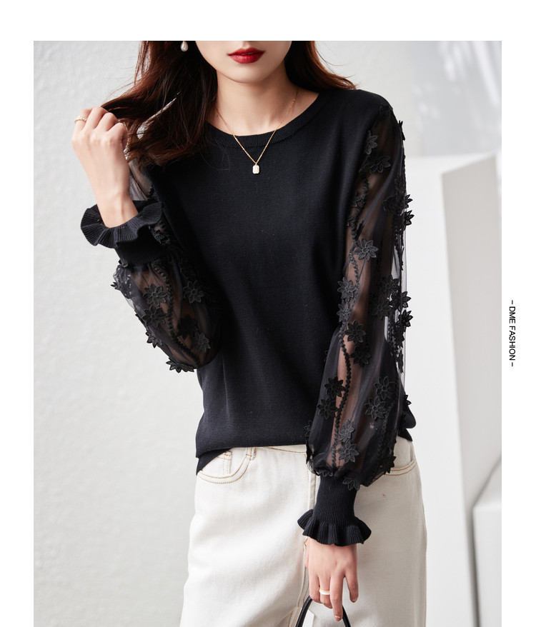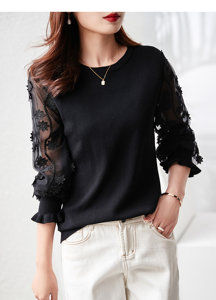 商品名称:【网眼绣花】春秋季圆领木耳边拼接女式针织衫女 869889