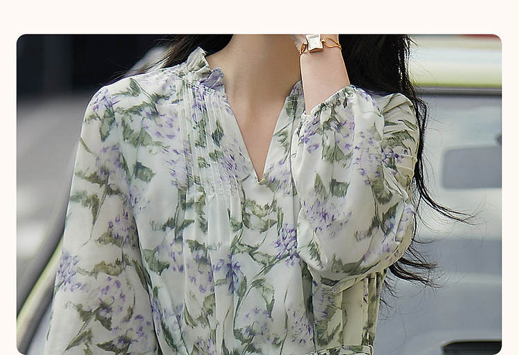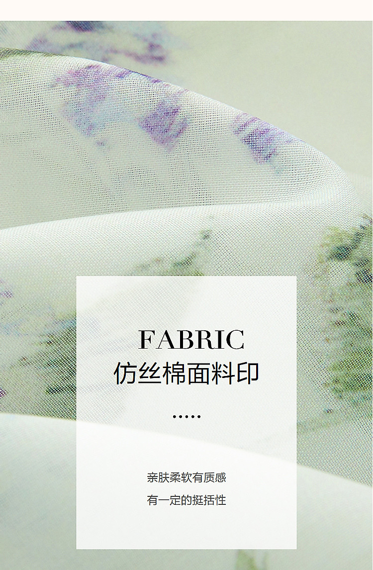 商品名称:【仿丝棉印花茶歇裙】春秋V领木耳边腰带长袖女裙子连衣裙女长款 776257