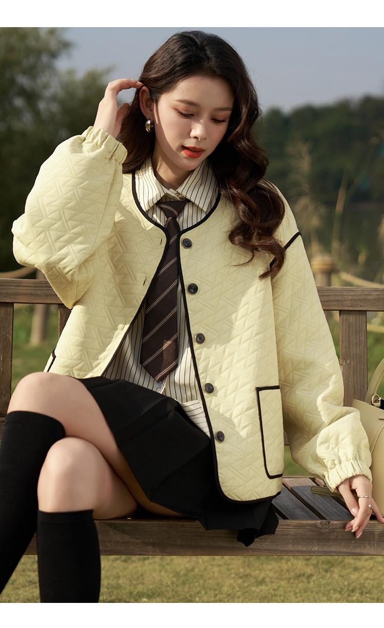 【撞色包边香风外套】春秋松弛感显瘦减龄学院甜美短款薄款外套女 570177