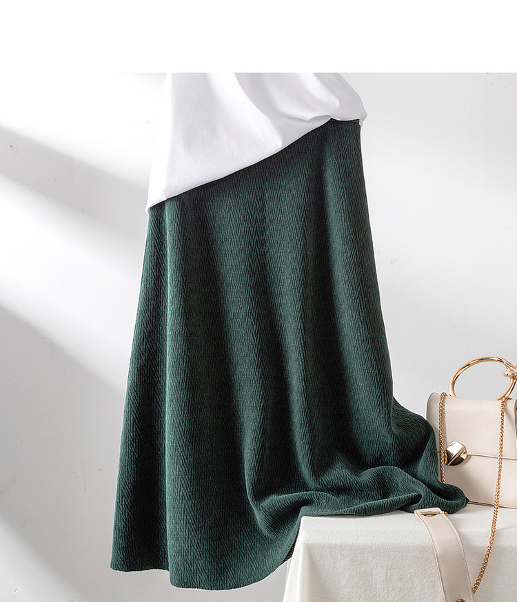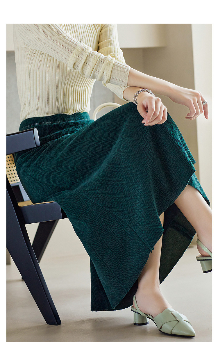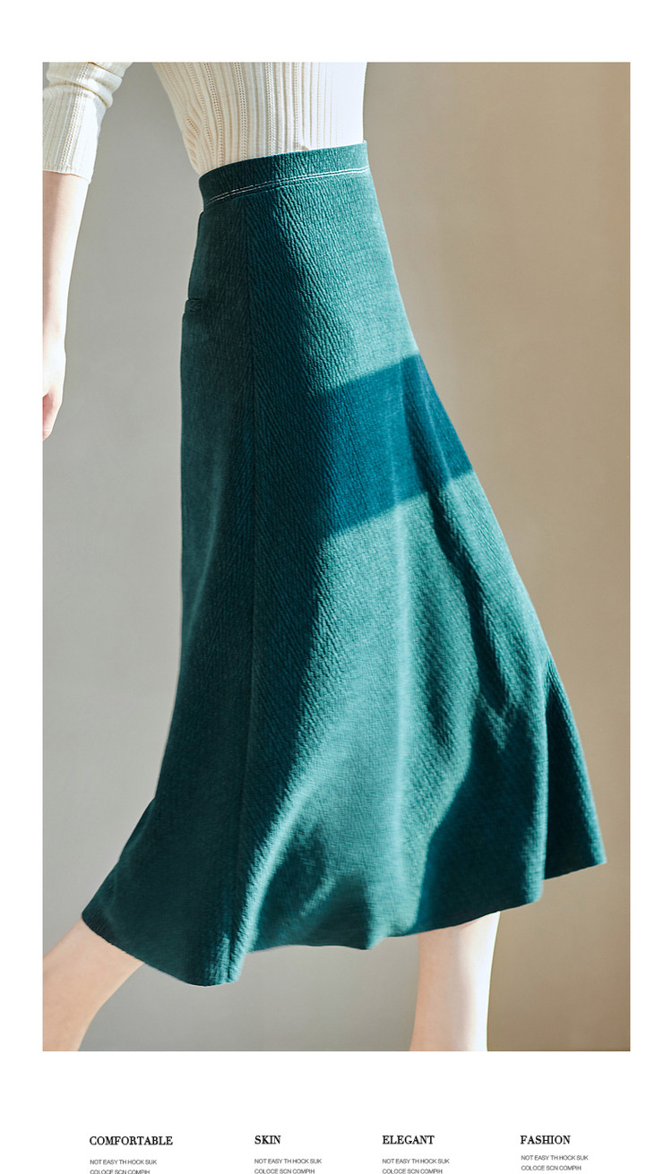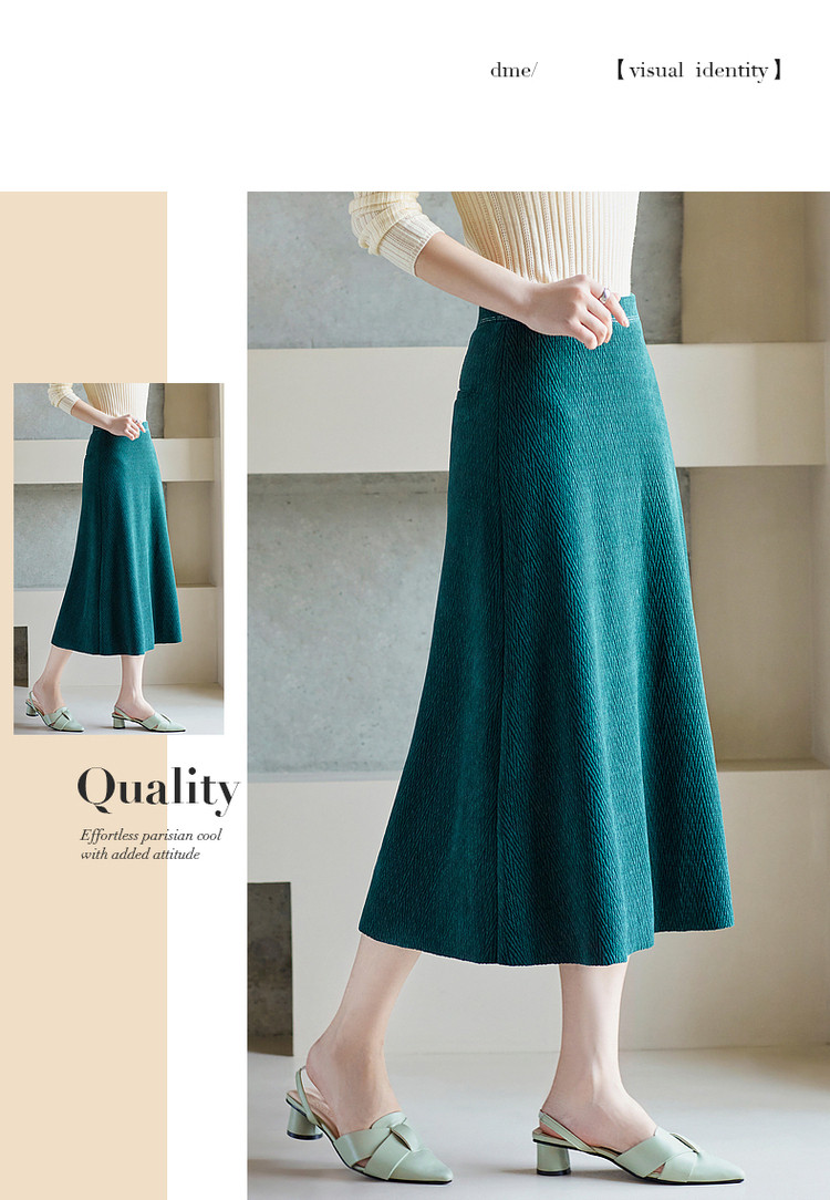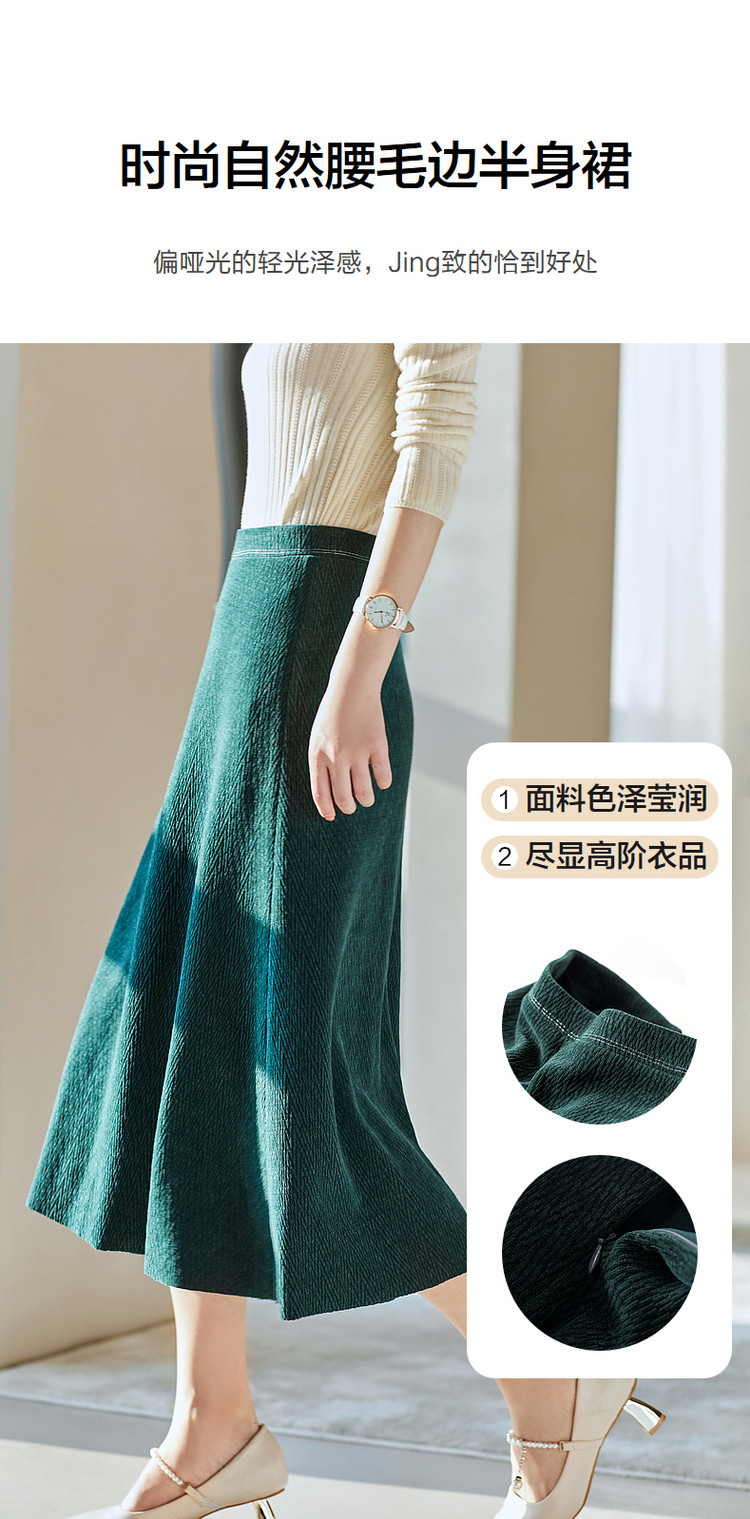 商品名称:【针织毛边半裙】春秋季中腰拉链伞裙a字明线半身裙女中长款 189953