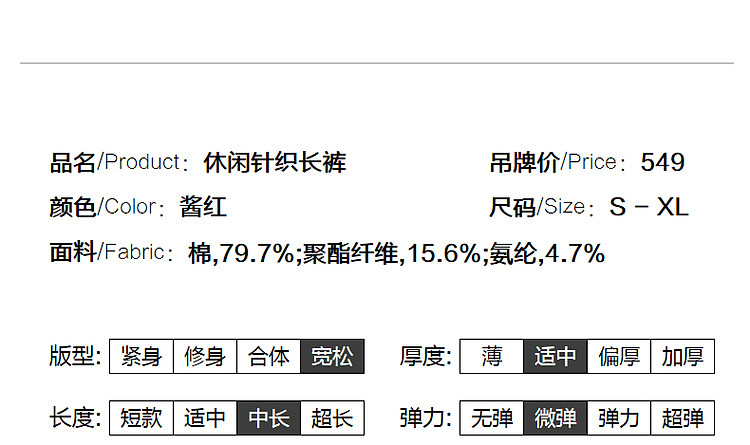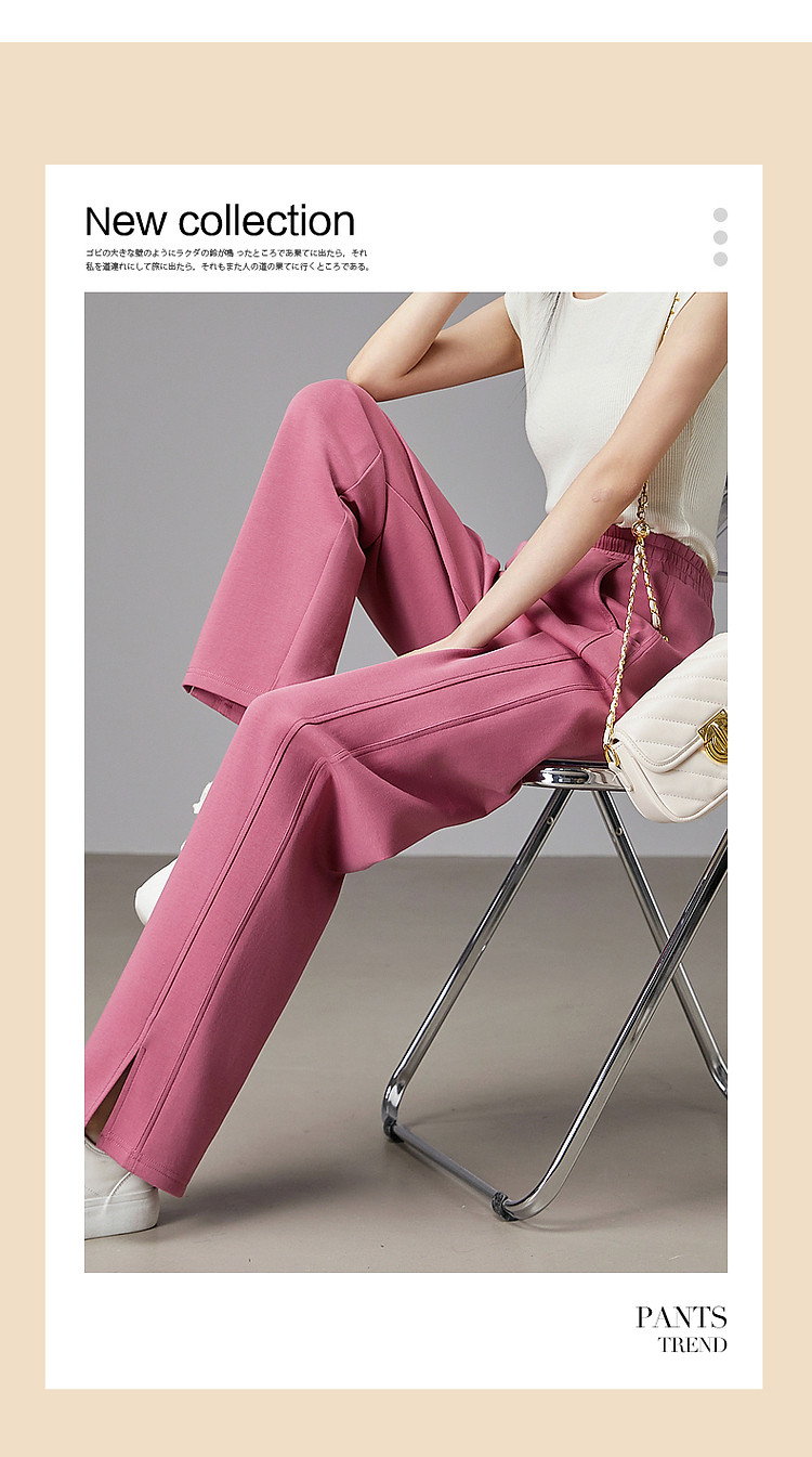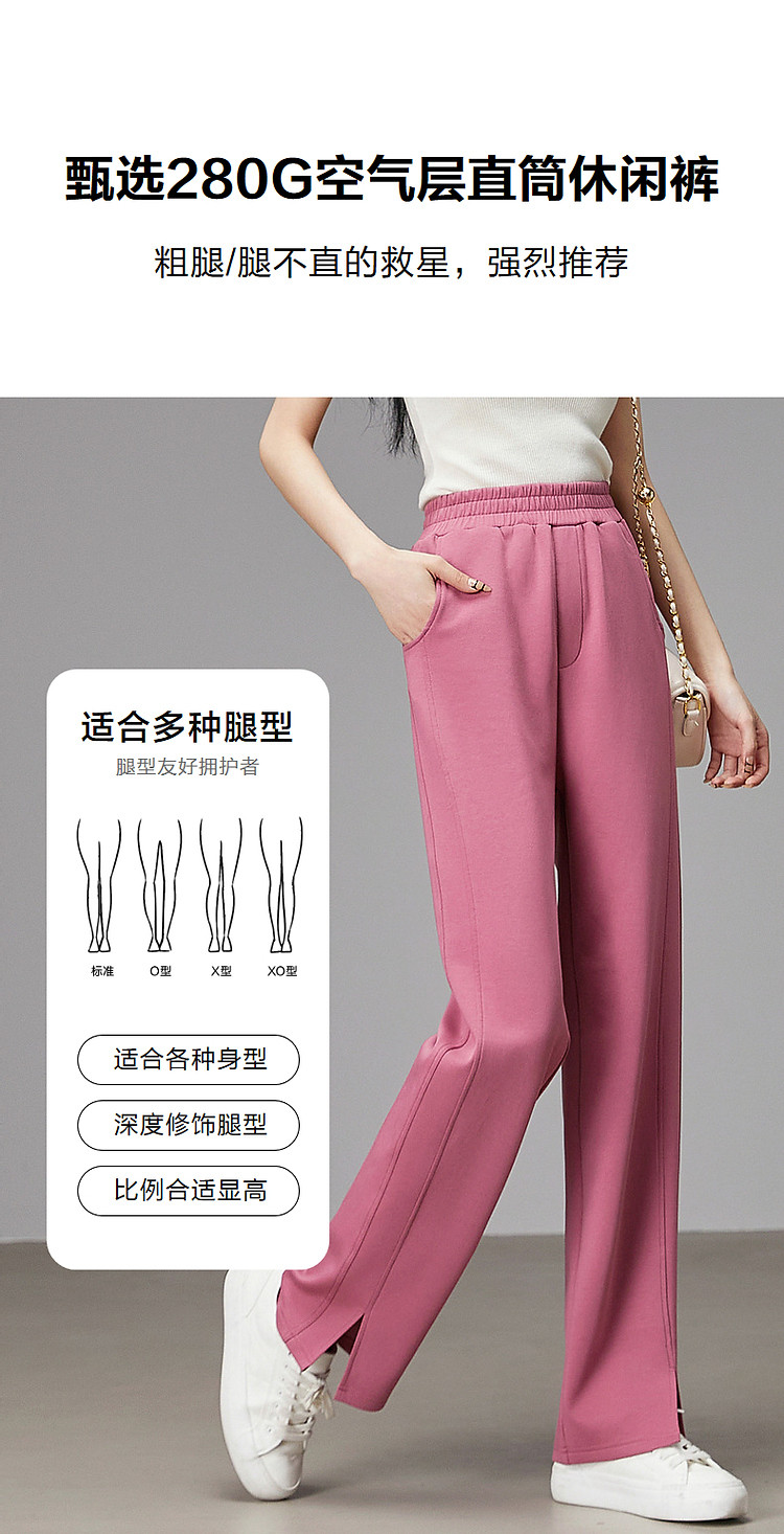 商品名称:【甄选280G空气层】春秋新松紧腰长裤女裤直筒分割线休闲裤 523585