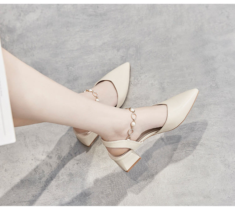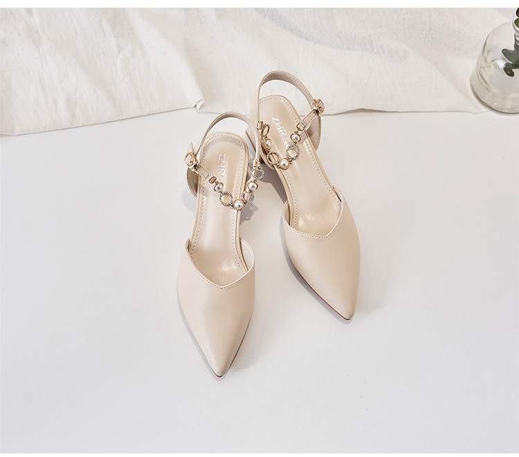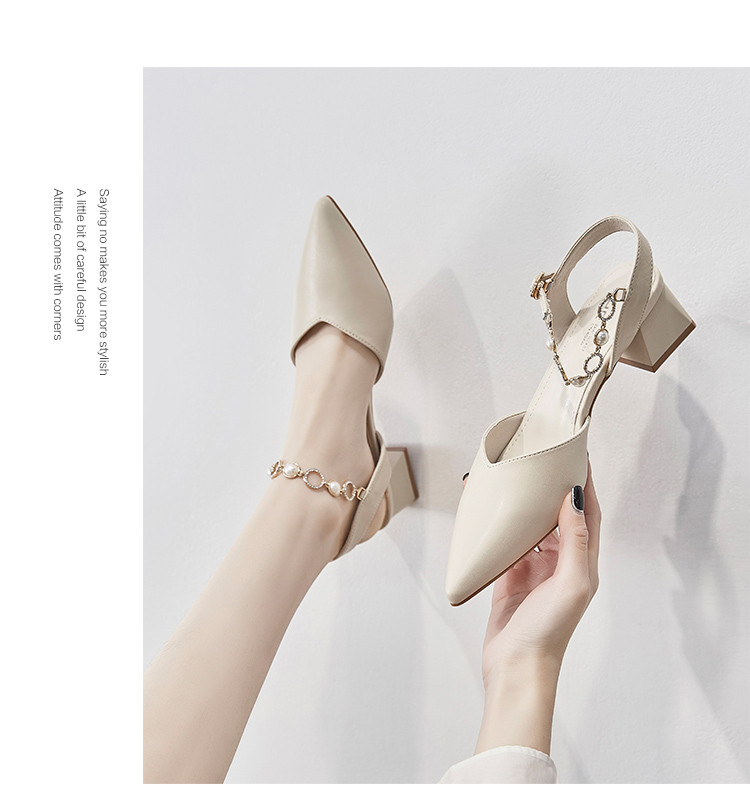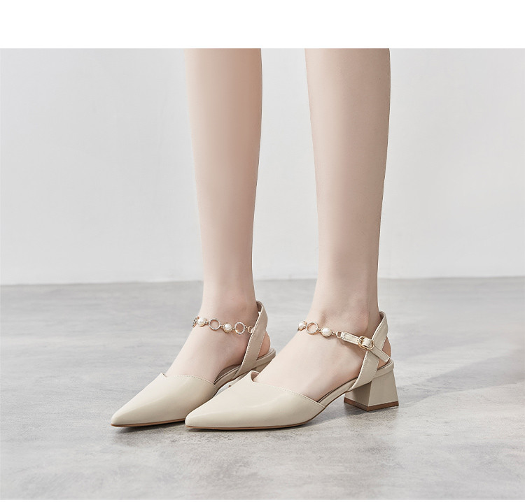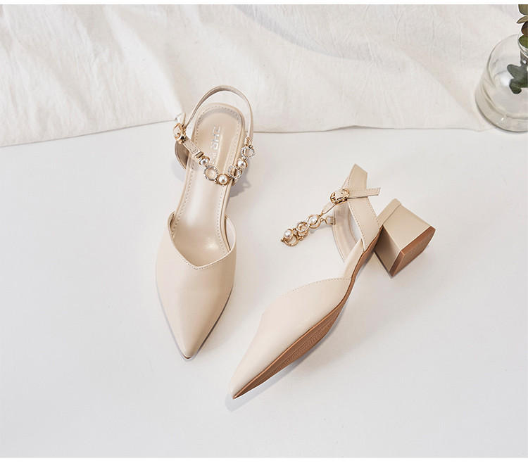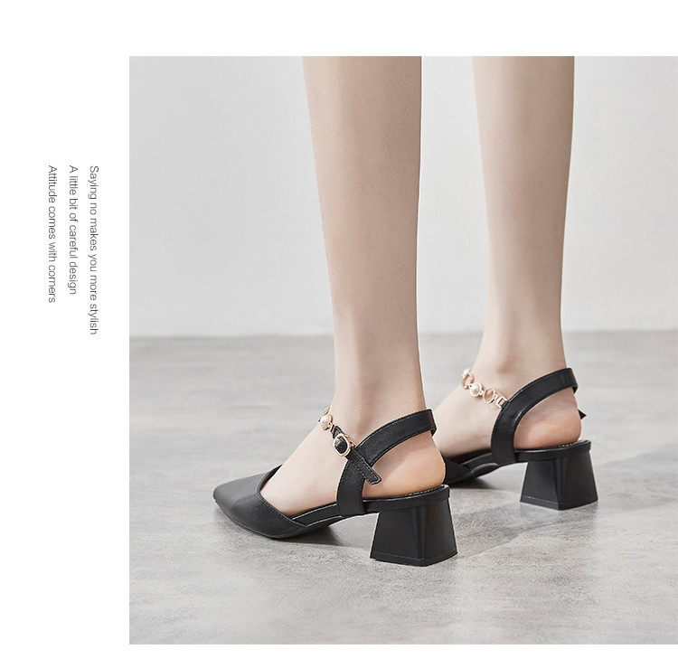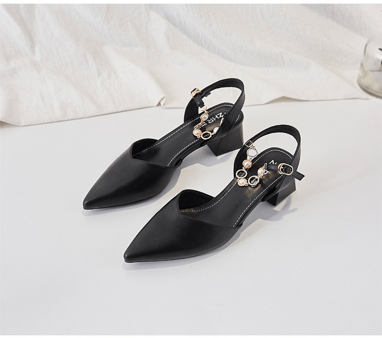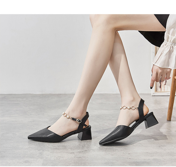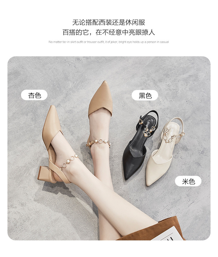 商品名称:【珍珠水钻】气质尖头粗跟包头凉鞋女一字带凉鞋女士凉鞋夏季凉鞋 119424
