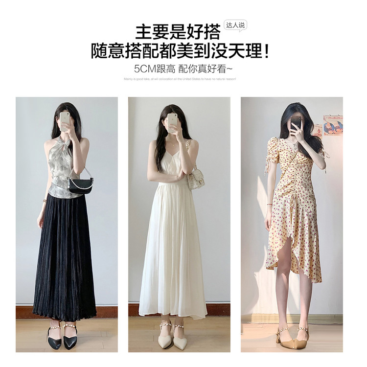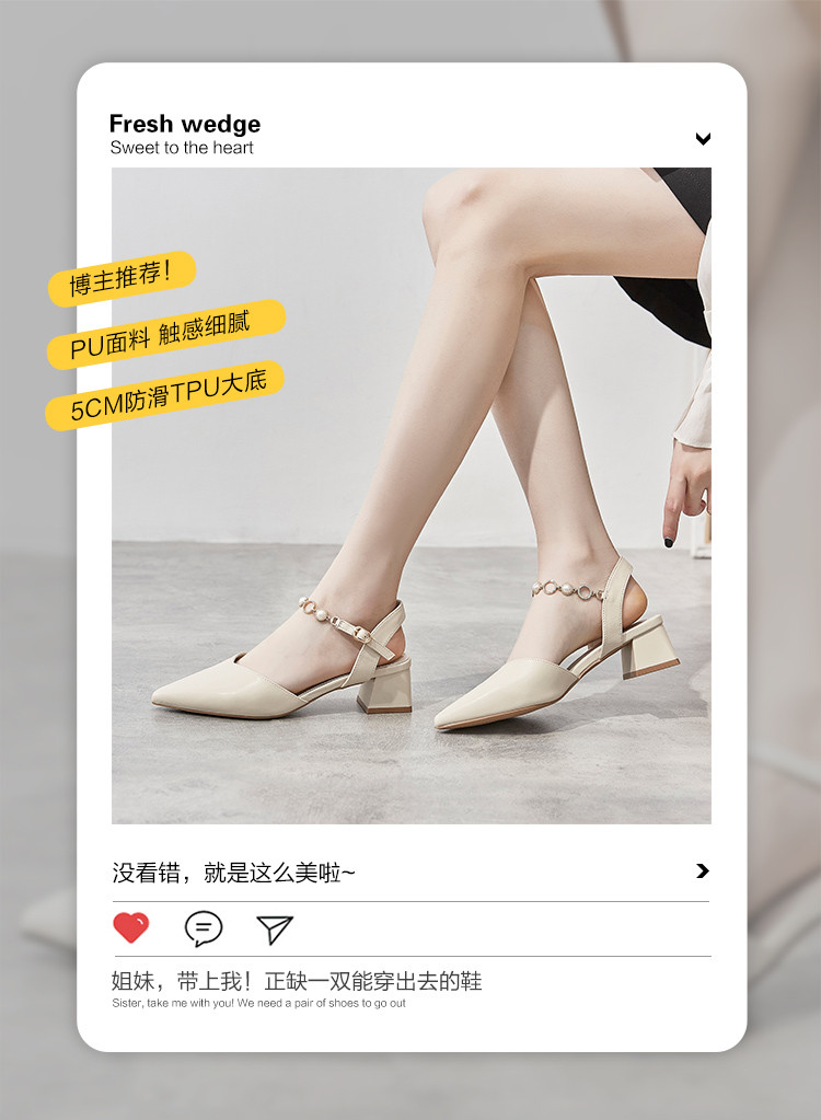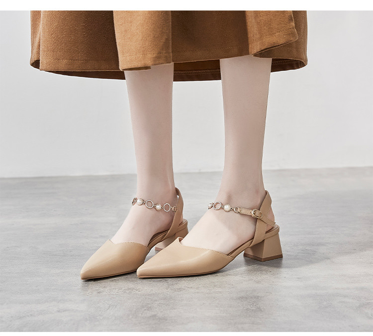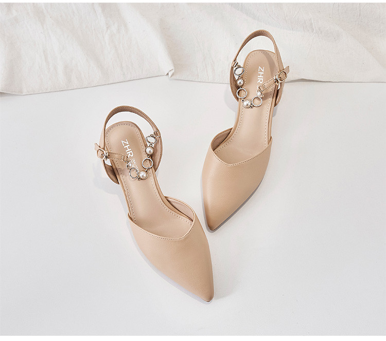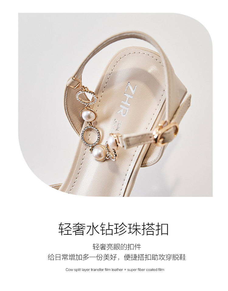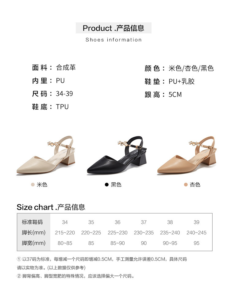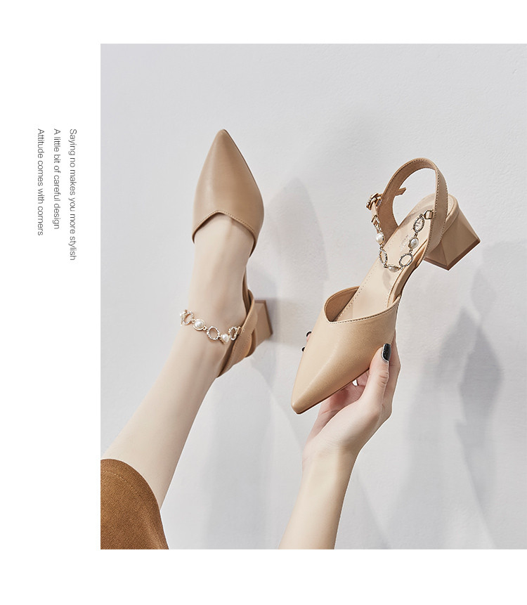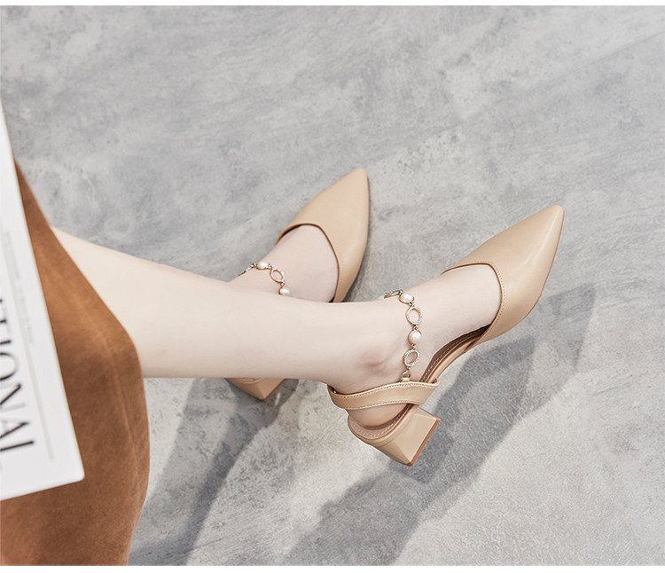 商品名称:【珍珠水钻】气质尖头粗跟包头凉鞋女一字带凉鞋女士凉鞋夏季凉鞋 119424