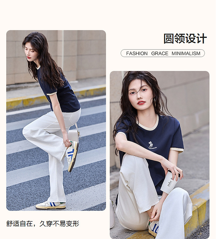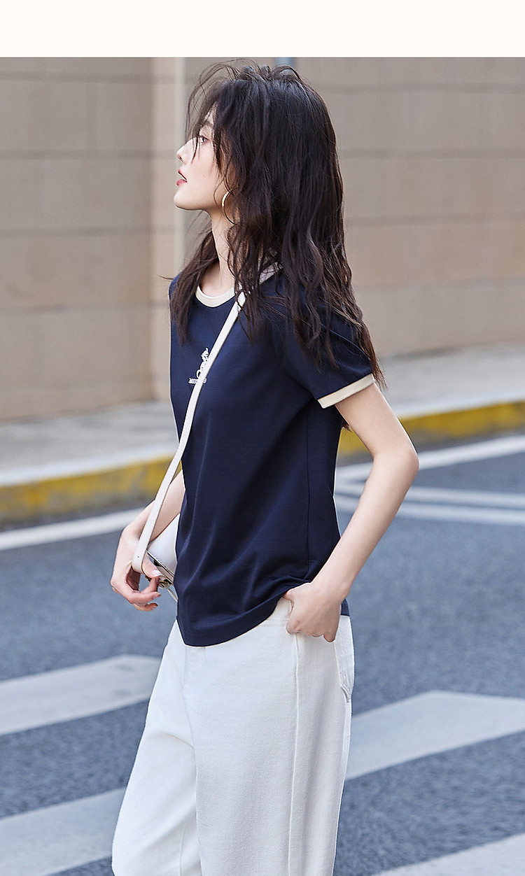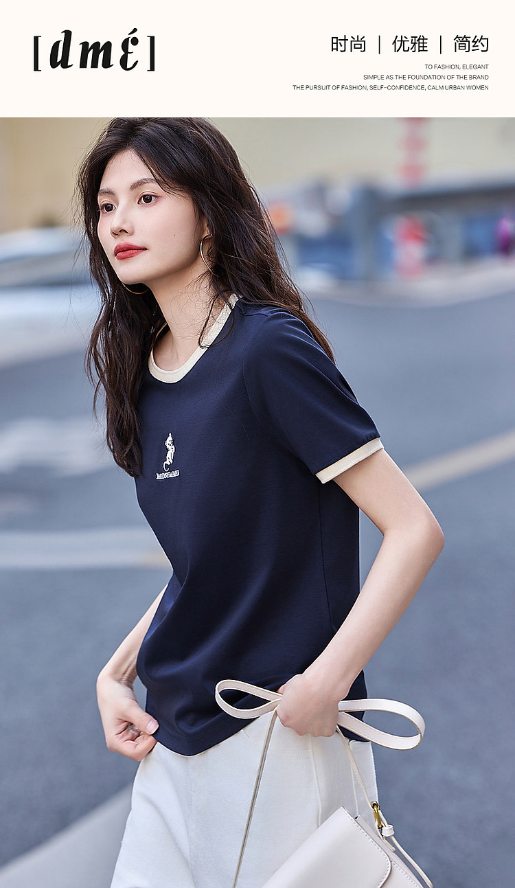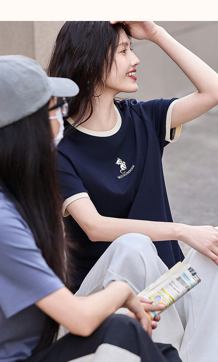 商品名称:【猫咪控可入】夏阳光棉可爱字母绣花短袖撞色罗纹女式t恤 147713