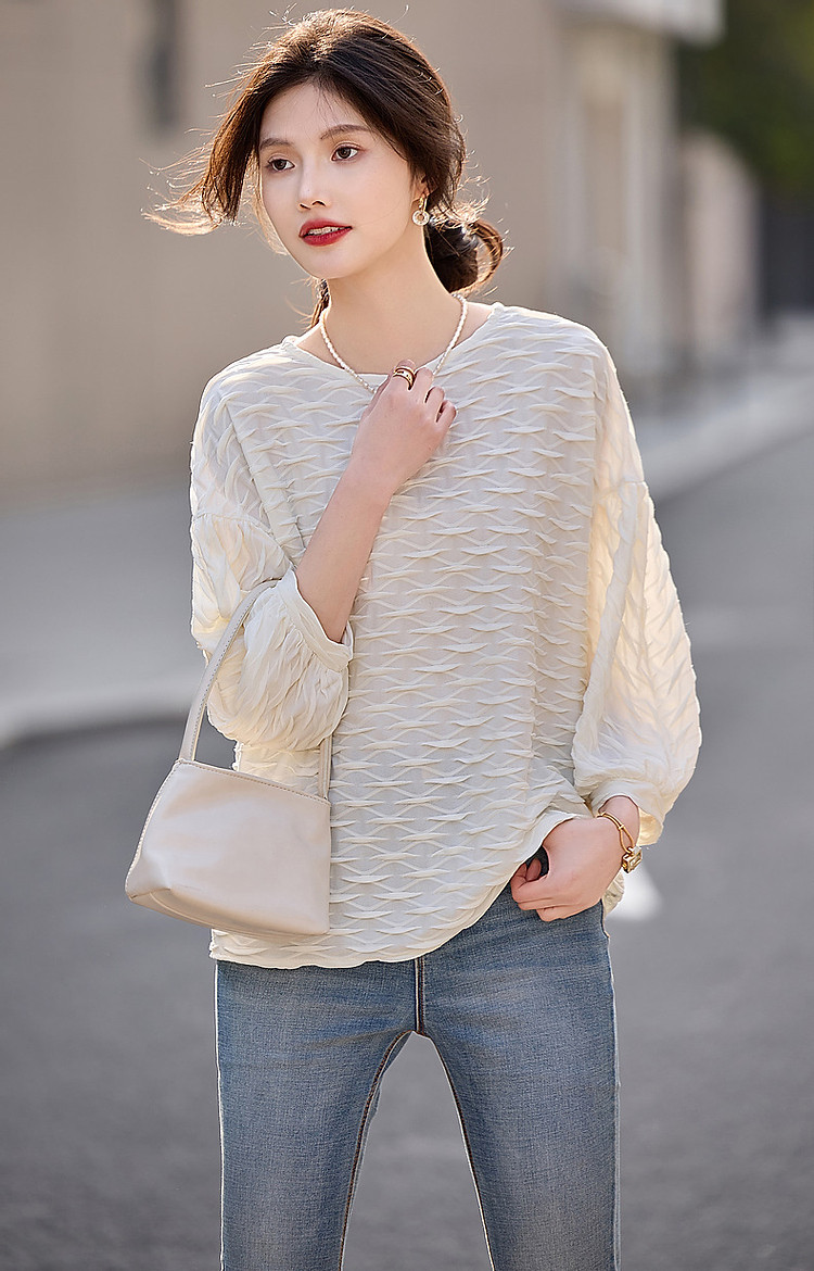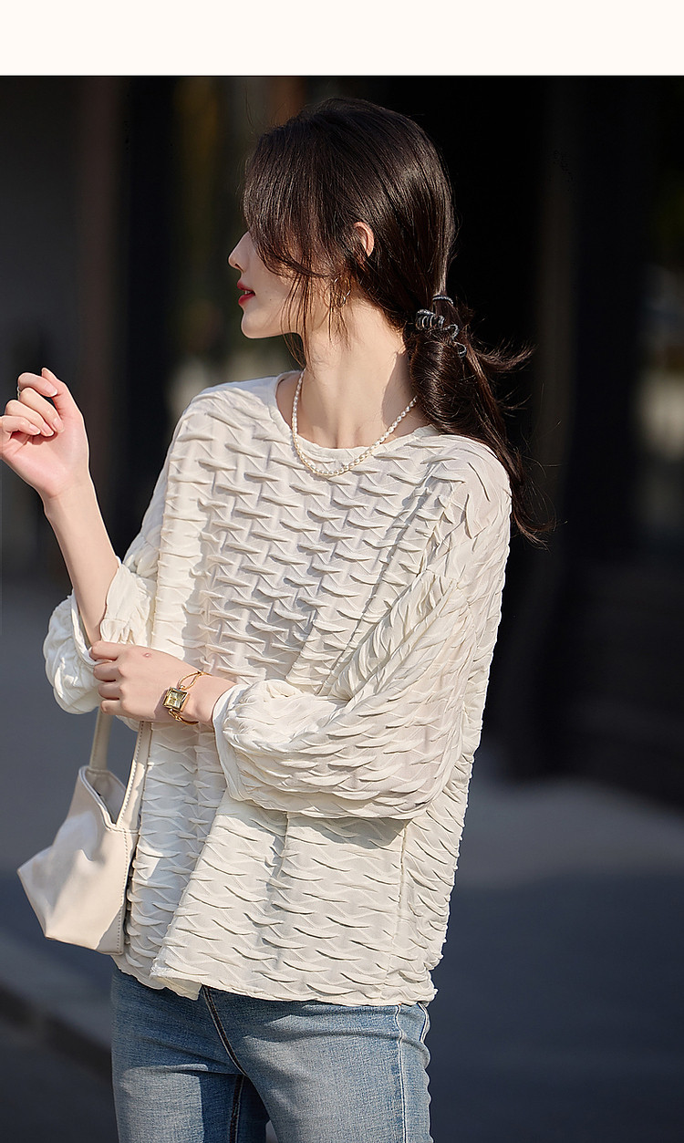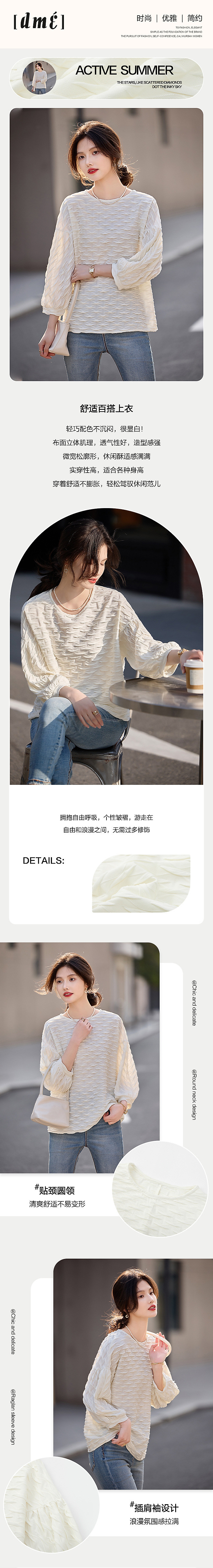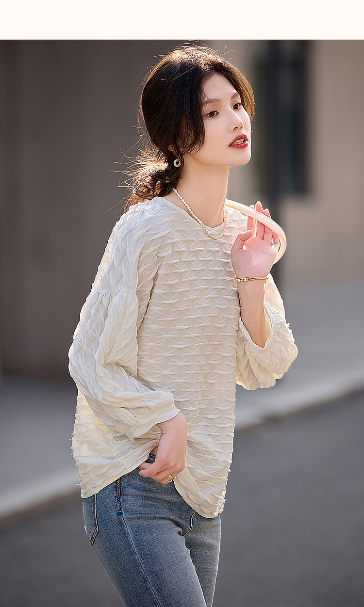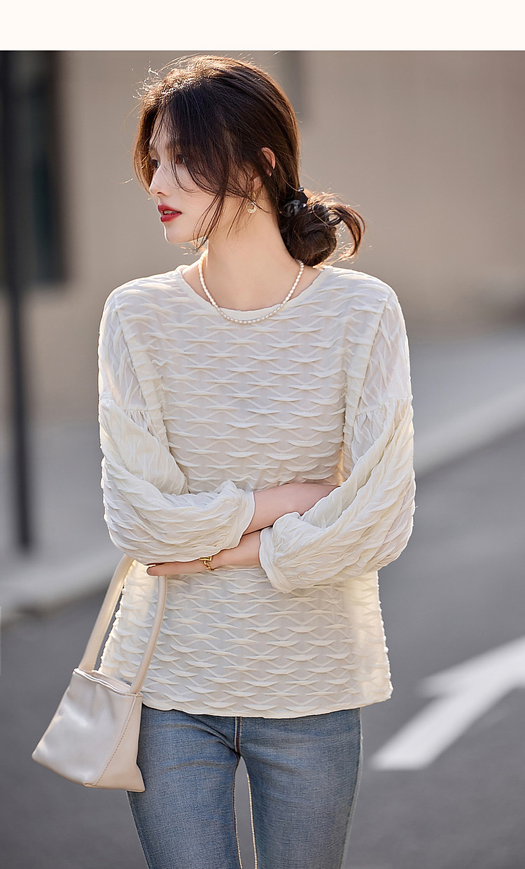 【休闲天花板】春秋圆领九分袖微弹立体肌理感气质舒适卫衣女上衣 645185