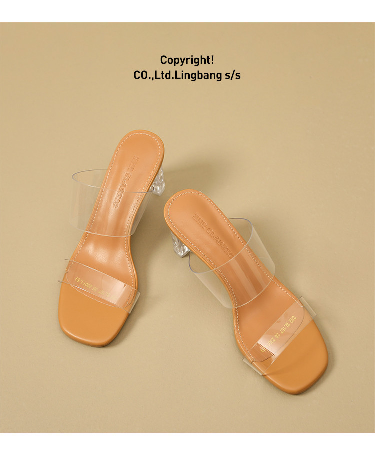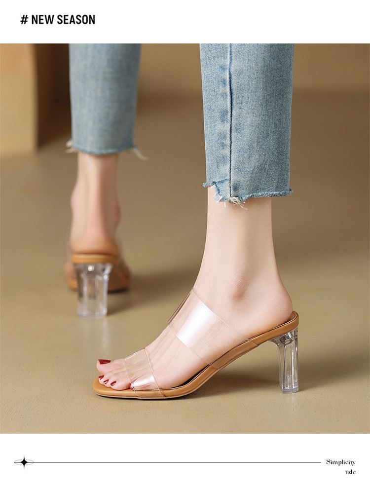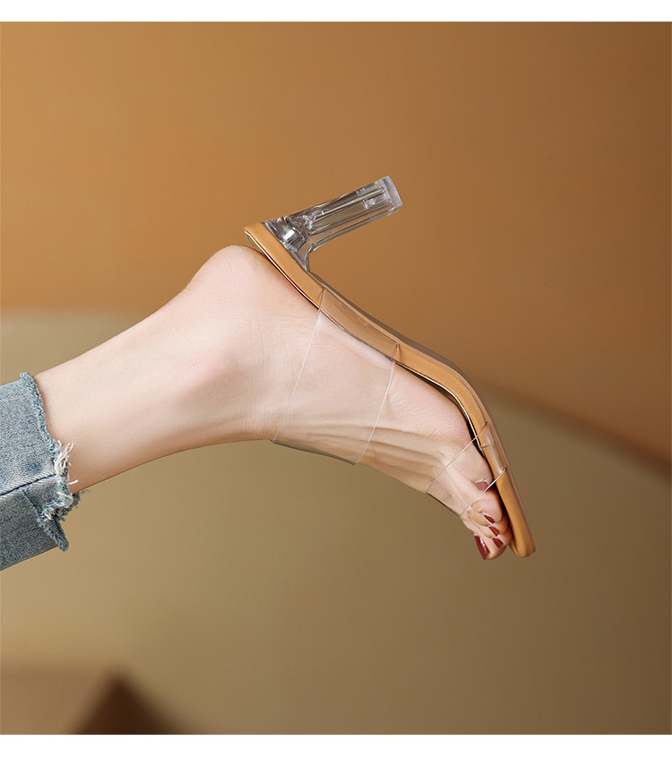 【专柜同款】时尚凉拖女外穿夏季女士拖鞋百搭水晶高跟鞋凉拖鞋女 026176
