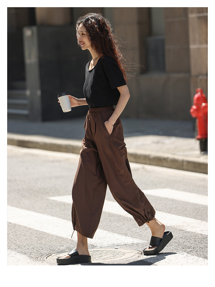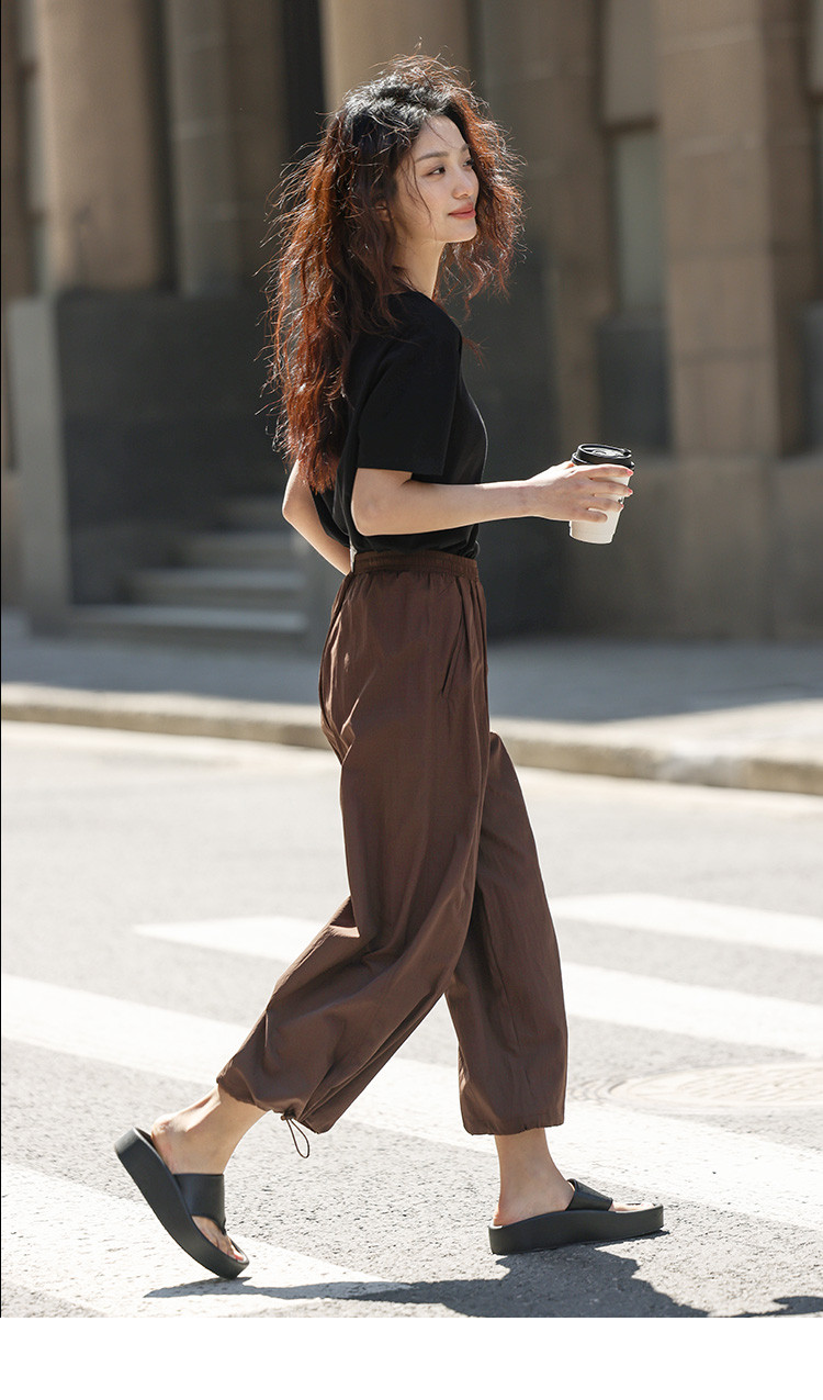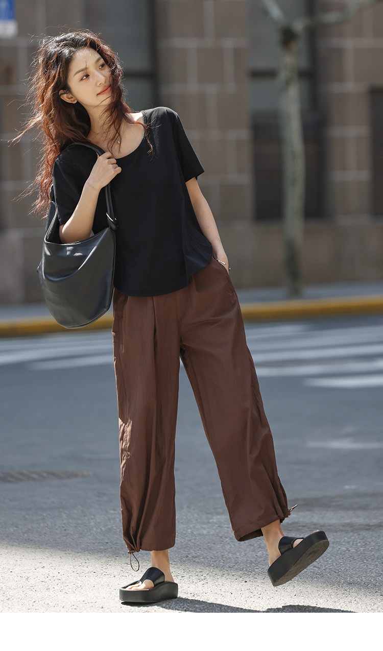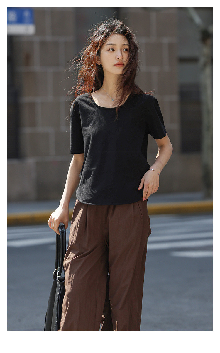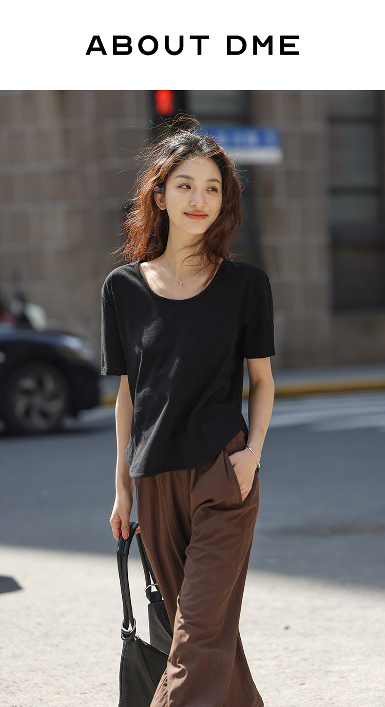 【基础款圆弧摆黑T恤】夏款百搭圆领亲肤舒适慵懒感上衣 609282