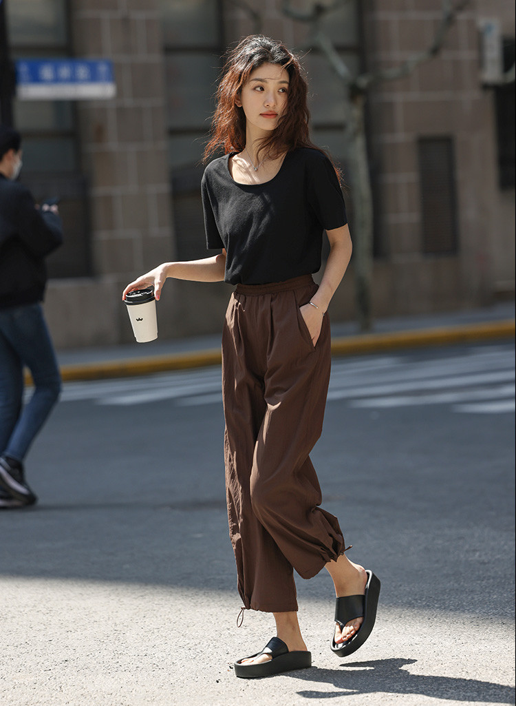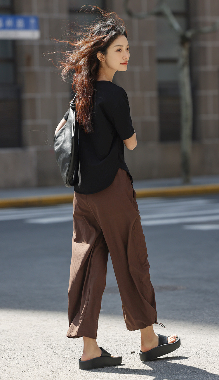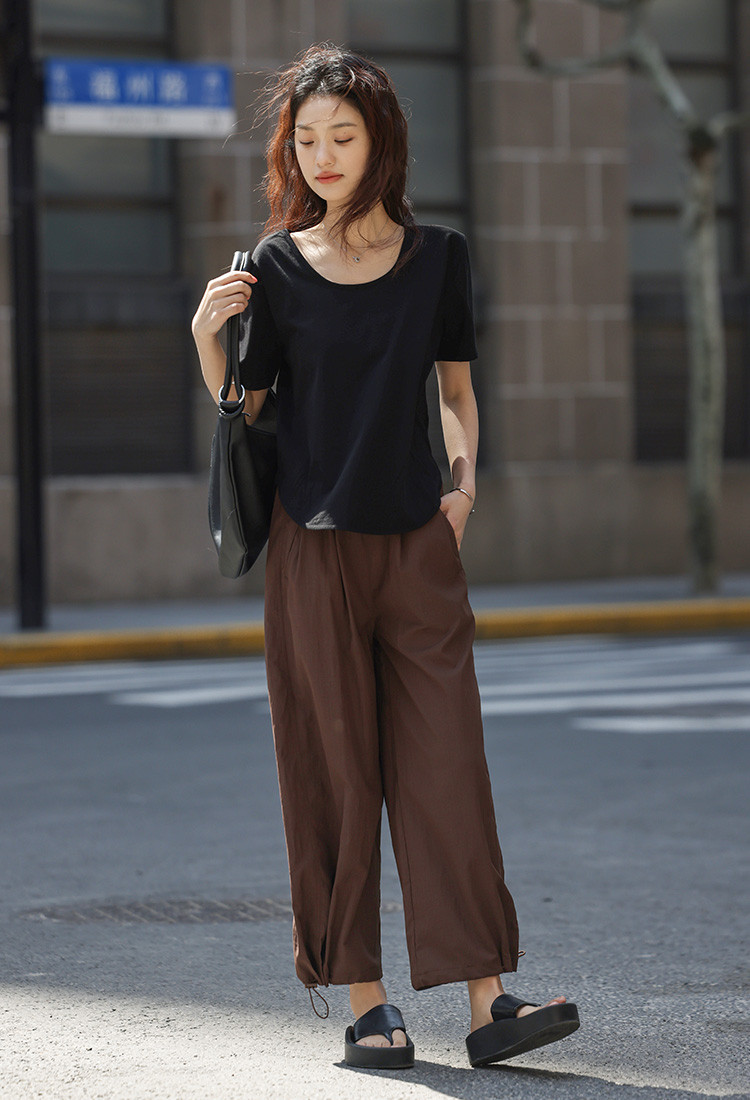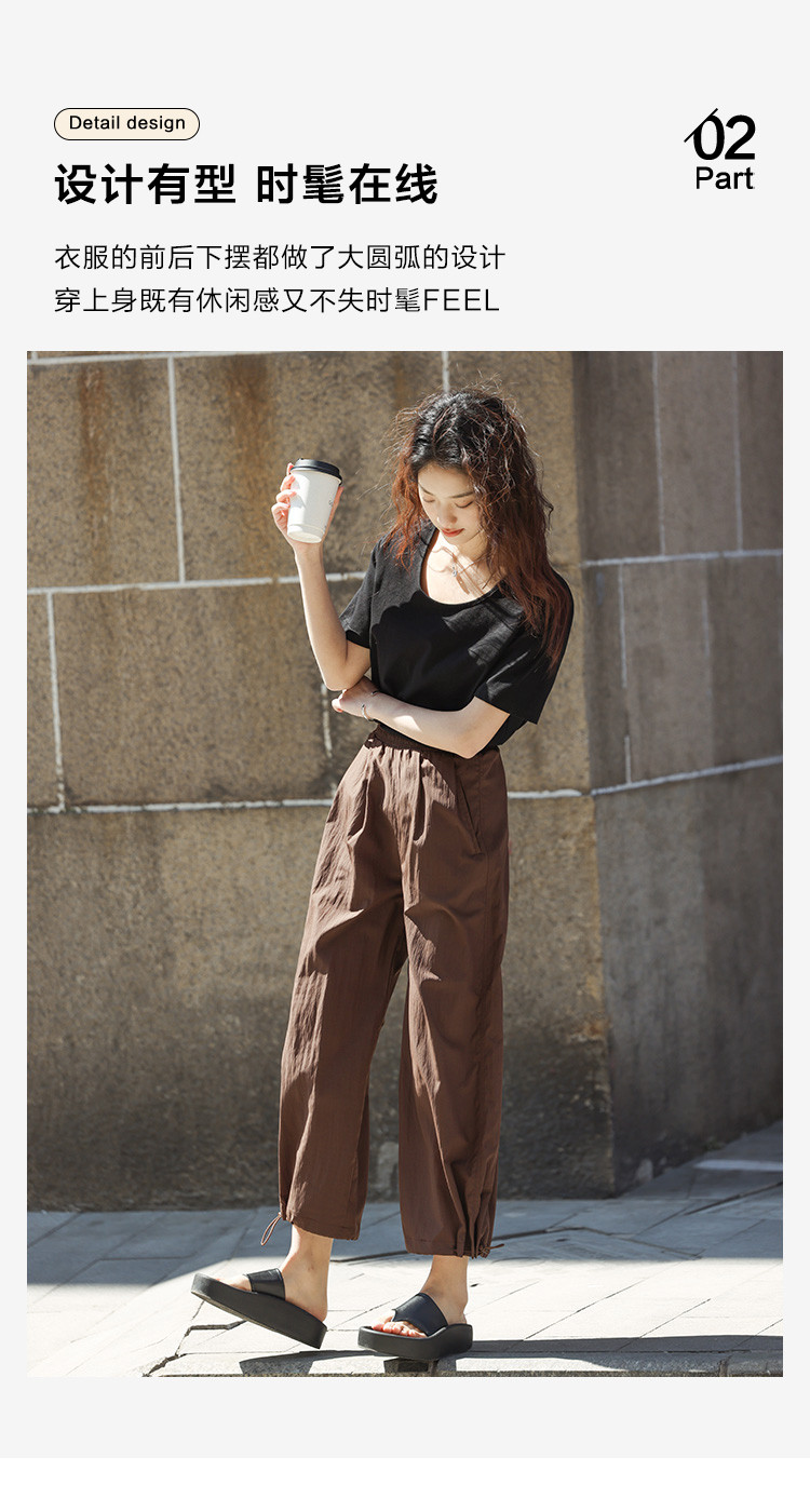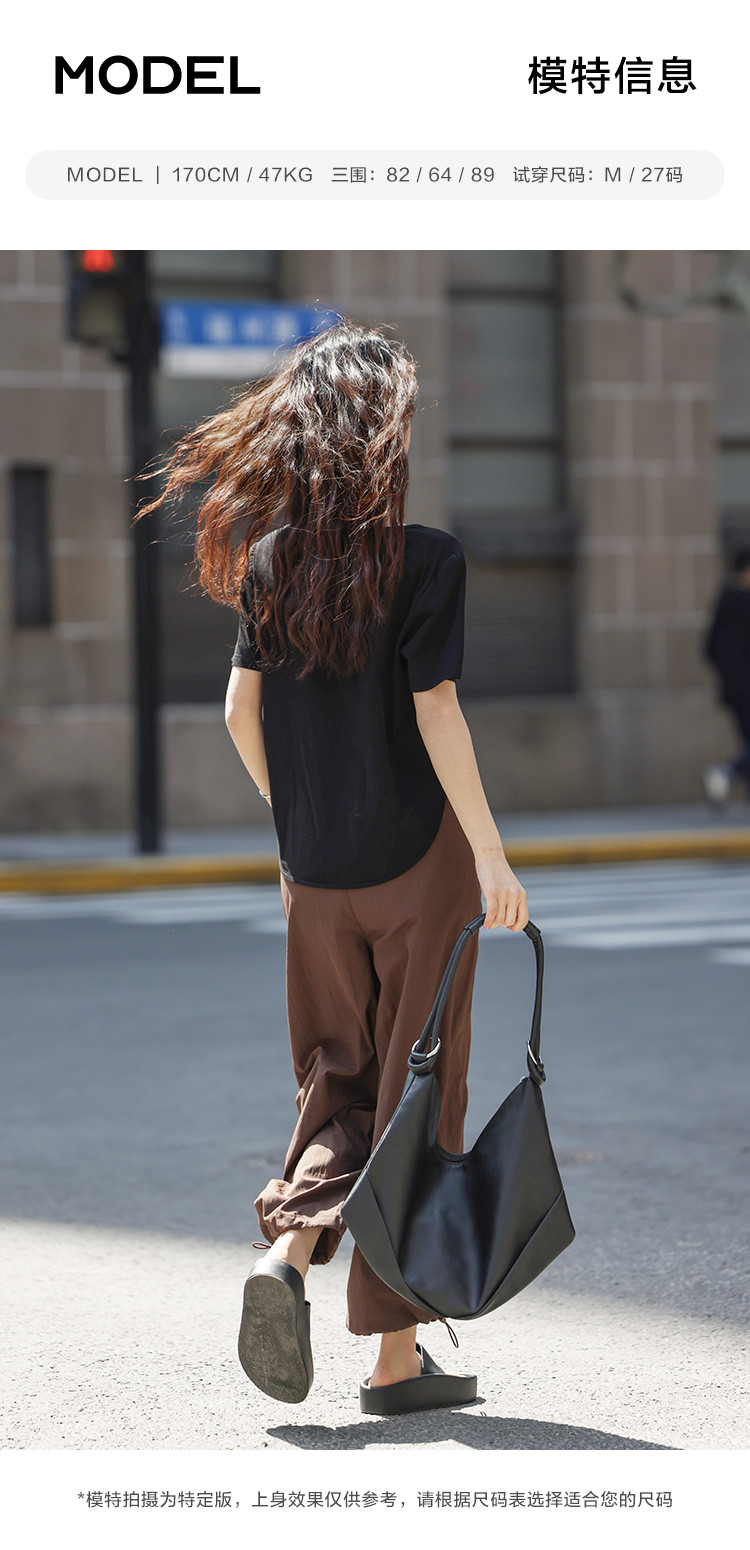 商品名称:【基础款圆弧摆黑T恤】夏款百搭圆领亲肤舒适慵懒感上衣 609282