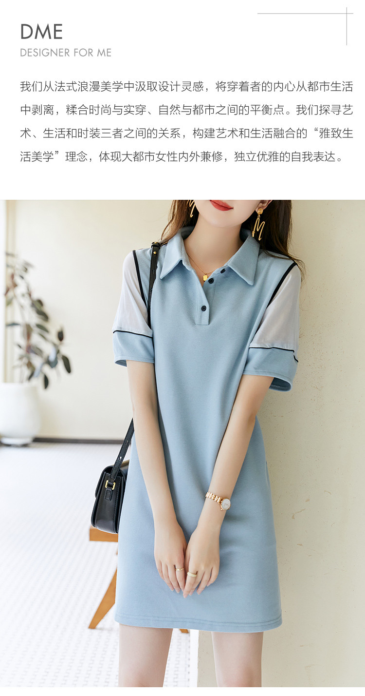 商品名称:【知识分子】夏季polo领三粒扣撞色短袖气质卫衣式女连衣裙 388801
