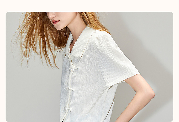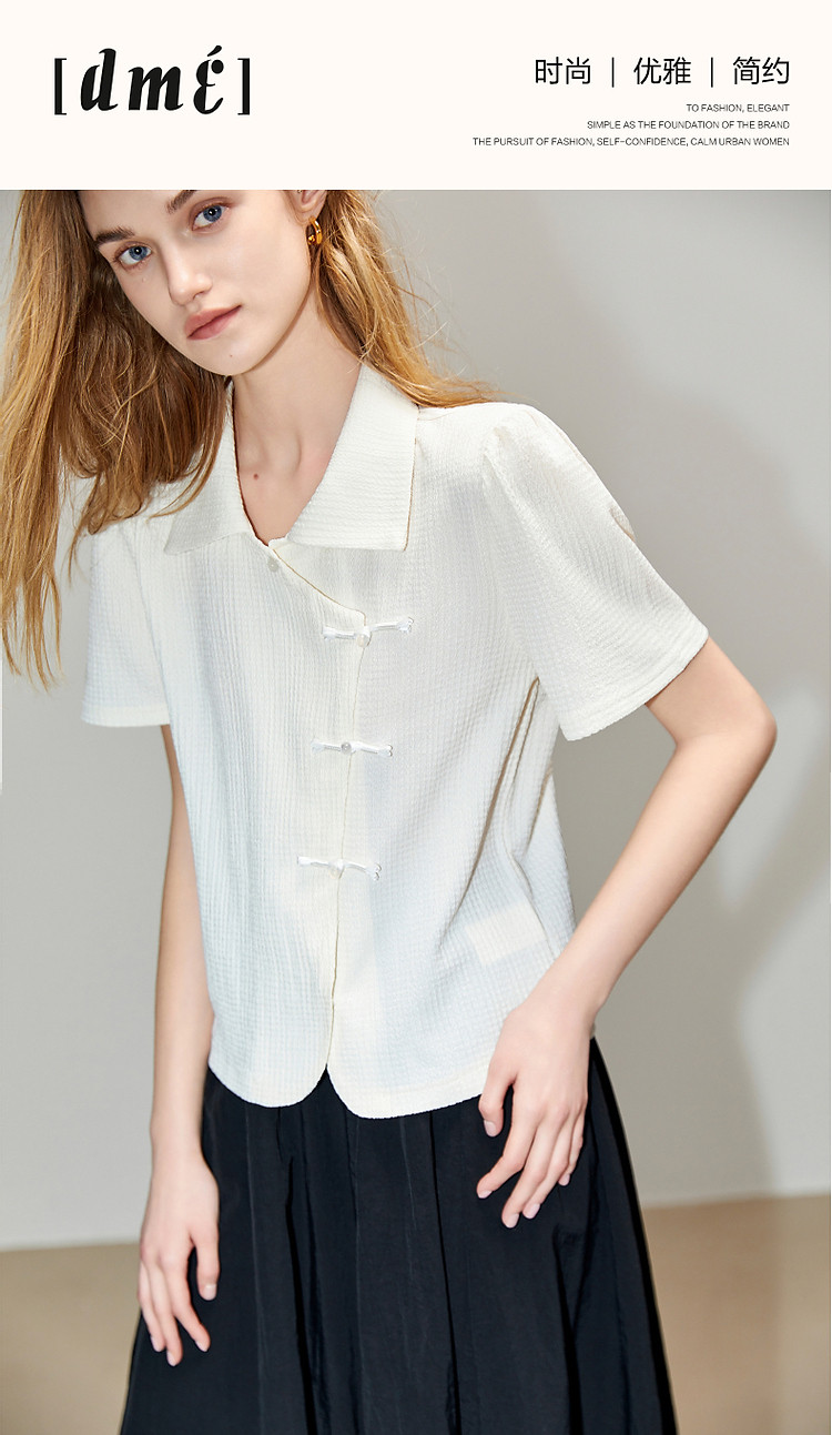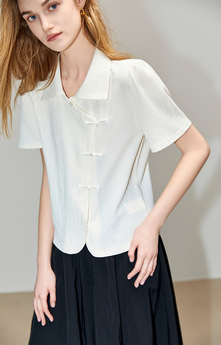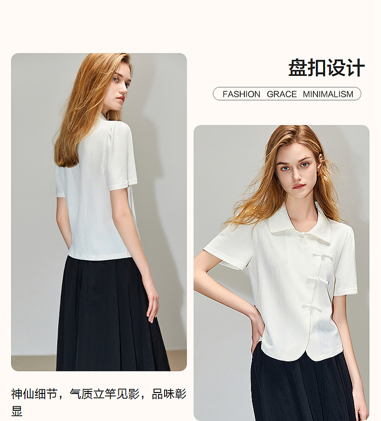 商品名称:【国风斜门襟新中式】翻领短袖t恤淑女短款泡泡袖盘扣女式t恤 458945