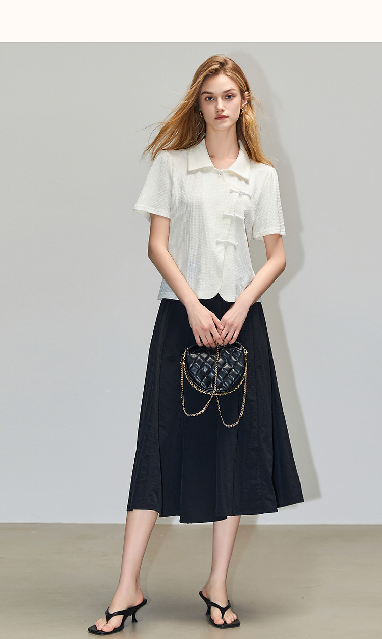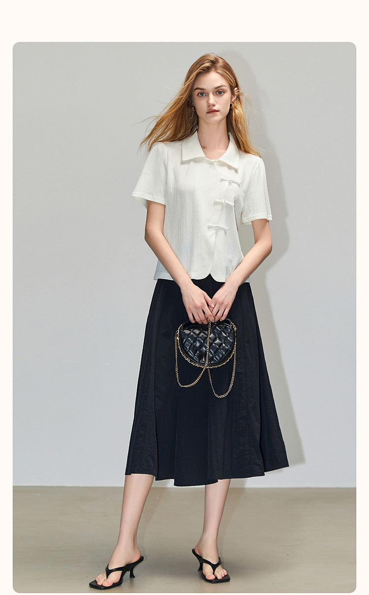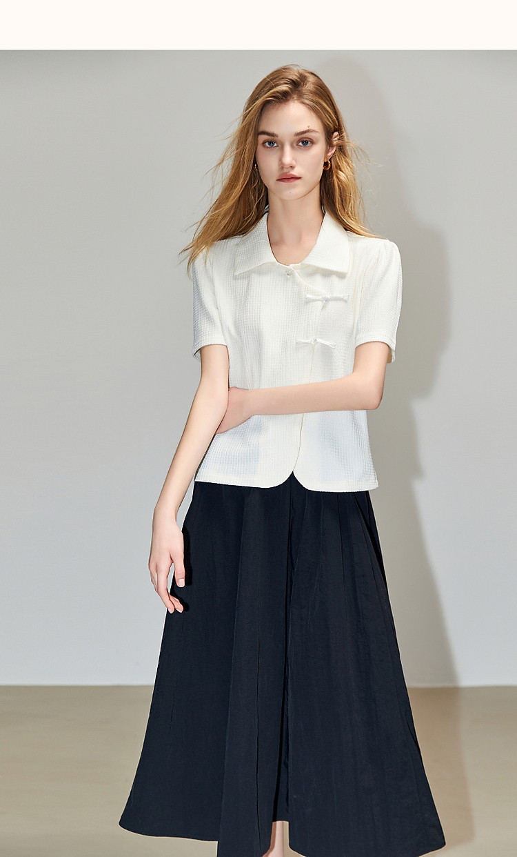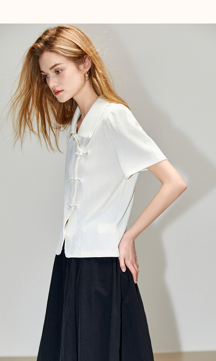 商品名称:【国风斜门襟新中式】翻领短袖t恤淑女短款泡泡袖盘扣女式t恤 458945