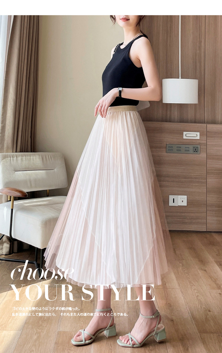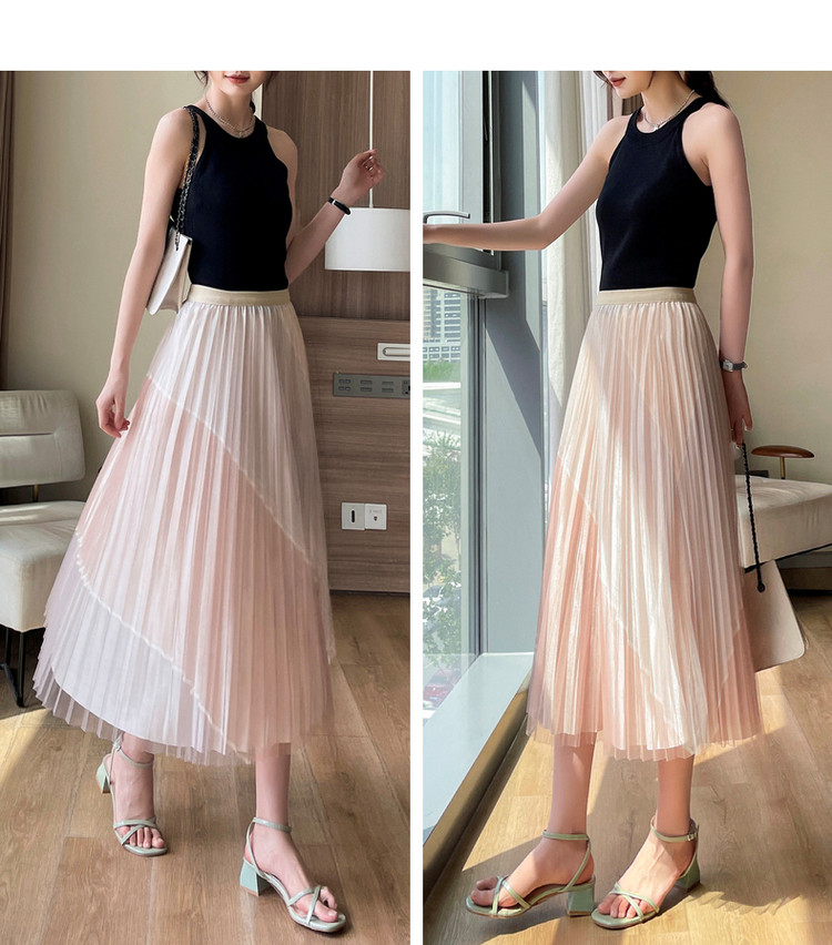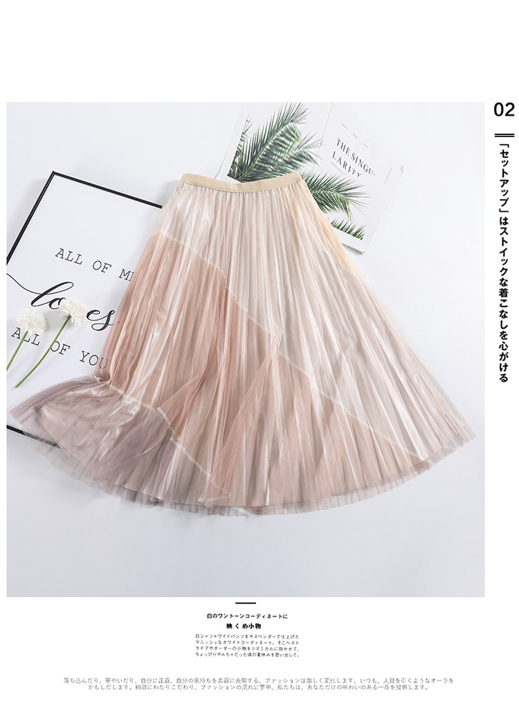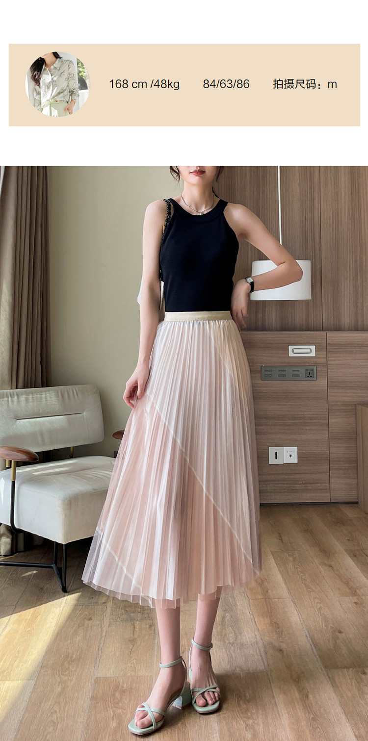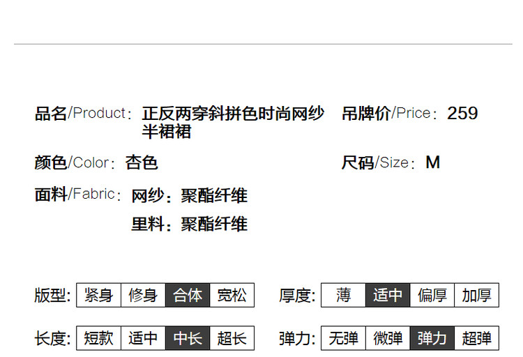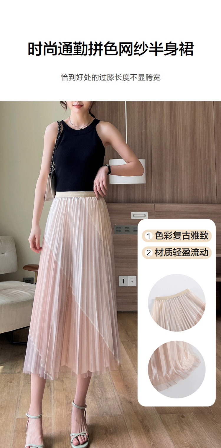 商品名称:【正反两穿拼色网纱裙】夏季松紧腰松紧带a字半身裙女中长款 164289