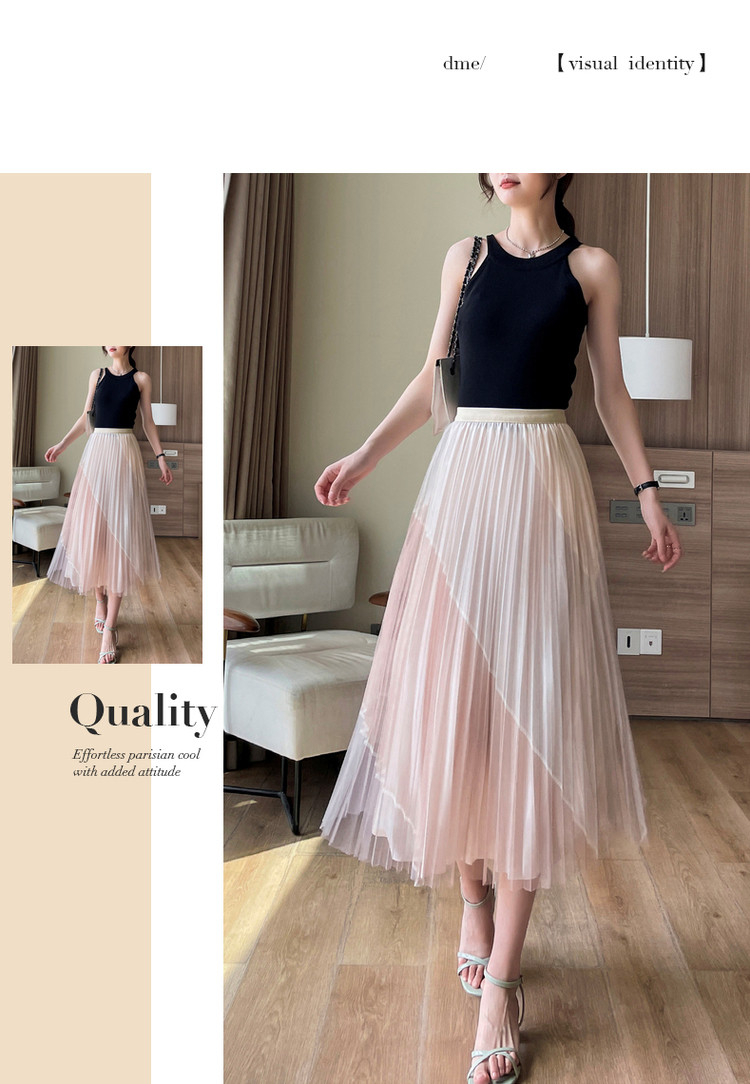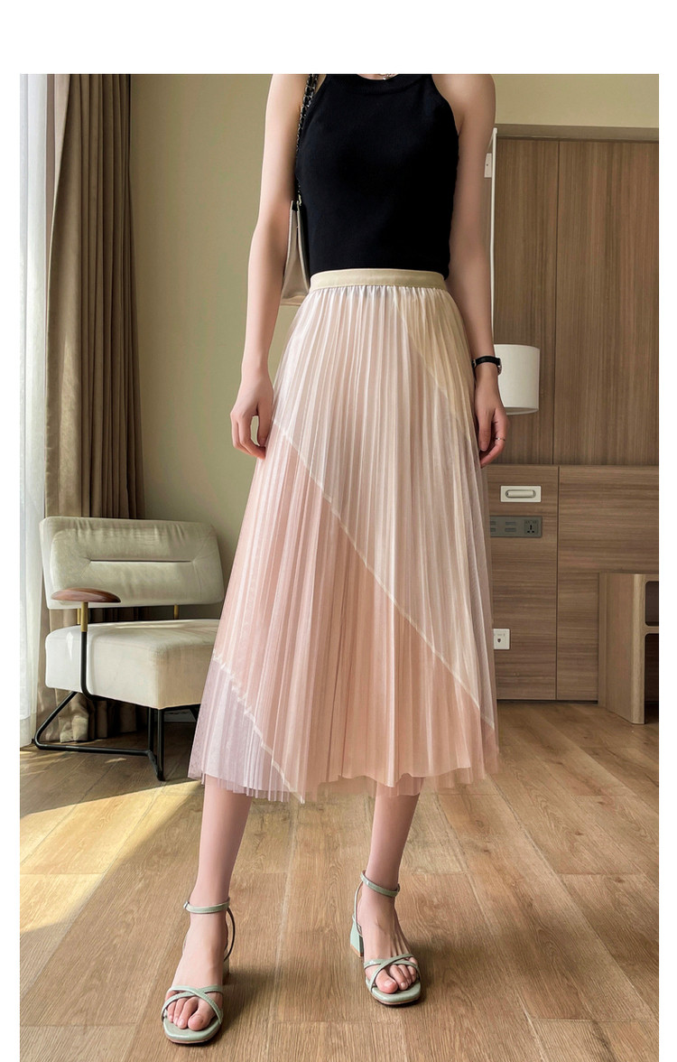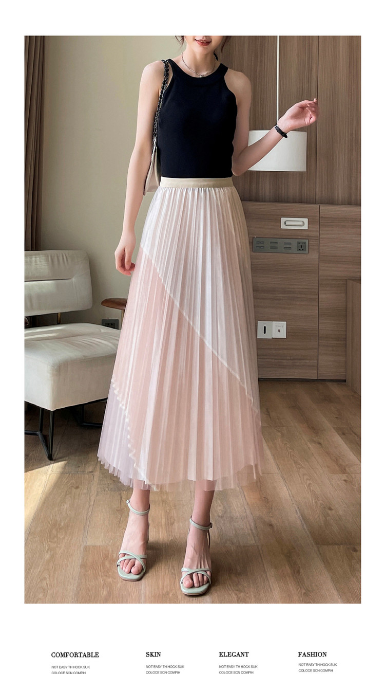【正反两穿拼色网纱裙】夏季松紧腰松紧带a字半身裙女中长款 164289