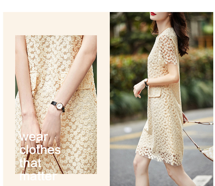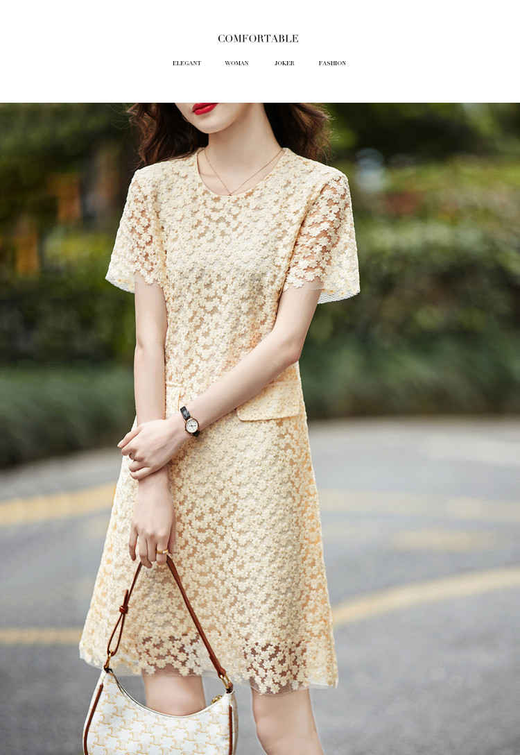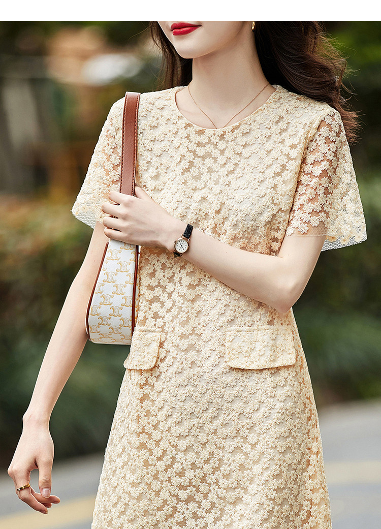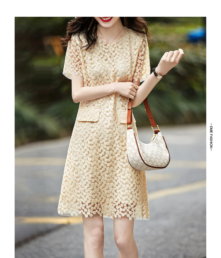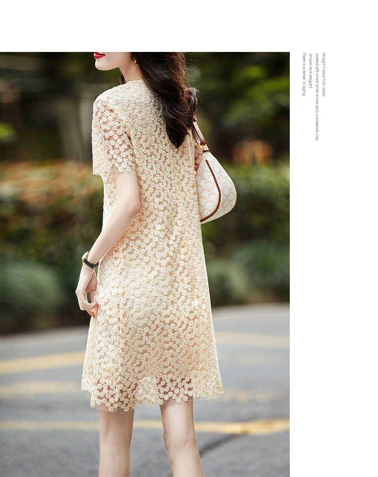 商品名称:【玻璃纱绣花】夏圆领宽松直筒假口袋裙子连衣裙女夏 772289