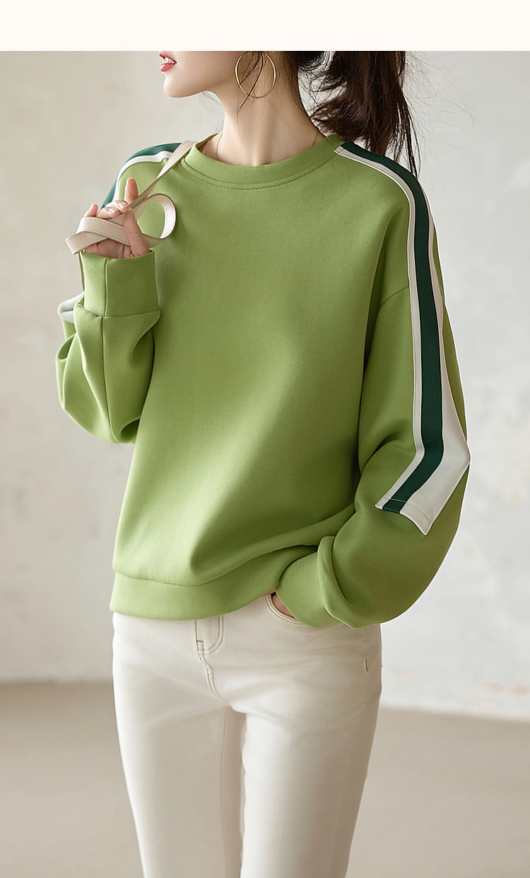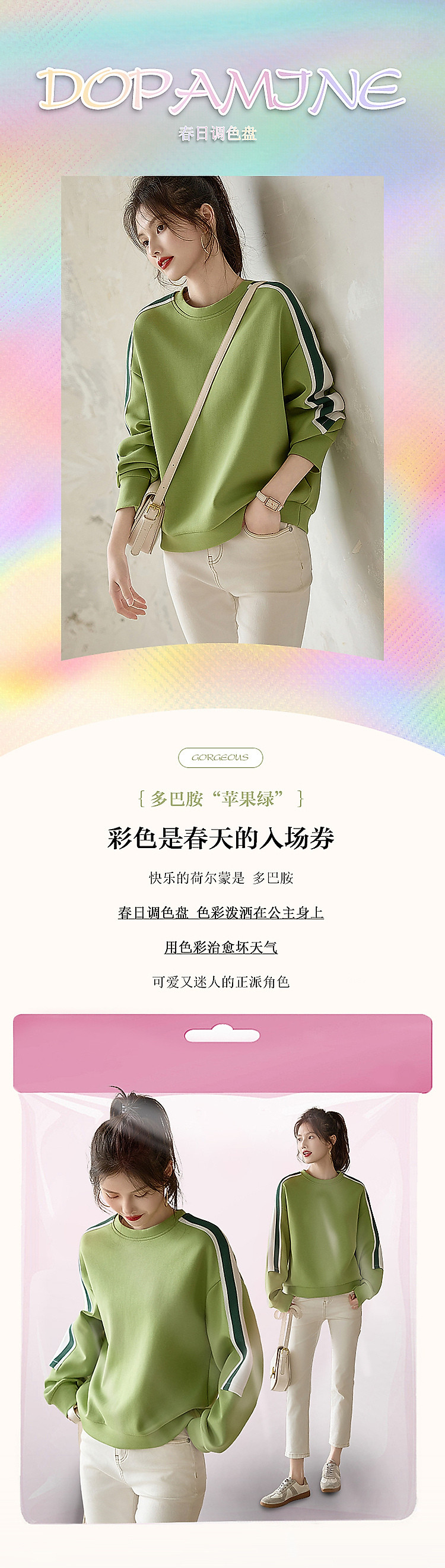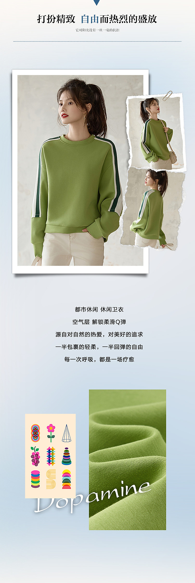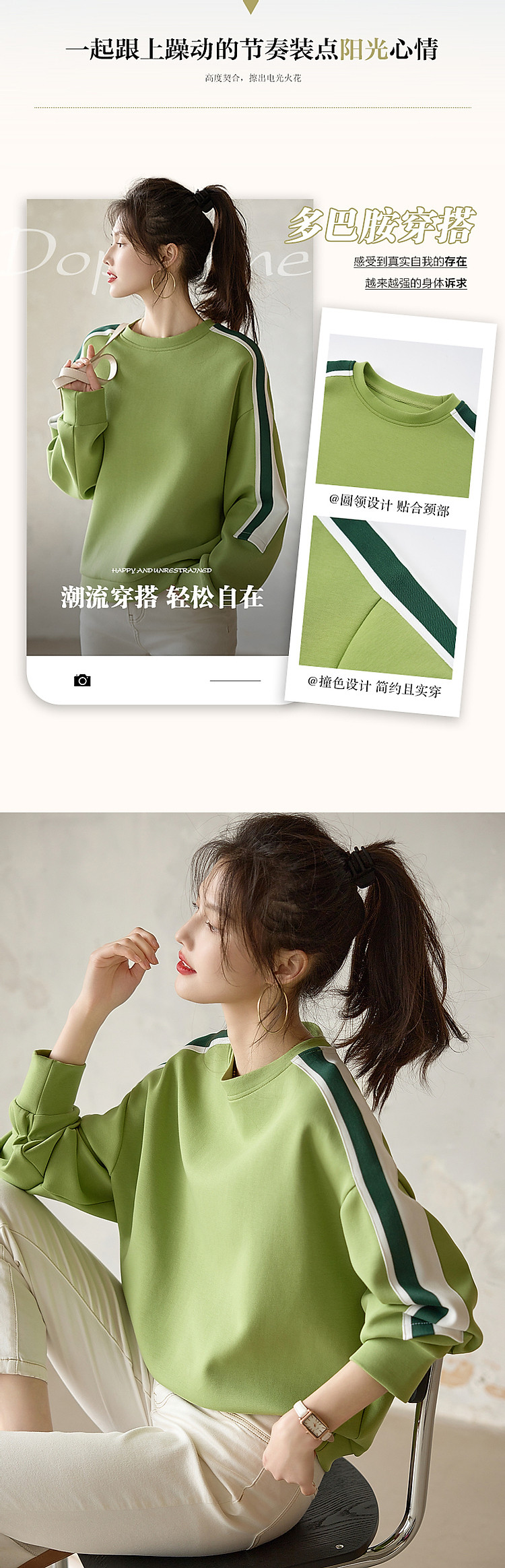 商品名称:【时髦博主风】春秋圆领长袖弹力棉质撞色运动空气层卫衣女上衣 888513