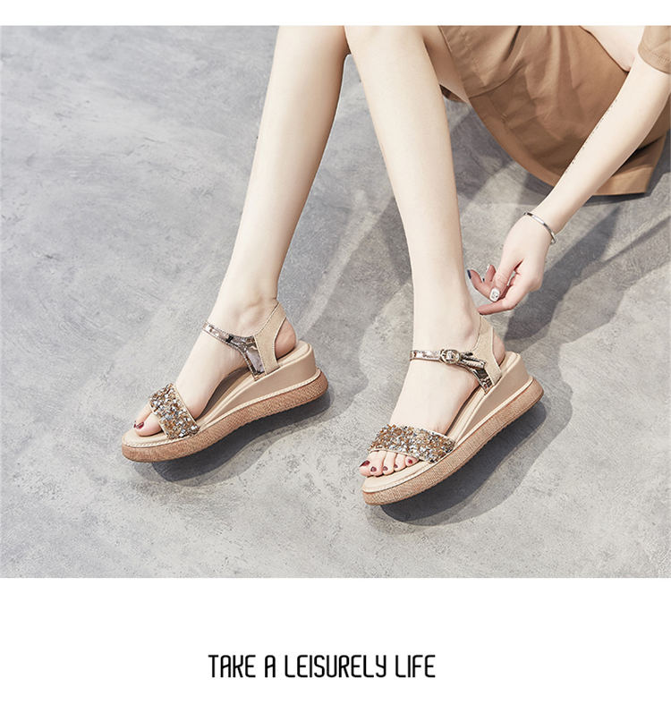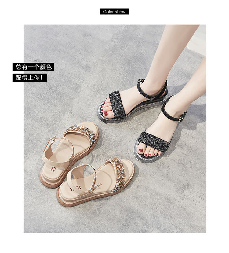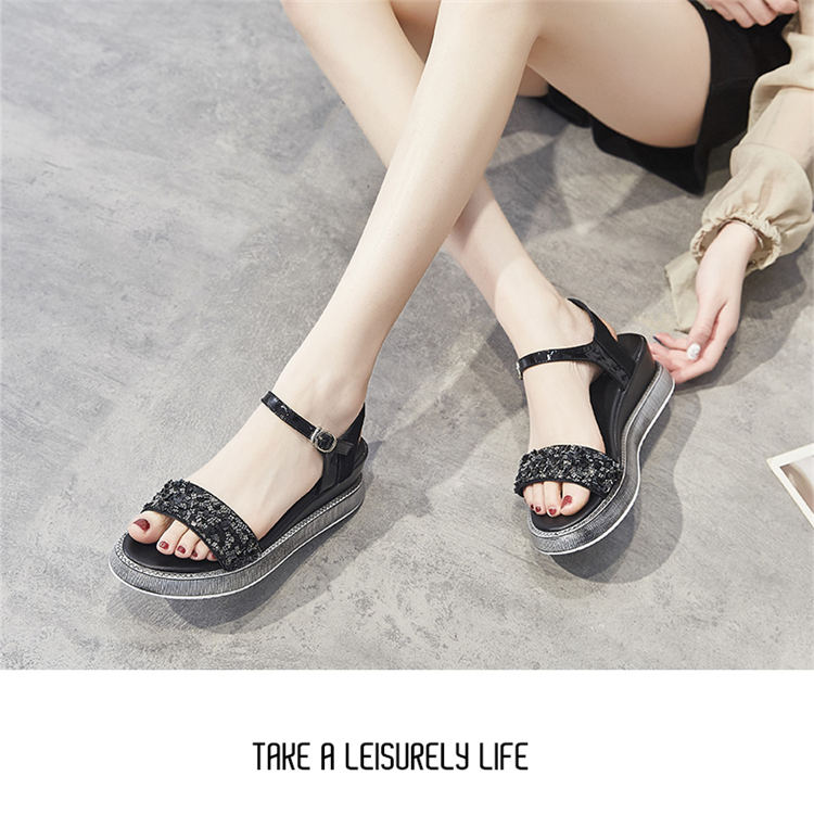 商品名称:【专柜同款】通勤坡跟一字带凉鞋子女外穿女士凉鞋女夏季凉鞋女鞋 370816
