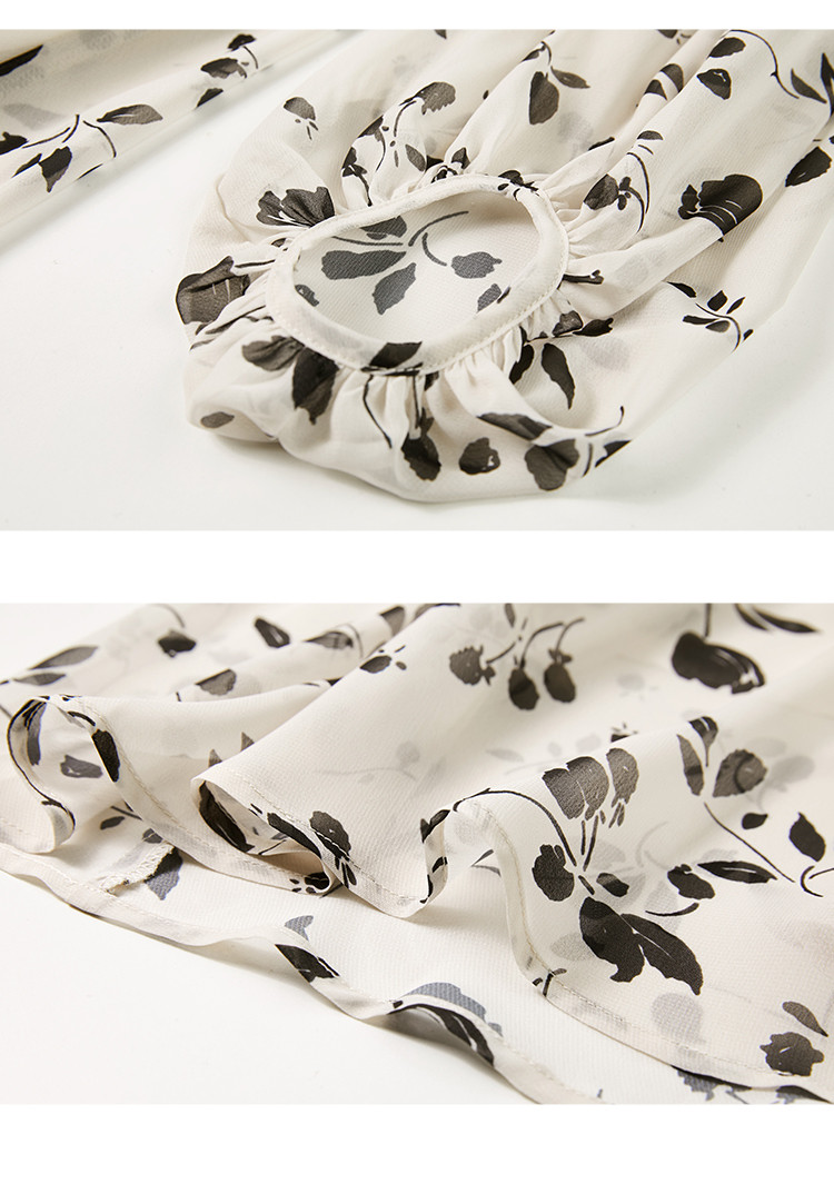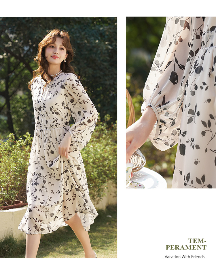 【养成系法式千金】秋设计感镂空高清碎花舒适爽滑藏肉女式连衣裙 035329