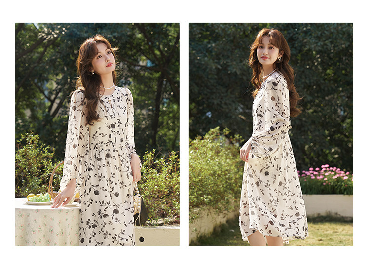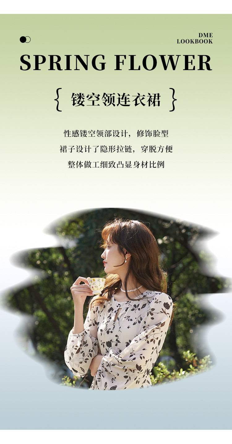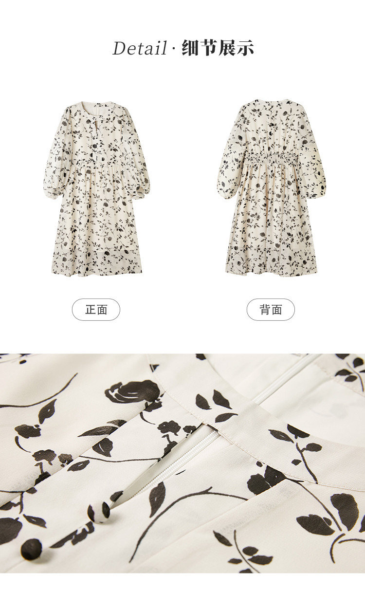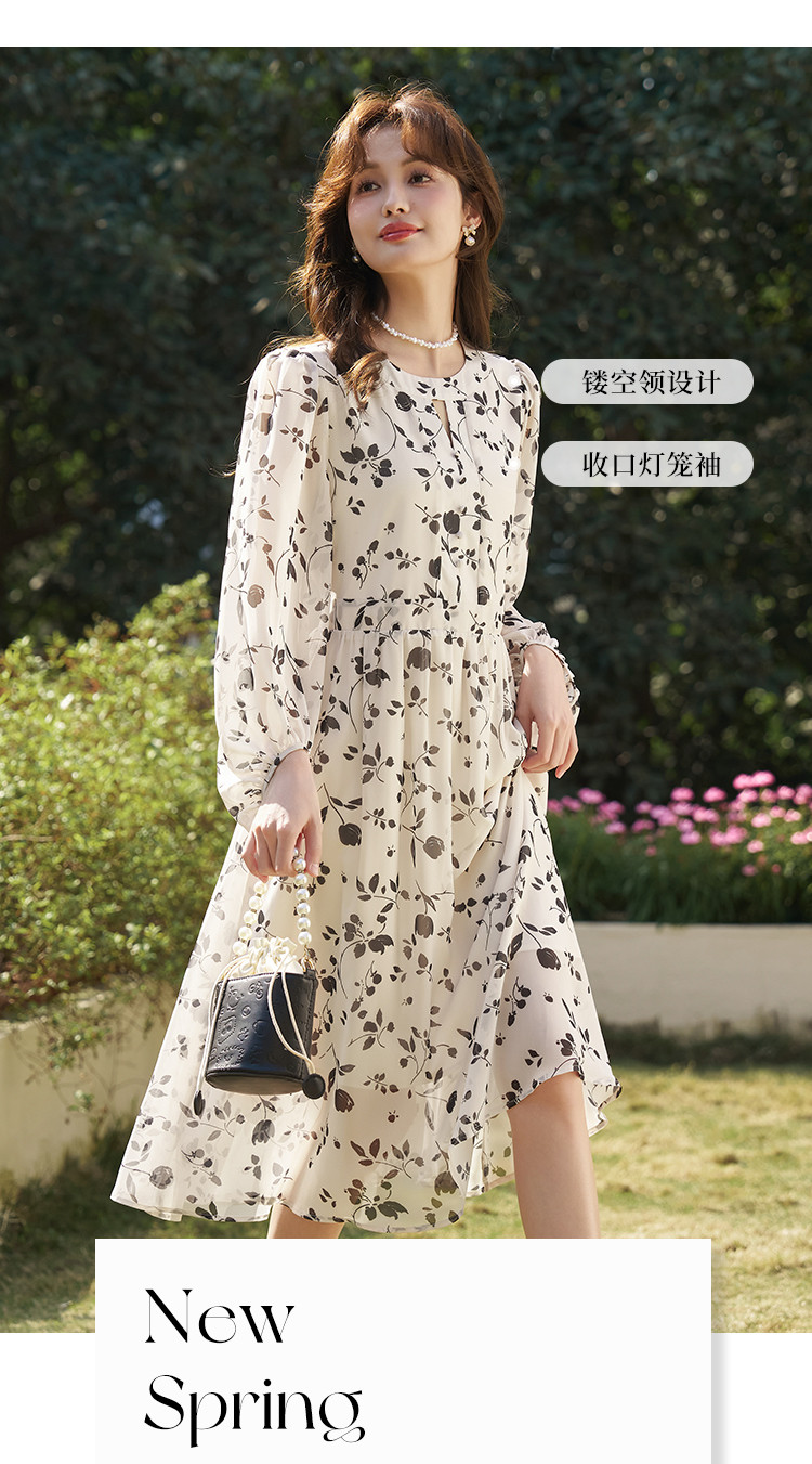 商品名称:【养成系法式千金】秋设计感镂空高清碎花舒适爽滑藏肉女式连衣裙 035329