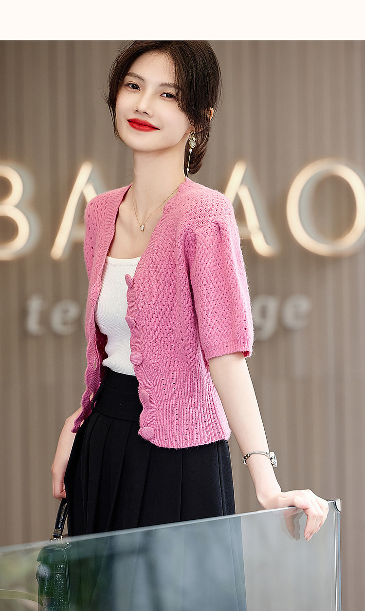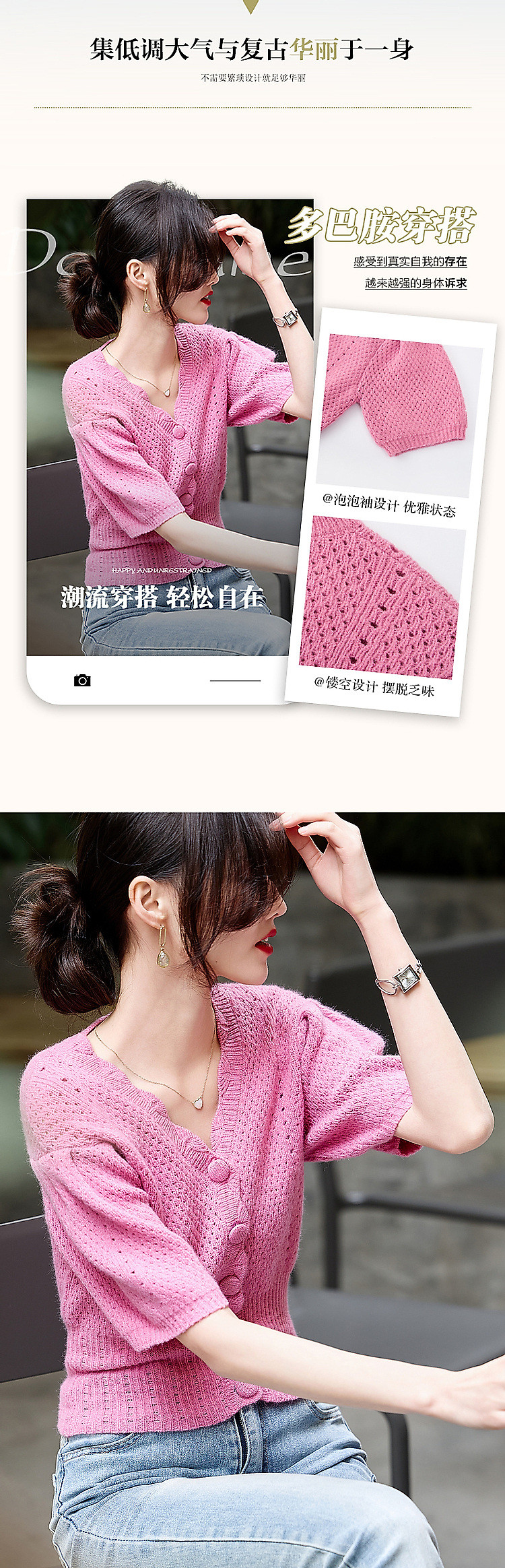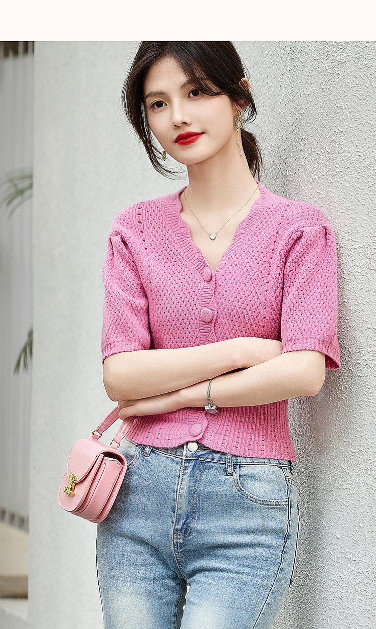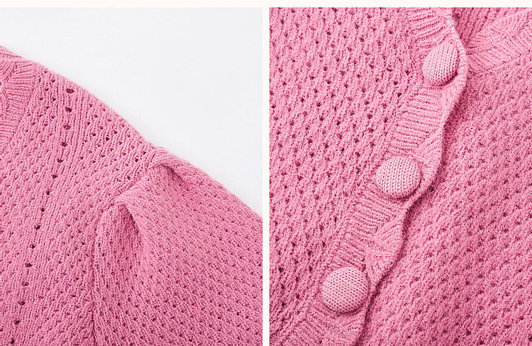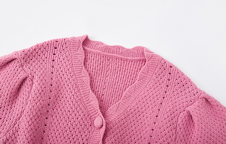 商品名称:【多巴胺特辑】春秋甜美镂空绞花线衫泡泡袖藏肉好搭针织衫女上衣 442945