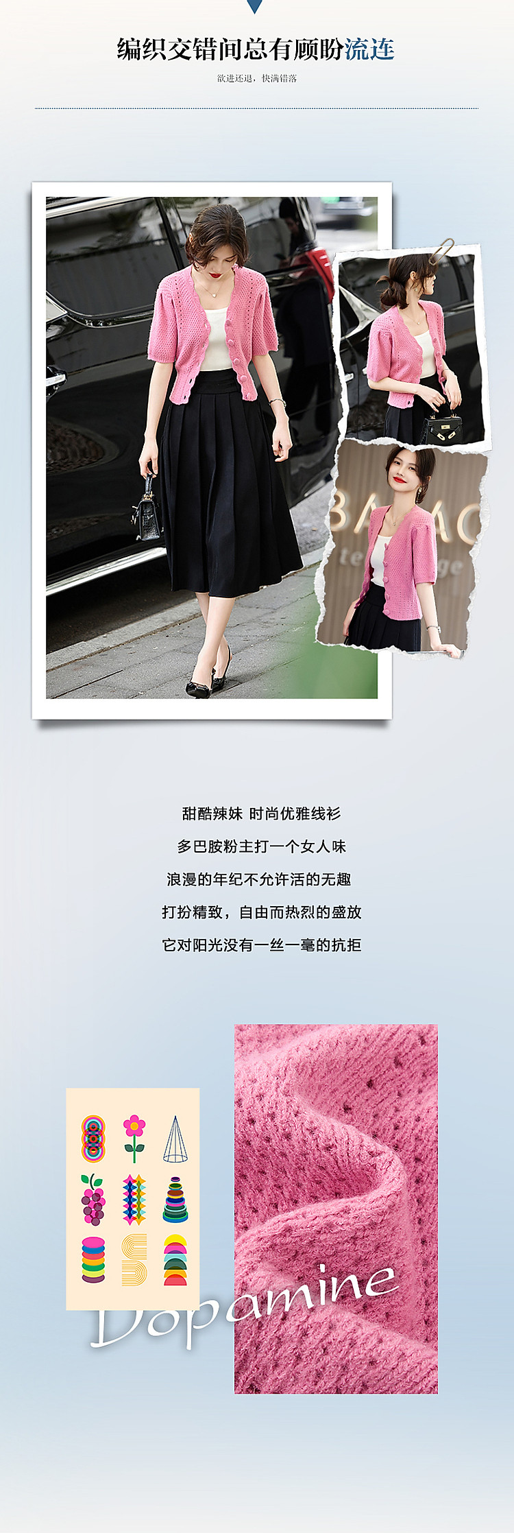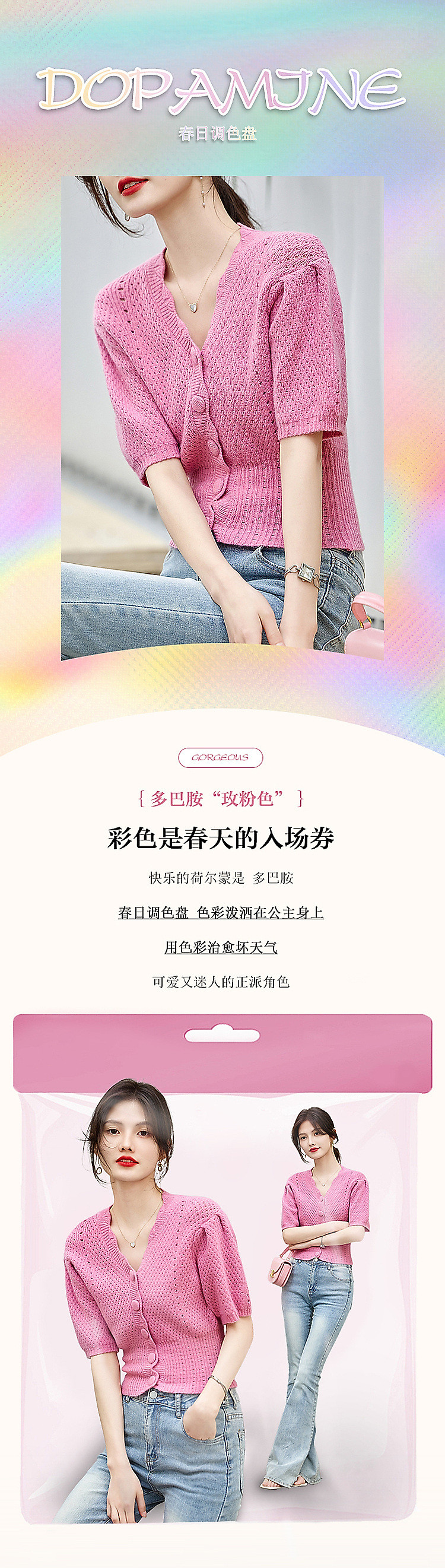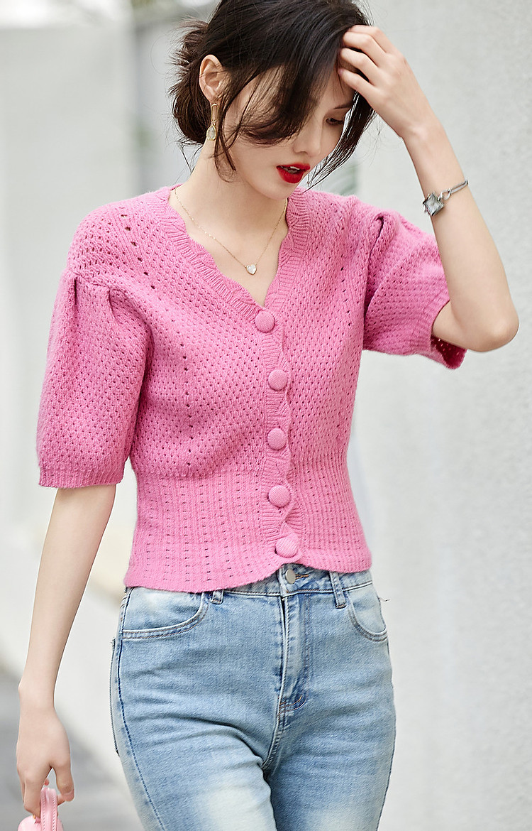 商品名称:【多巴胺特辑】春秋甜美镂空绞花线衫泡泡袖藏肉好搭针织衫女上衣 442945