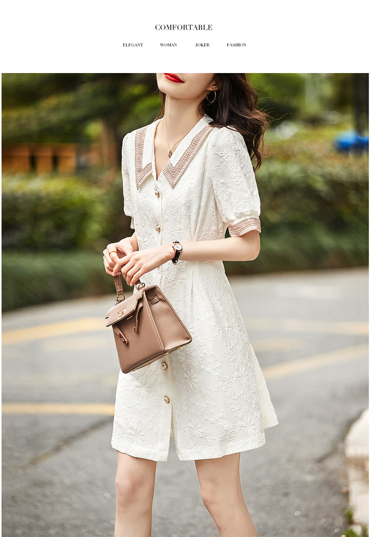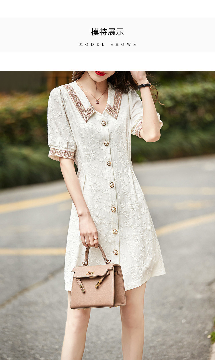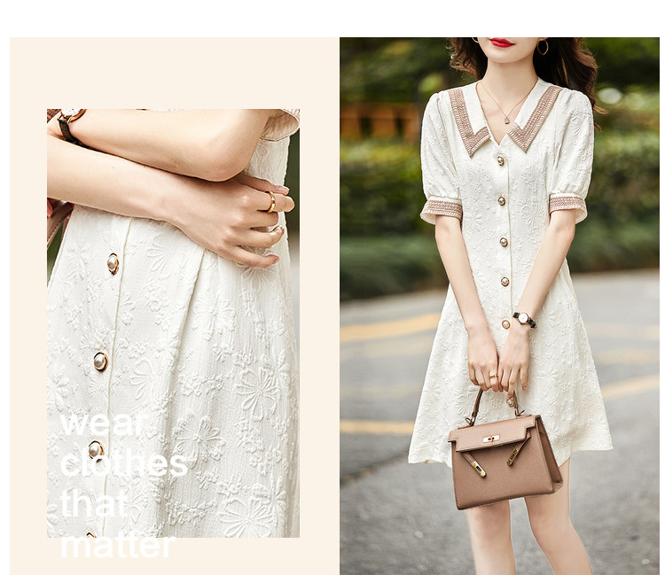 商品名称:【提花肌理】A摆收腰撞色连衣裙女夏 615361