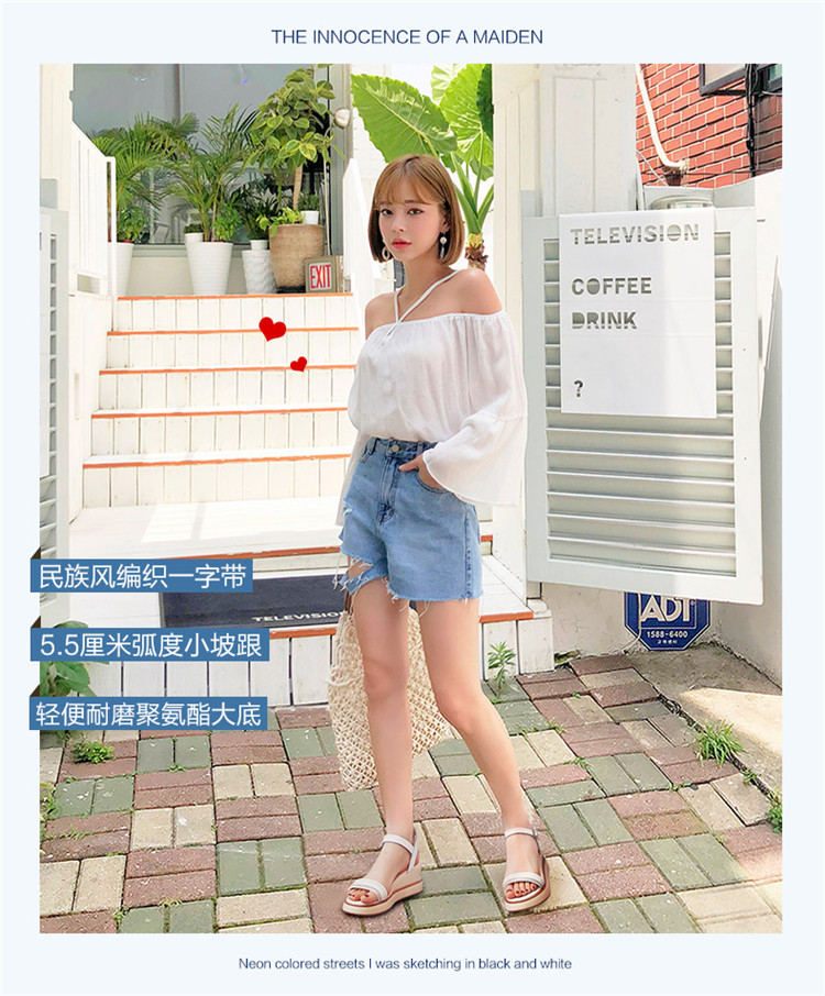 商品名称:【编织工艺】坡跟一字带凉鞋子女凉鞋外穿女士凉鞋女夏季凉鞋女鞋 088256