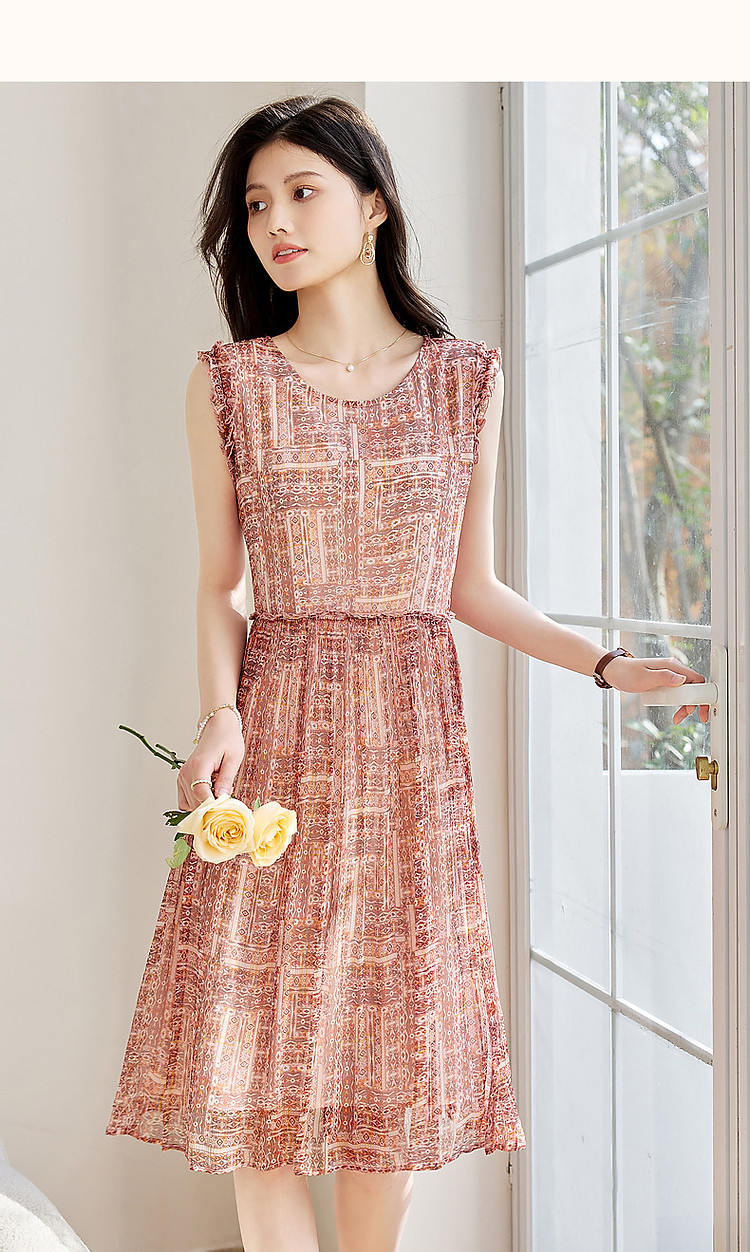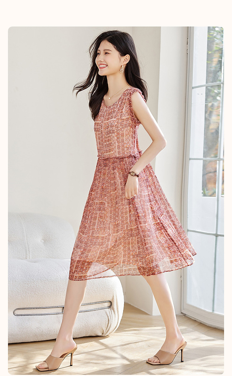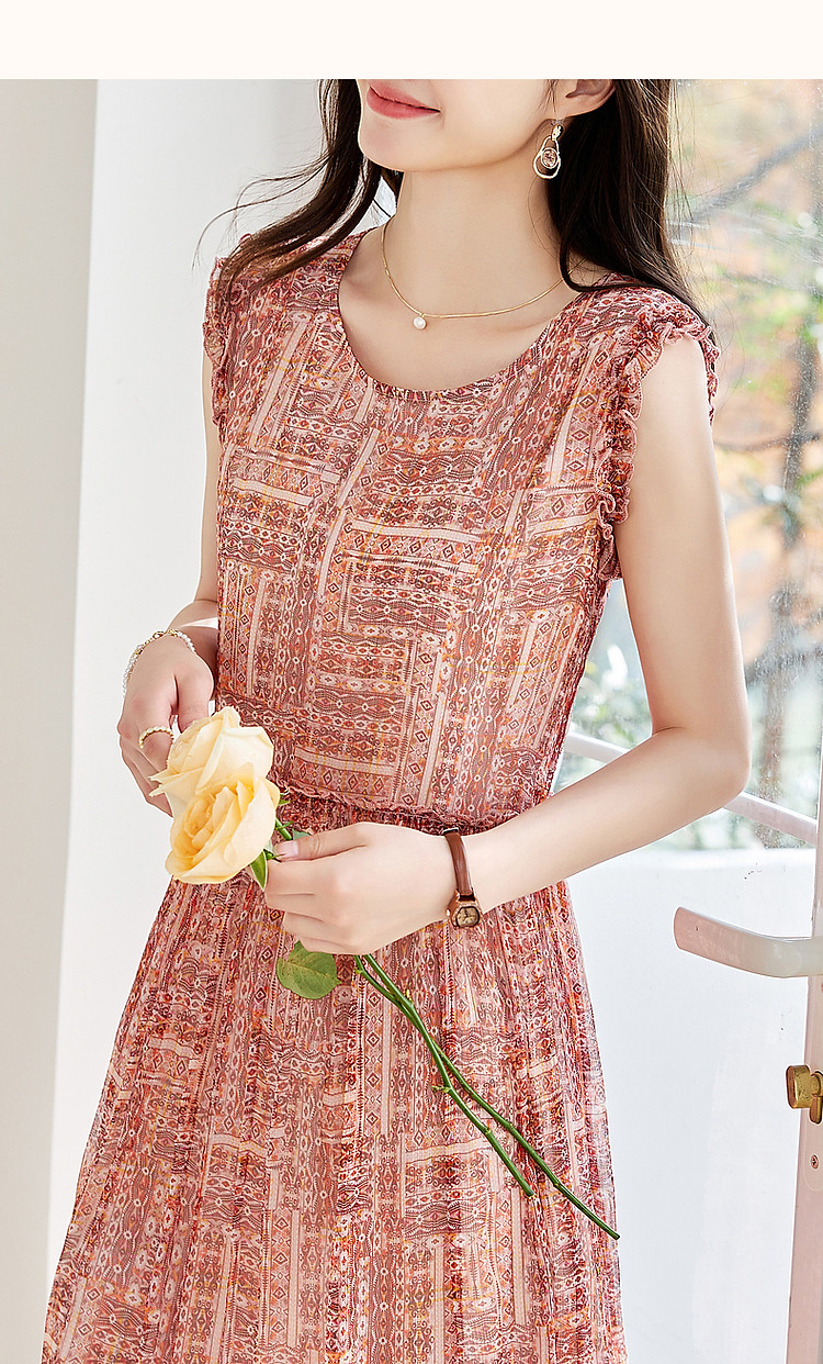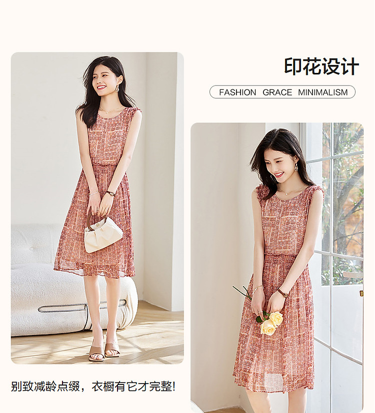 【樱桃甜心】春法奢丝滑桑蚕丝真丝印花连衣裙女中长款 705089