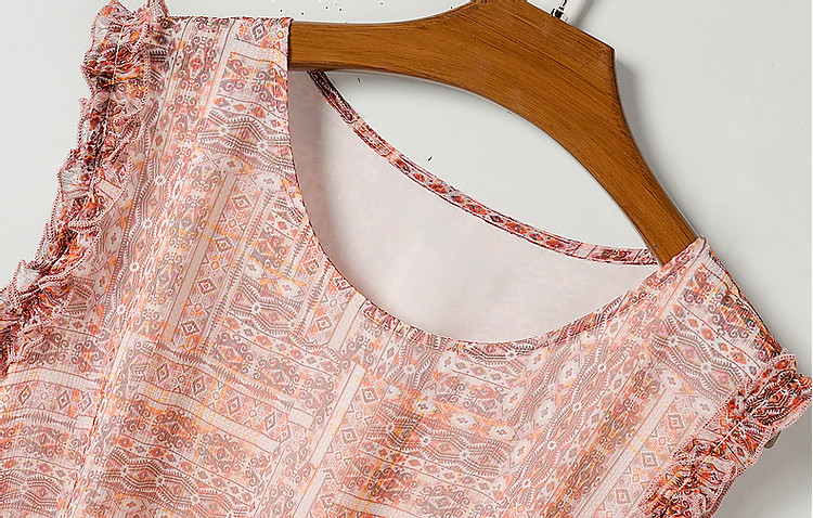 【印花连衣裙】夏宽松短袖可调节腰带裙子连衣裙女夏 255361