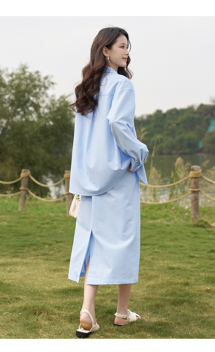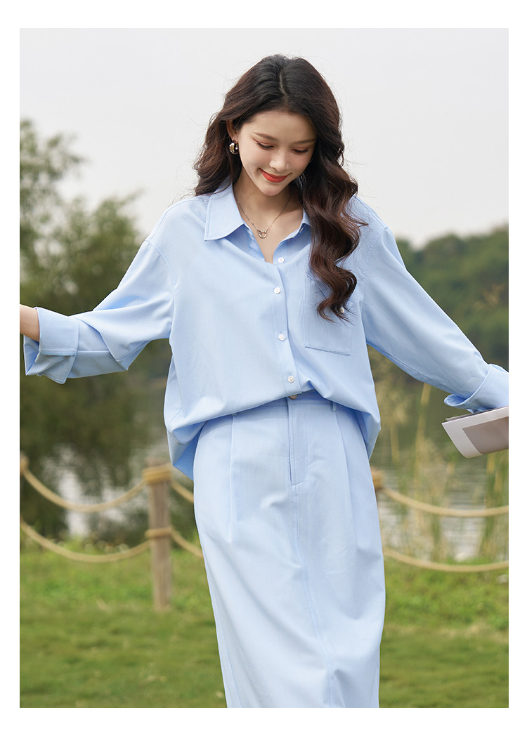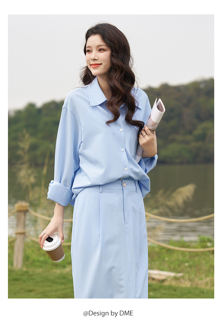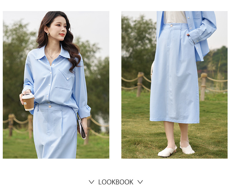 【衬衫套装裙】春秋清新职场半身裙套装女宽松百搭减龄通勤两件套 537409