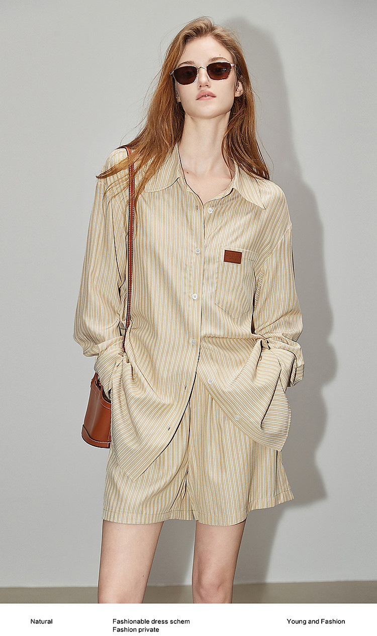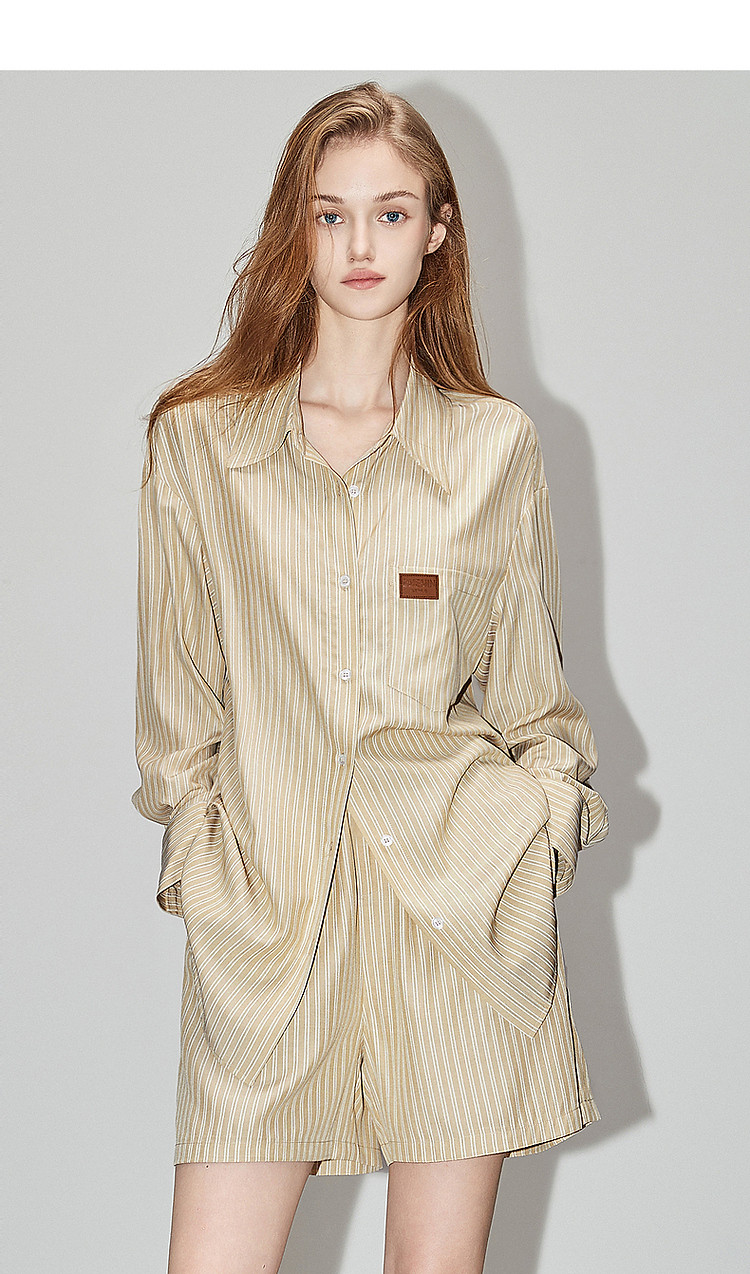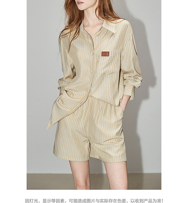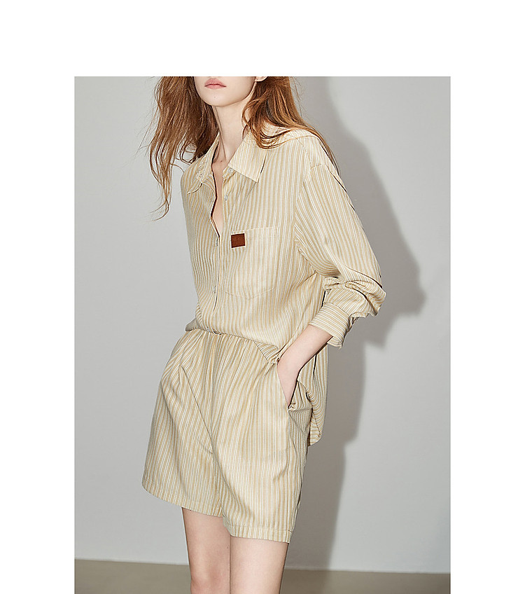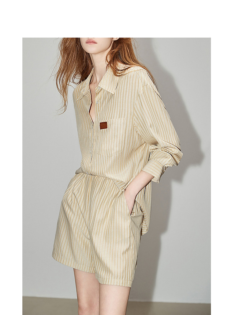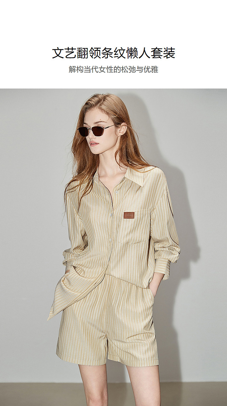 商品名称:【云上月光系列】春秋文艺翻领条纹衬衫松紧腰短裤懒人两件套装女 126913