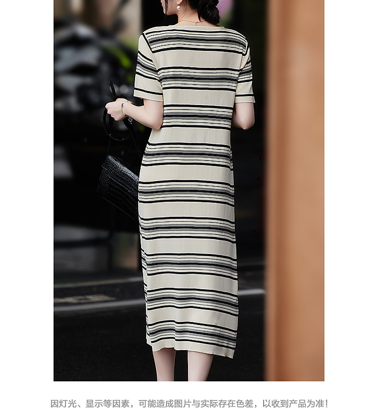 商品名称:【线条美学】春秋美式复古懒人免搭针织裙弹力双曲冰麻藏肉连衣裙 717633