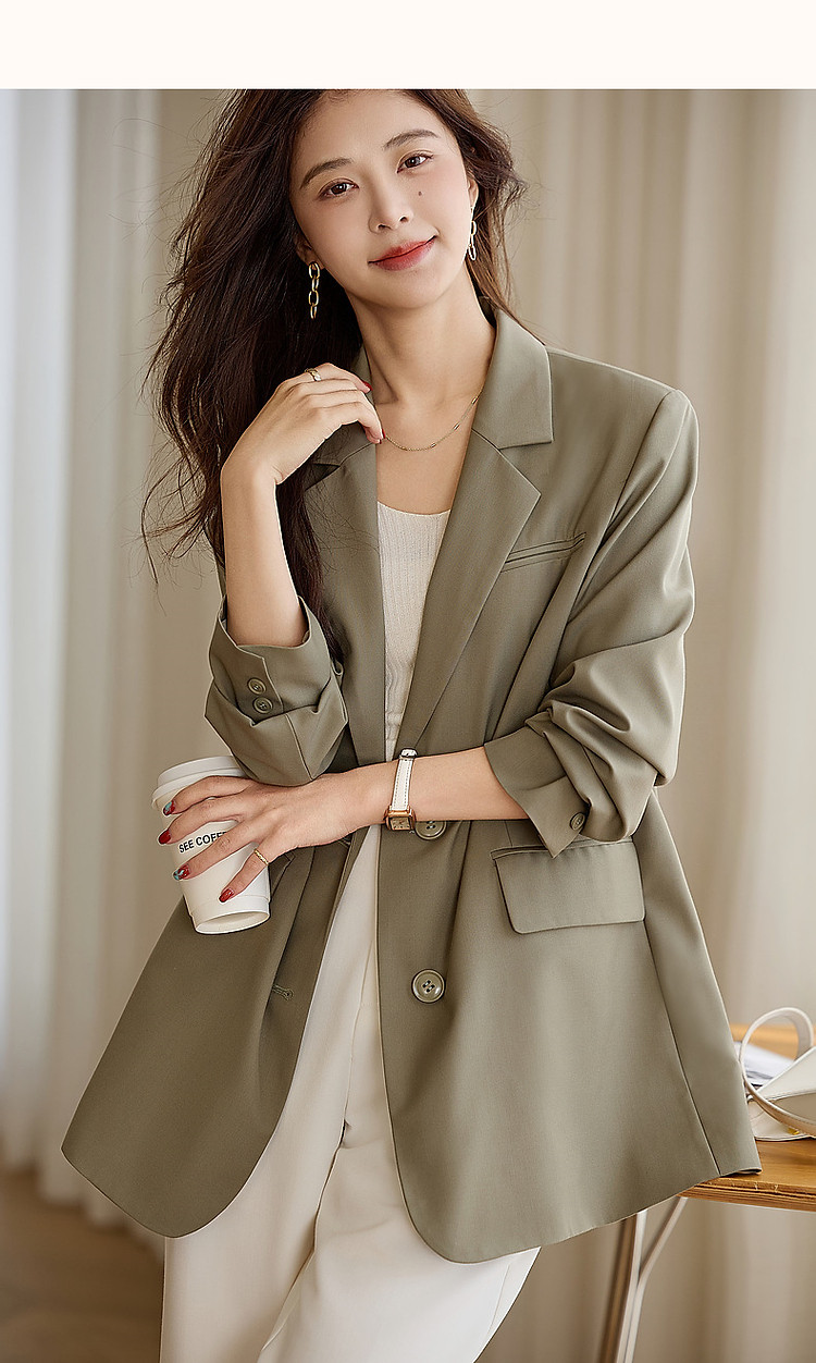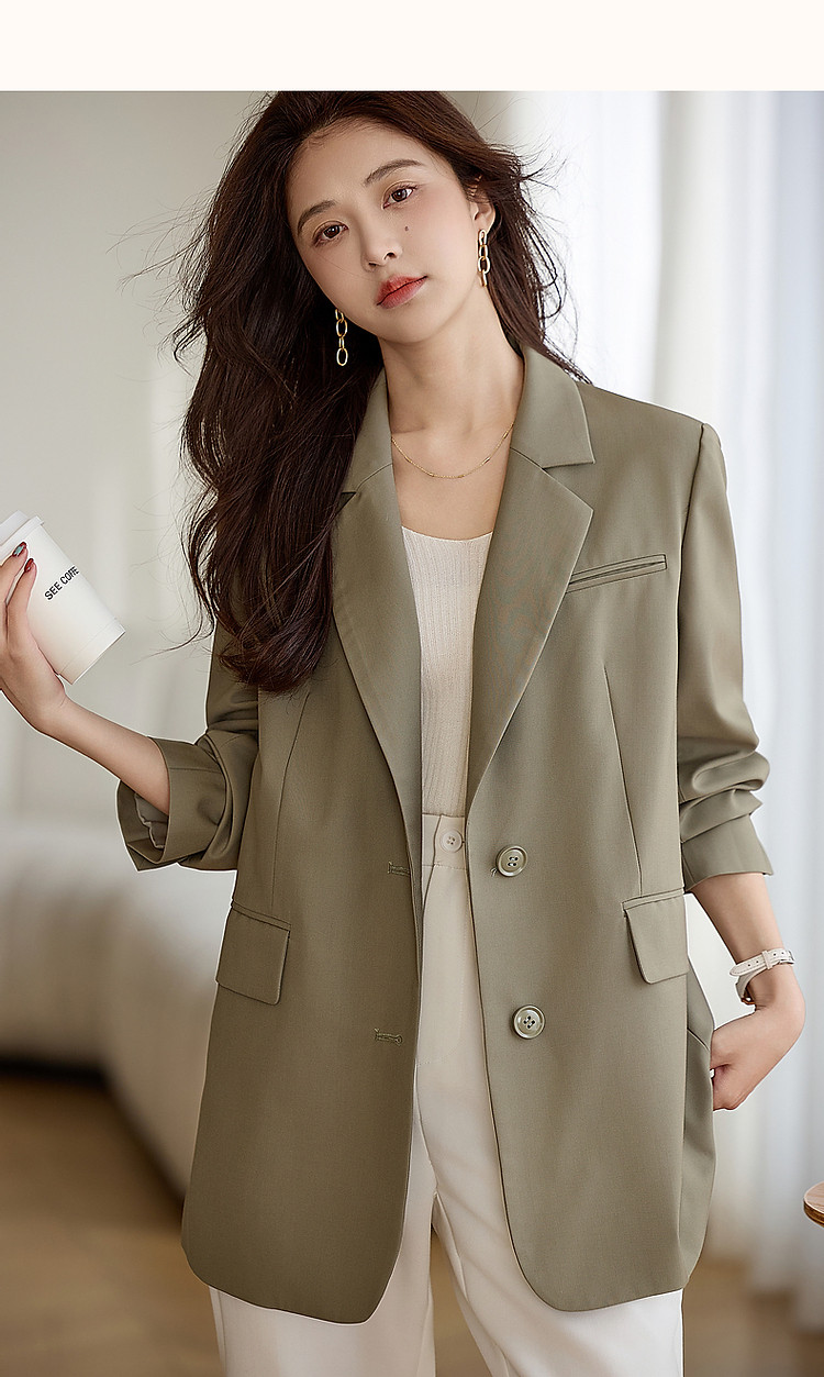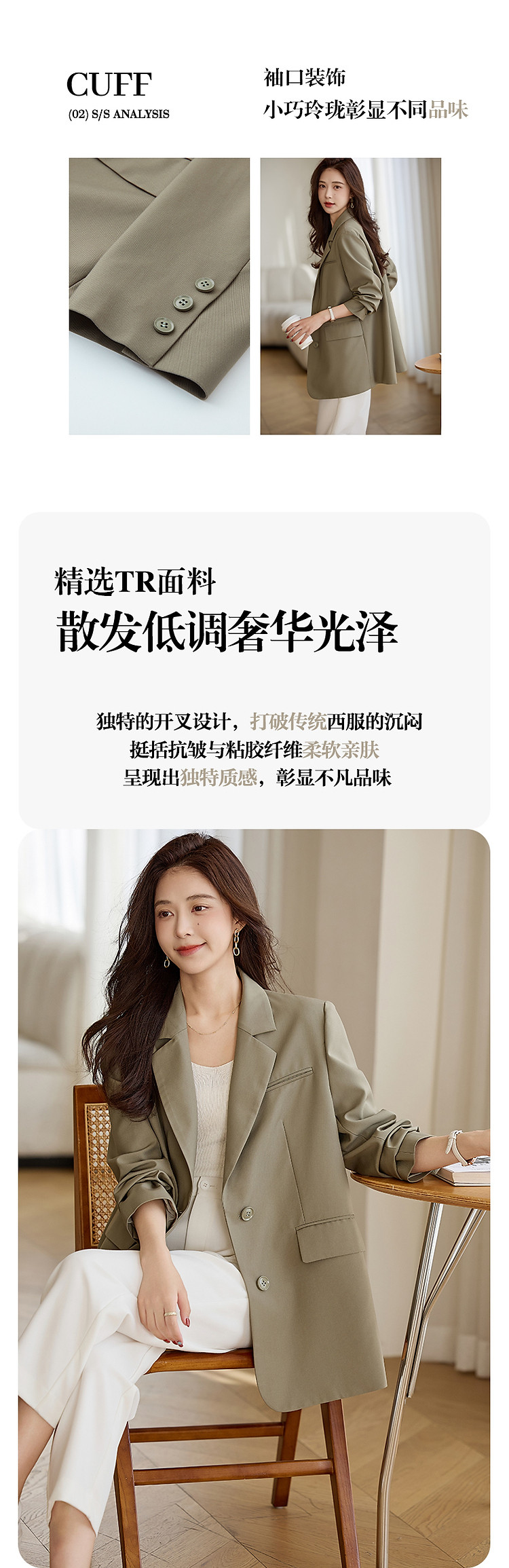 商品名称:【奢感显瘦】春秋西装领宽松长袖TR开衩西服外套女短款 466881