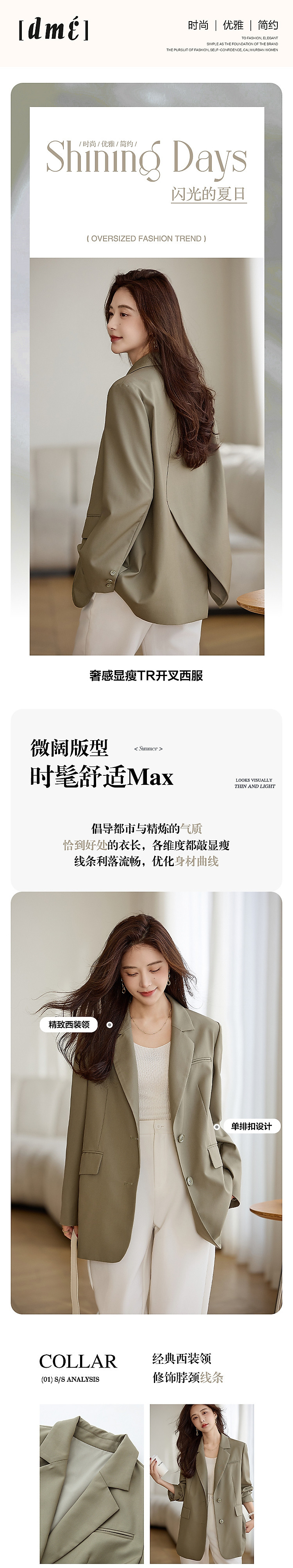 【奢感显瘦】春秋西装领宽松长袖TR开衩西服外套女短款 466881