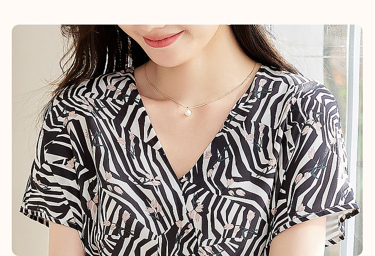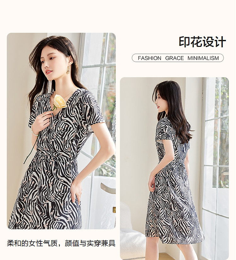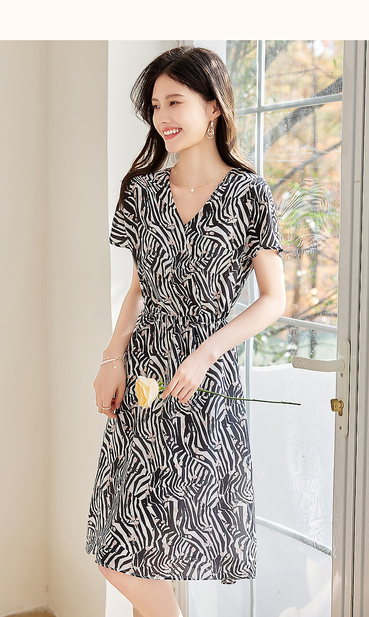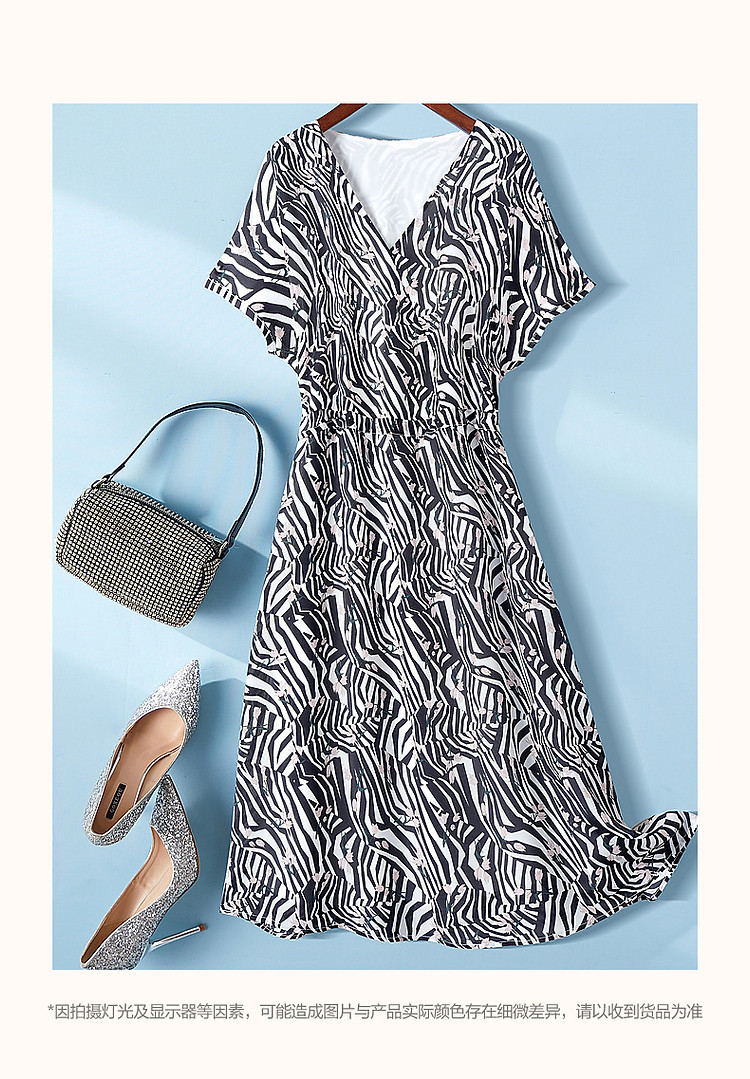 商品名称:【真丝千金风】春轻奢桑蚕丝V领高清印花舒适藏肉连衣裙 758017