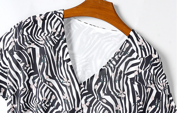 【真丝千金风】春轻奢桑蚕丝V领高清印花舒适藏肉连衣裙 758017