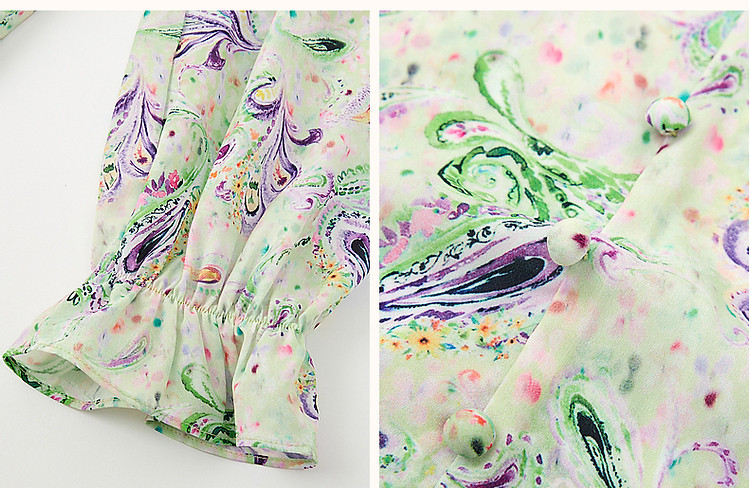 法式浪漫春装气质优雅原创印花开领雪纺女式显瘦长袖衬衫 033304