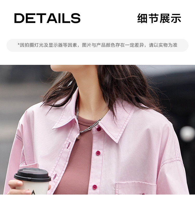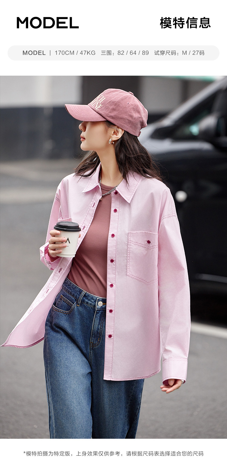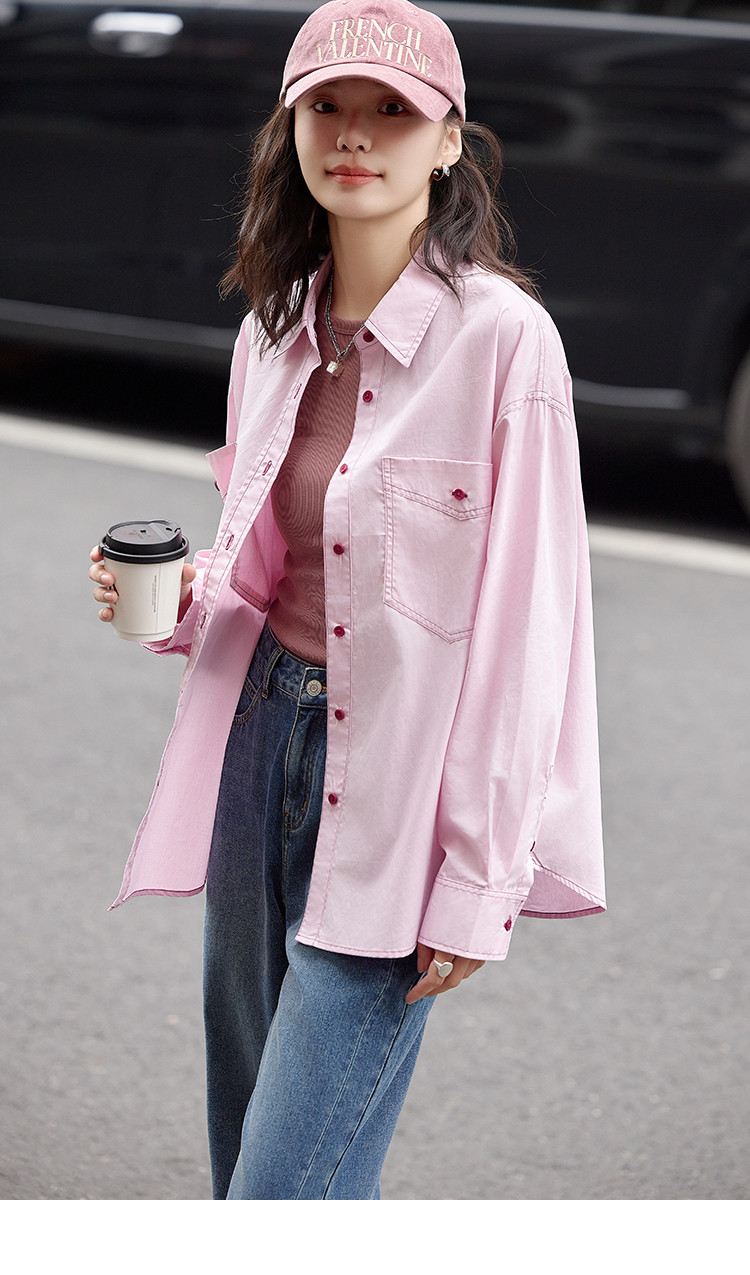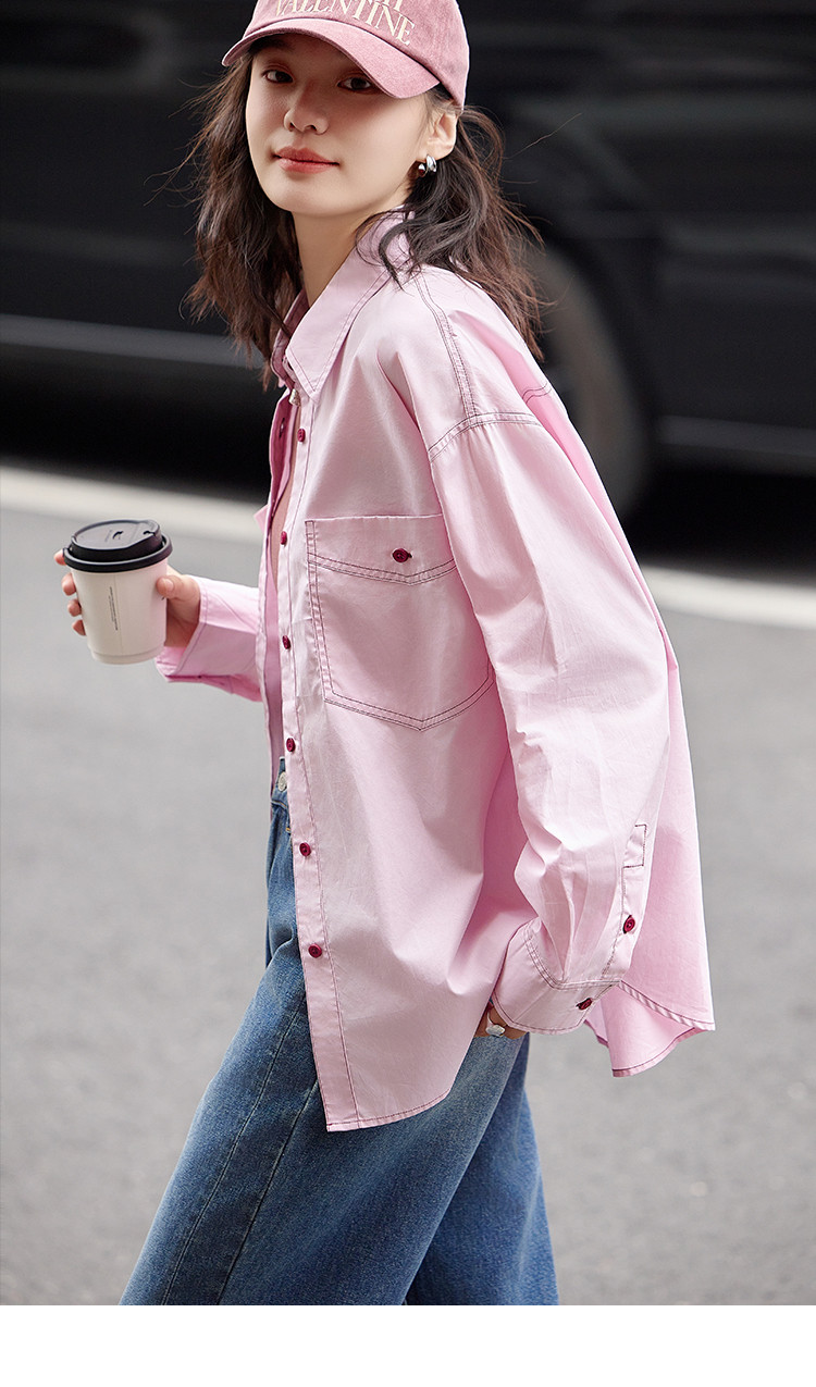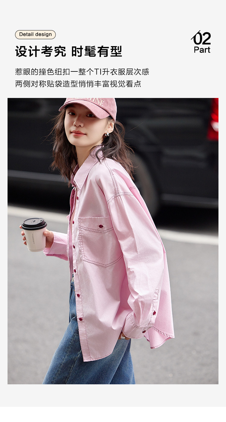 【翻领双贴袋衬衫】秋款 翻领宽松撞色元气感衬衫女 570690