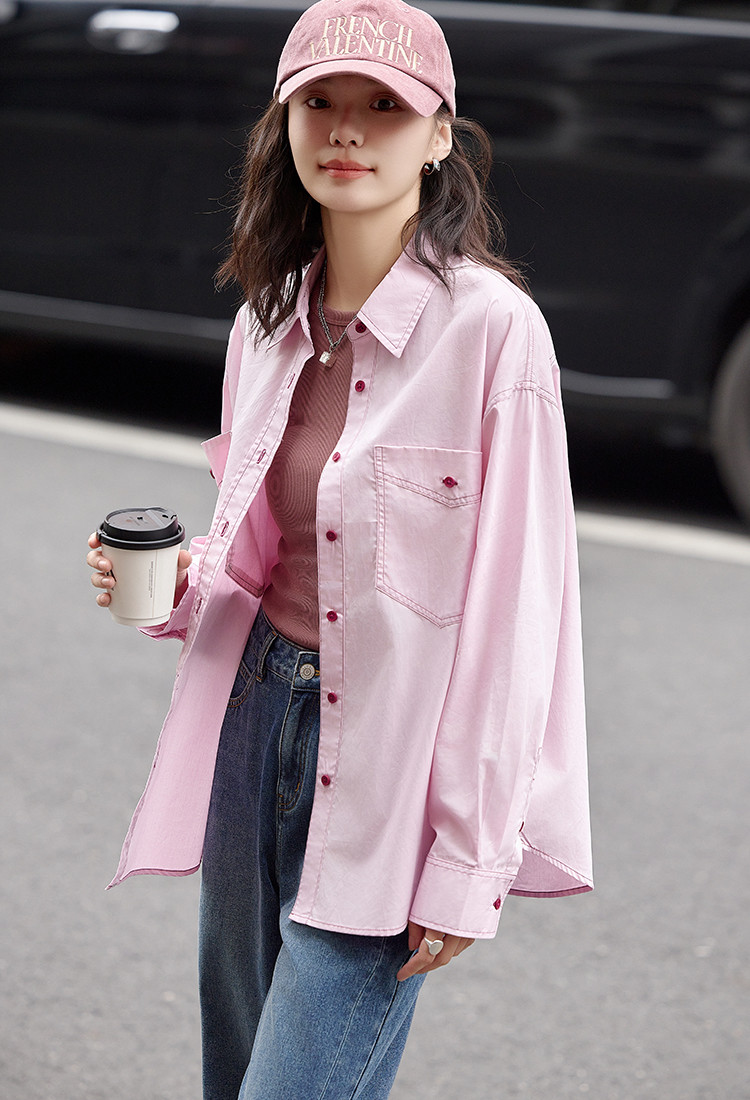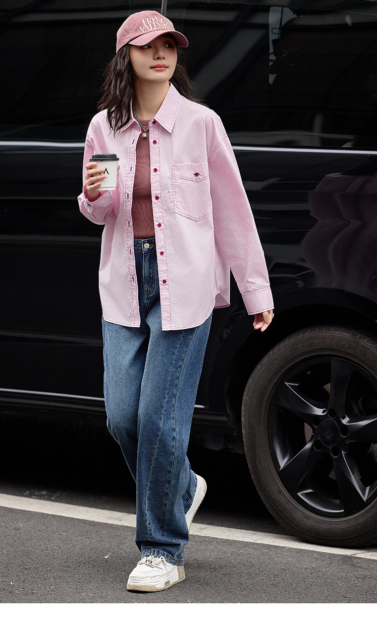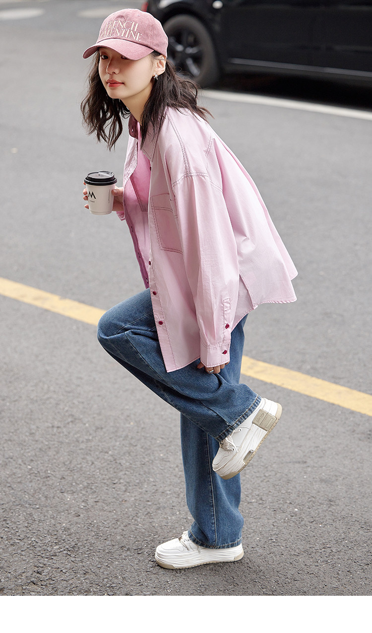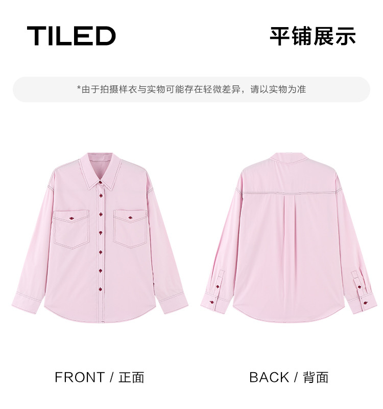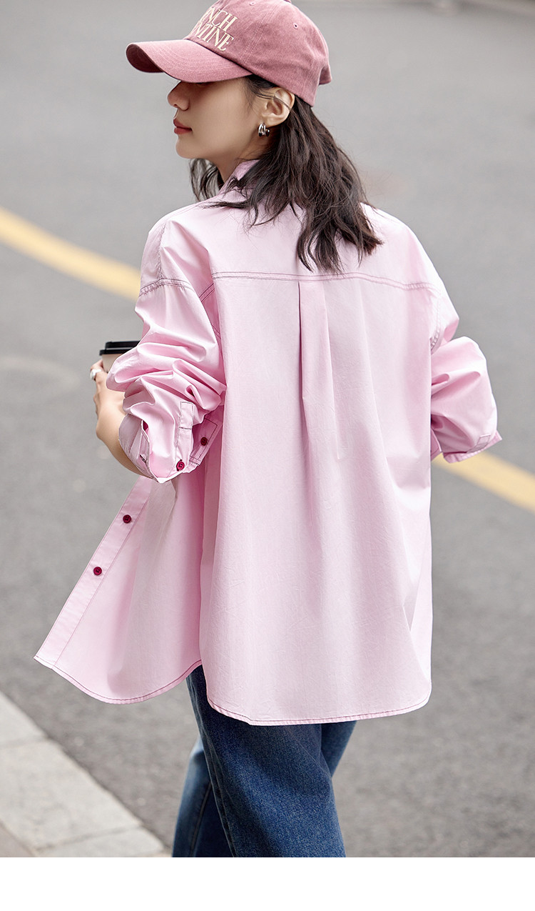 【翻领双贴袋衬衫】秋款 翻领宽松撞色元气感衬衫女 570690
