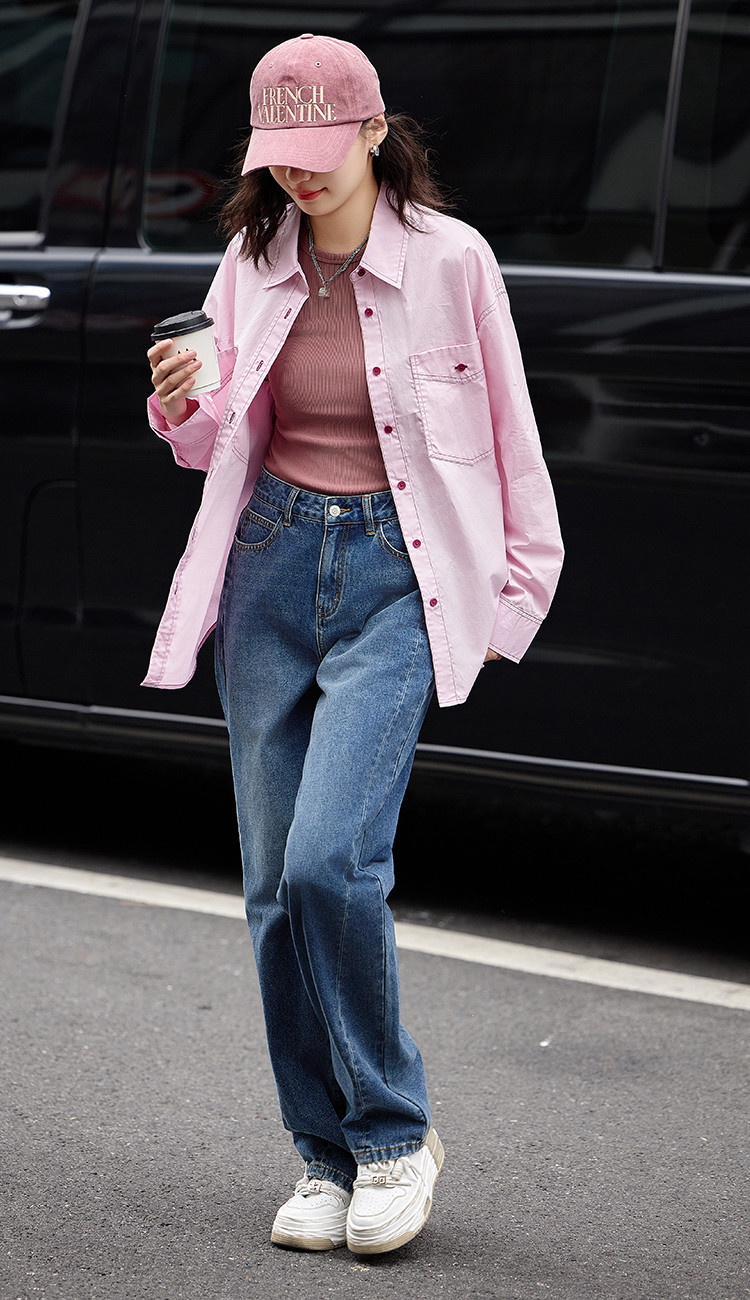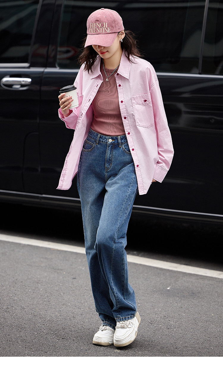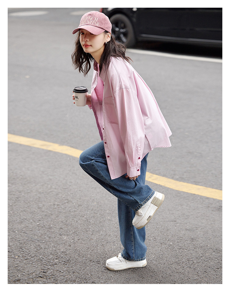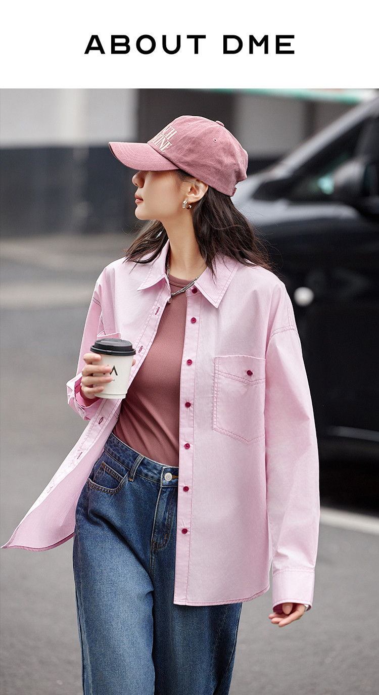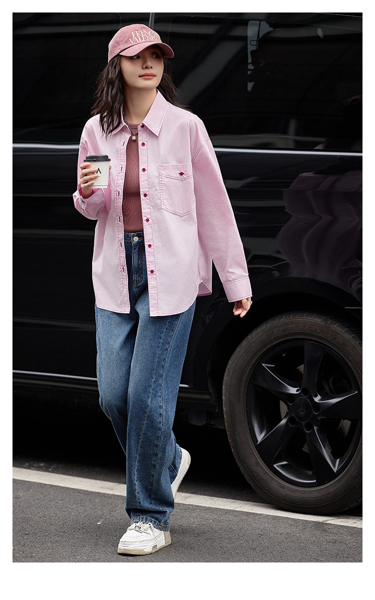 【翻领双贴袋衬衫】秋款 翻领宽松撞色元气感衬衫女 570690