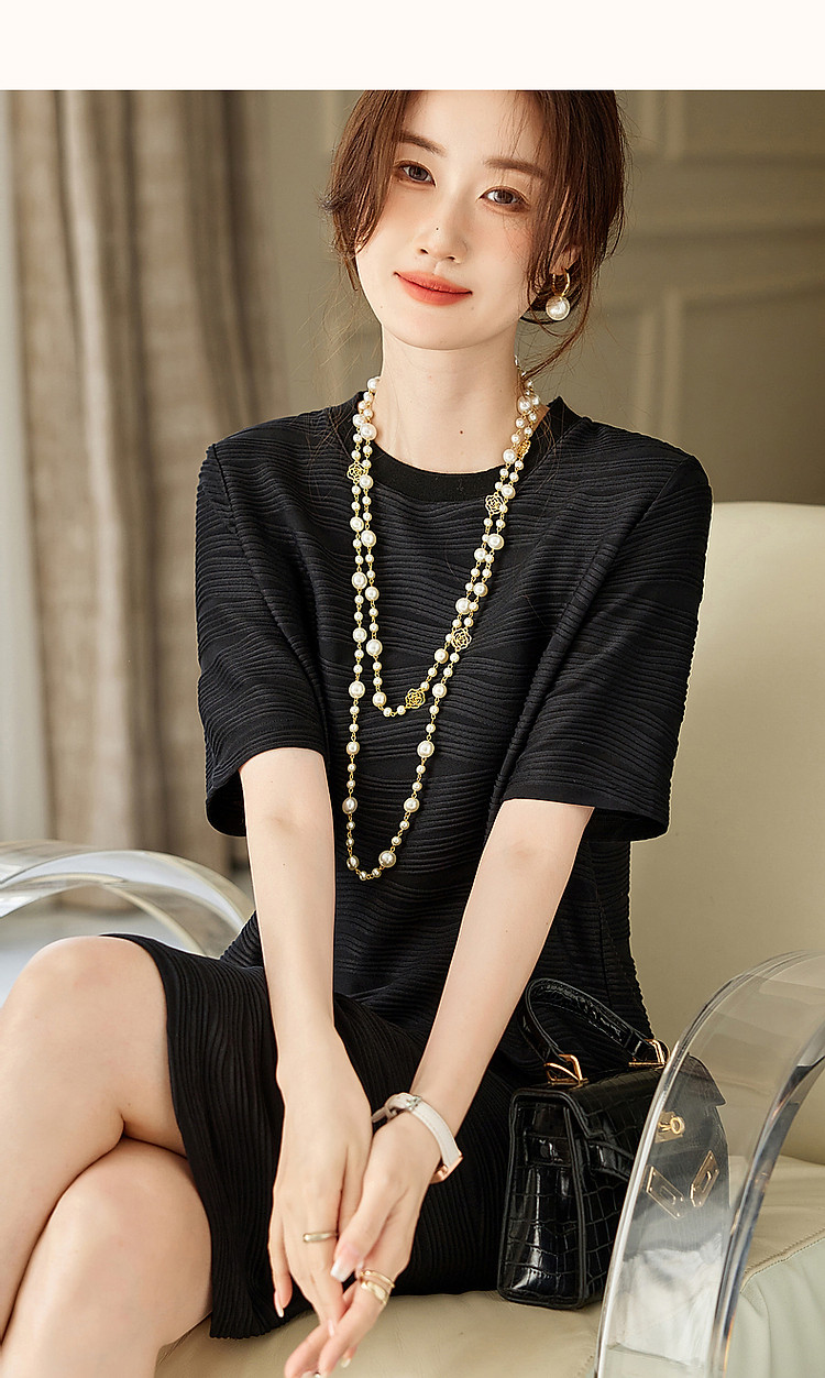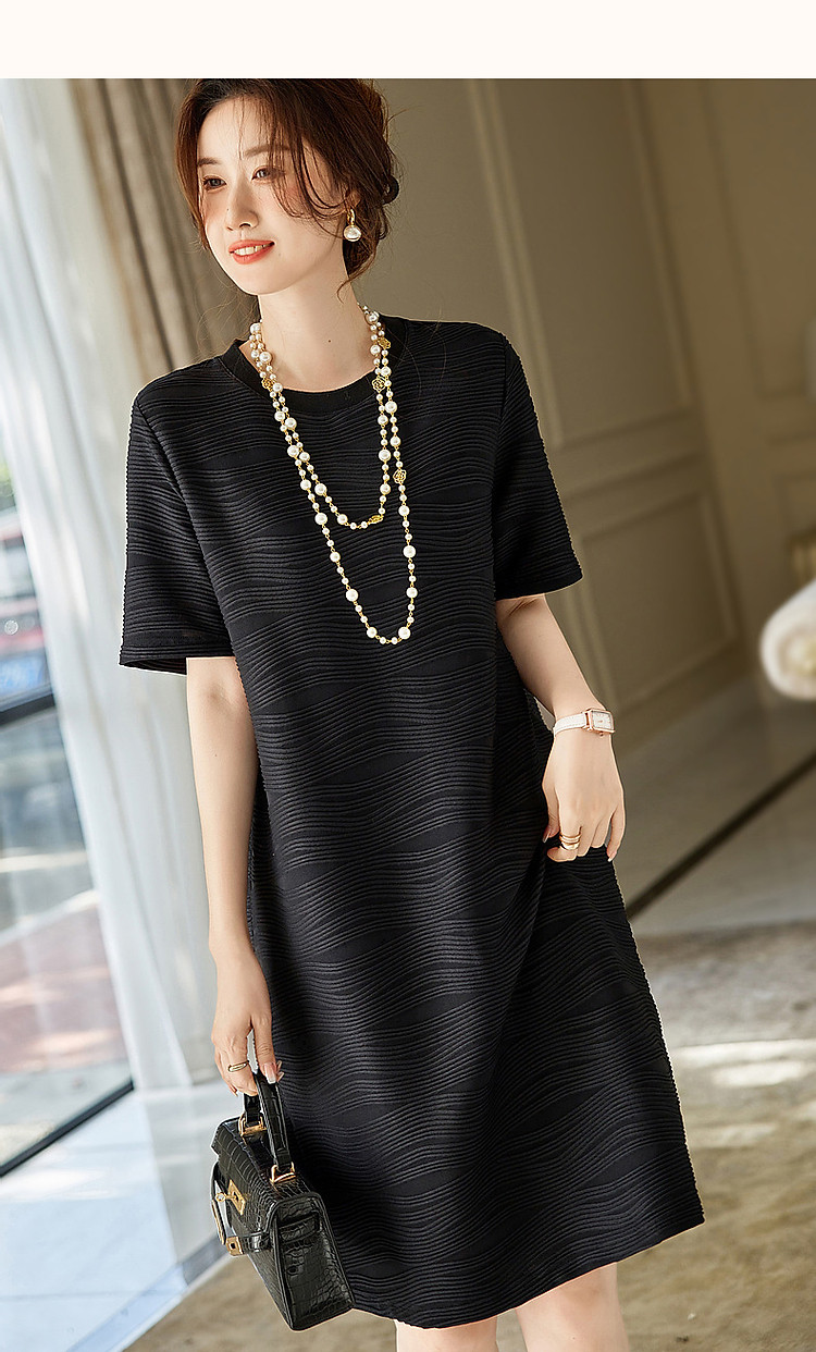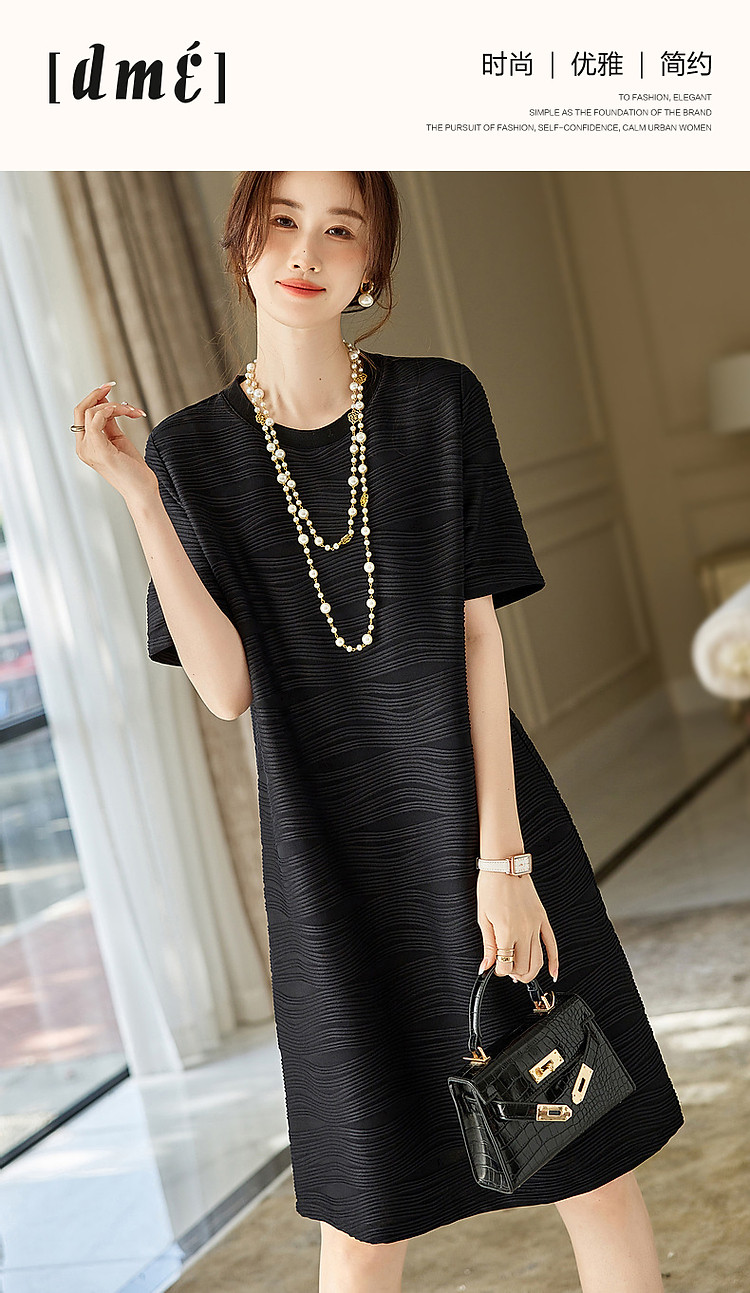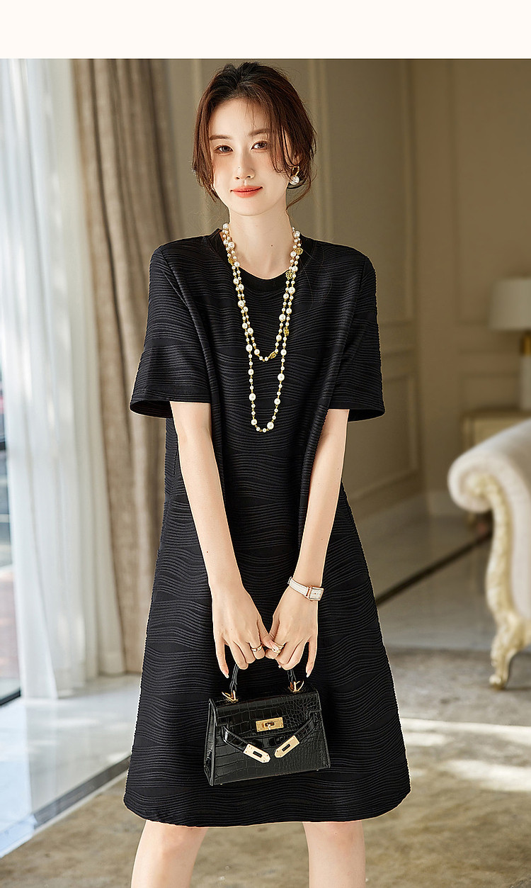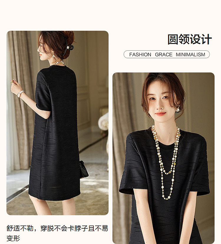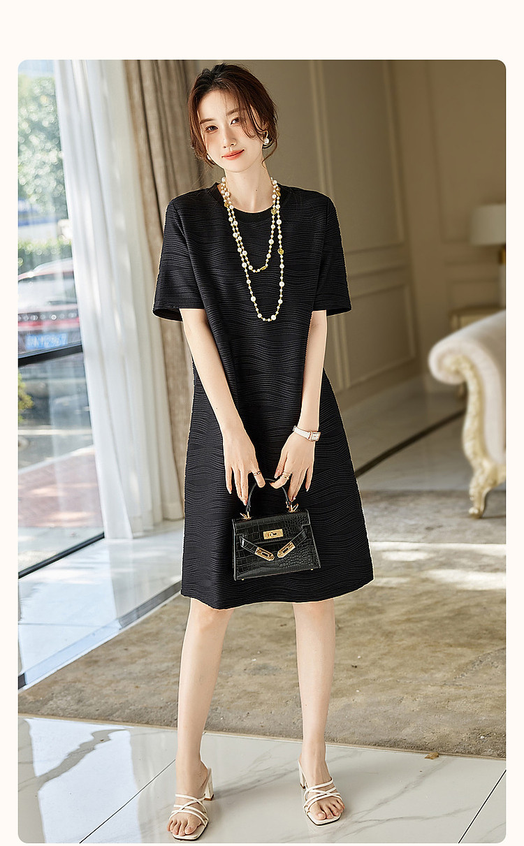 商品名称:【简约清雅】春秋圆领a字立体肌理感针织微弹连衣裙女中长款 102657