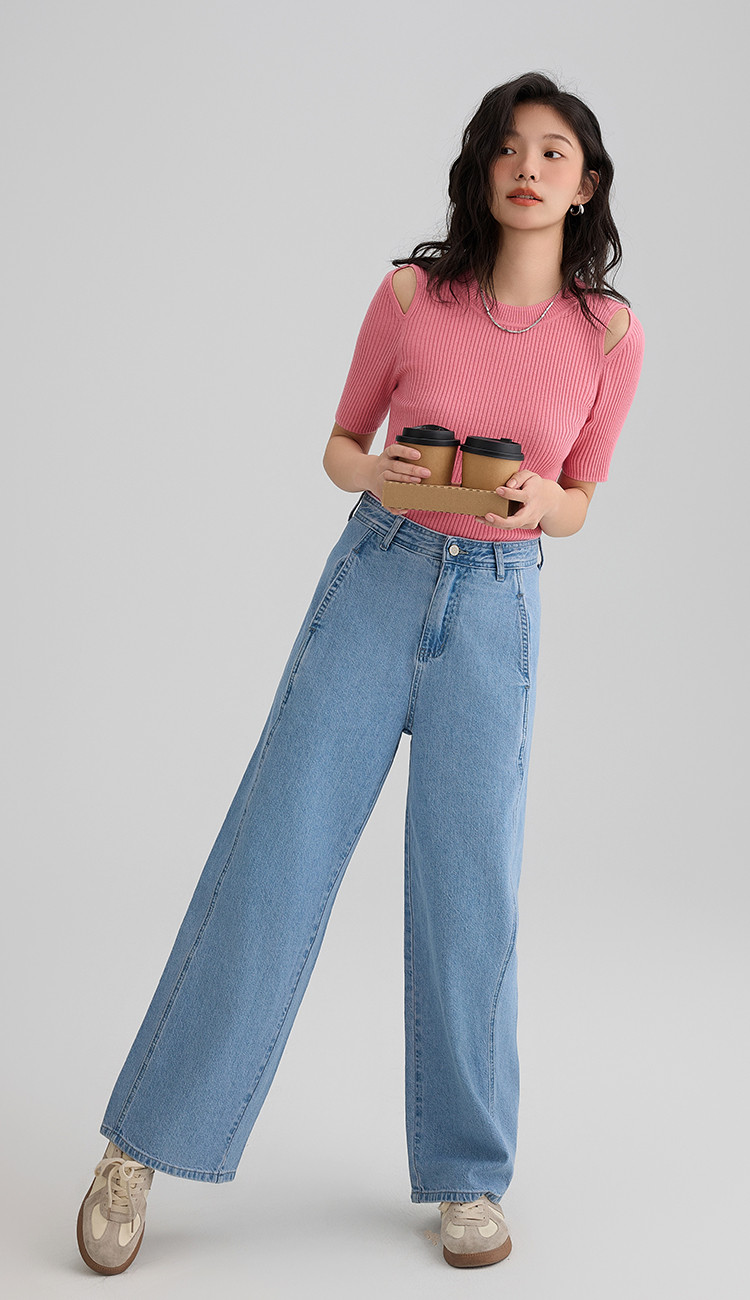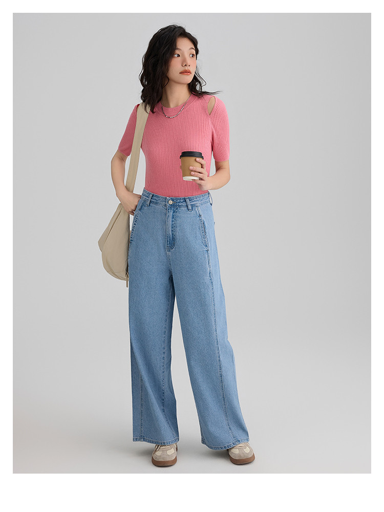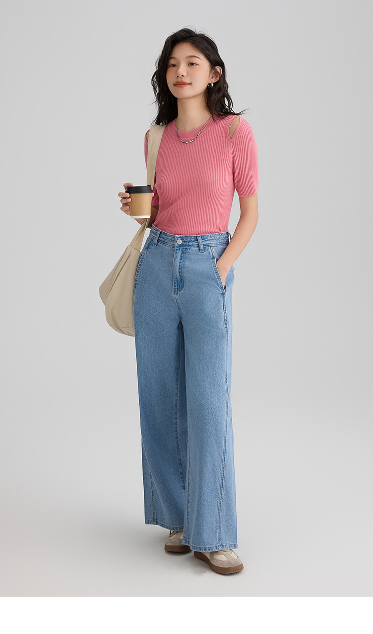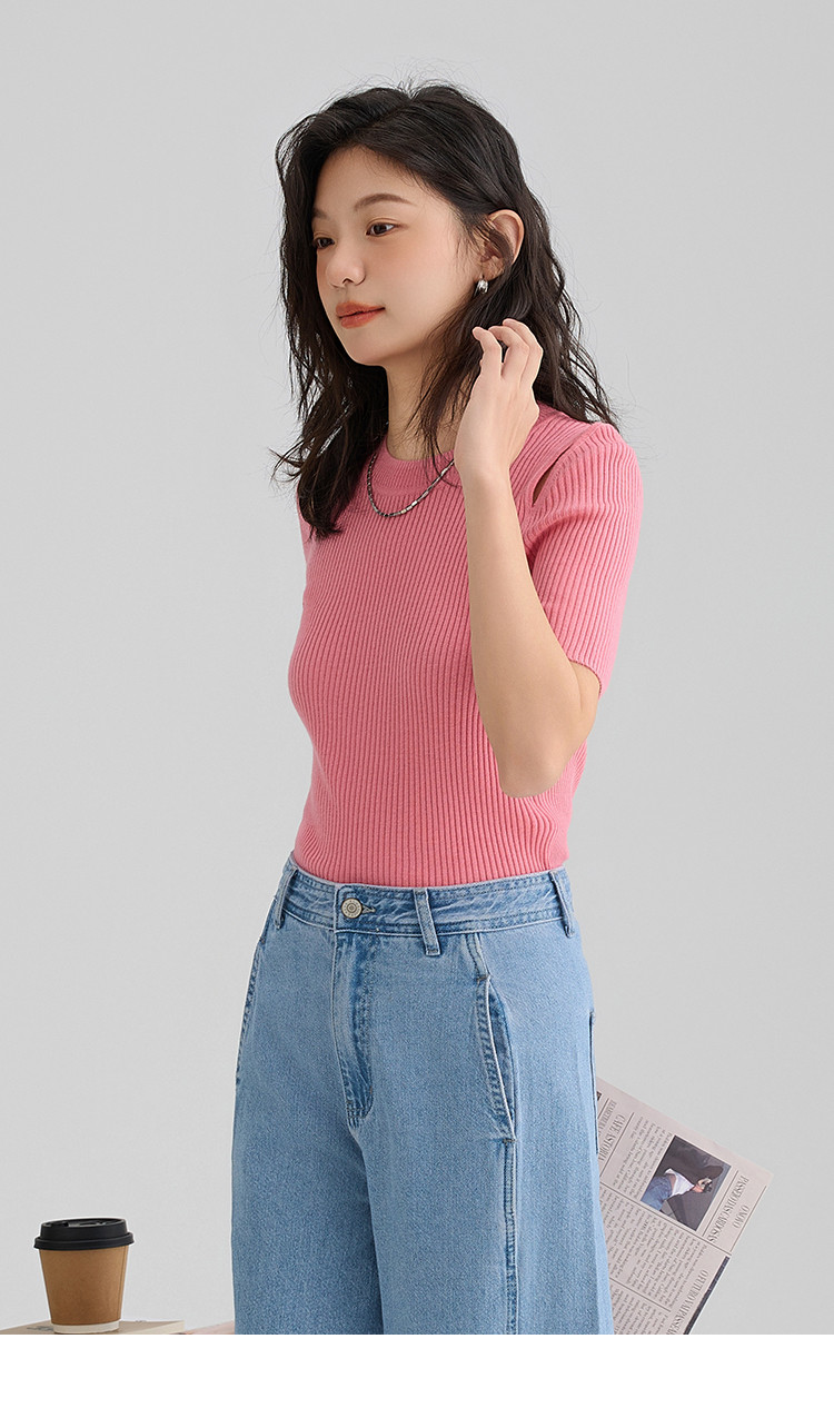 【温柔嫩粉针织衫】夏款个性肩部镂空简约减龄修身显瘦 942594