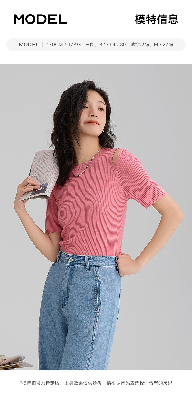 商品名称:【温柔嫩粉针织衫】夏款个性肩部镂空简约减龄修身显瘦 942594