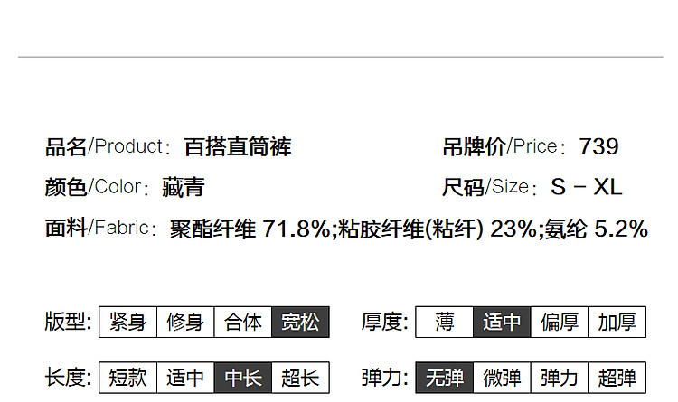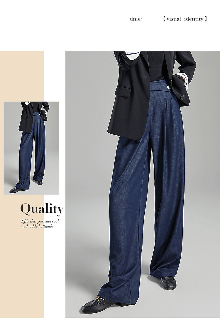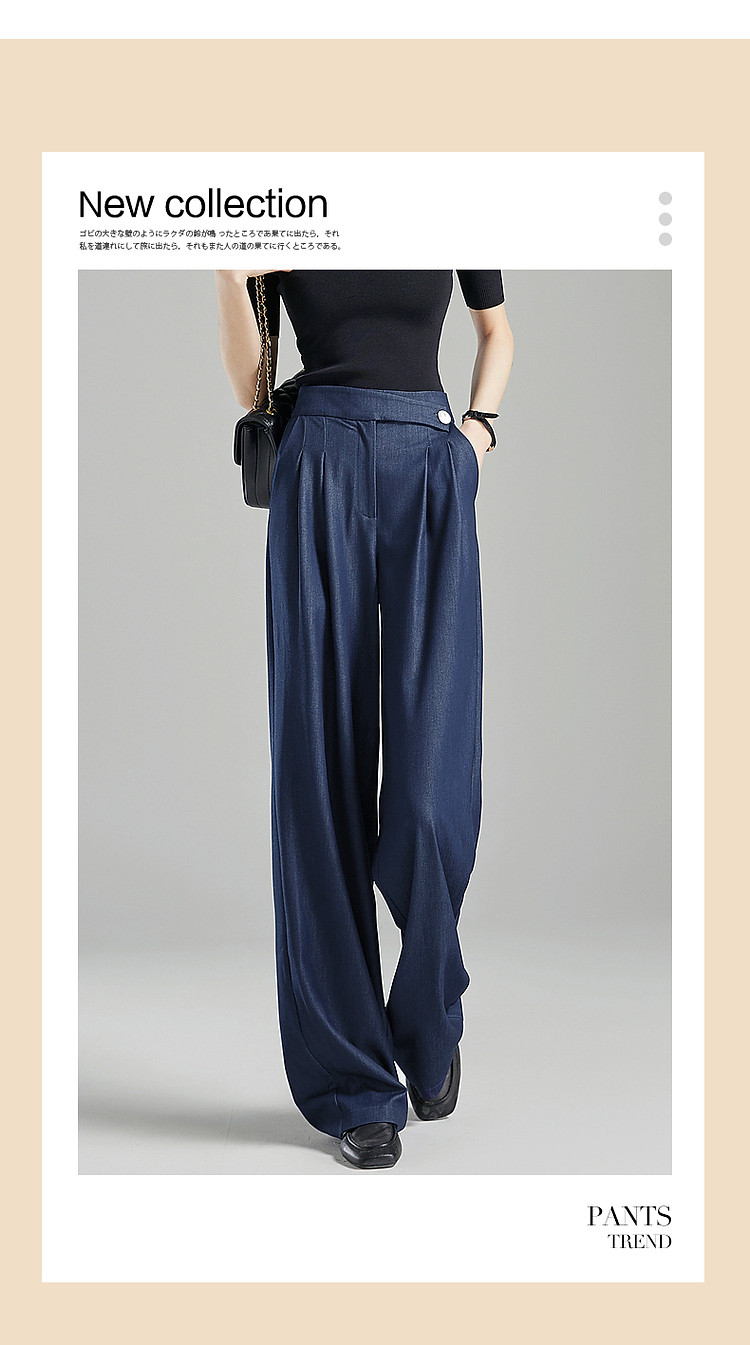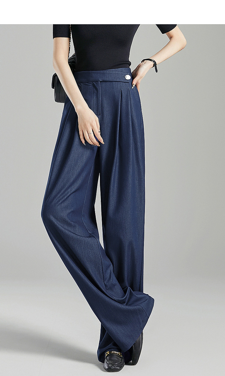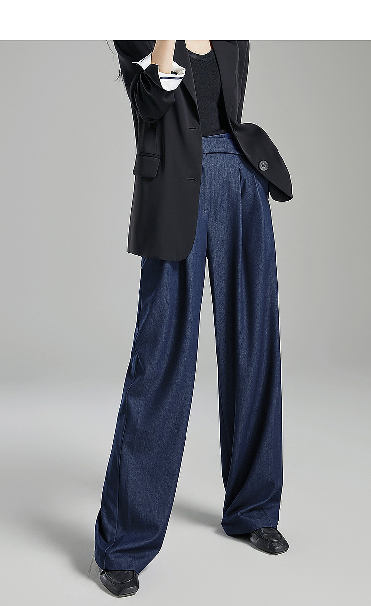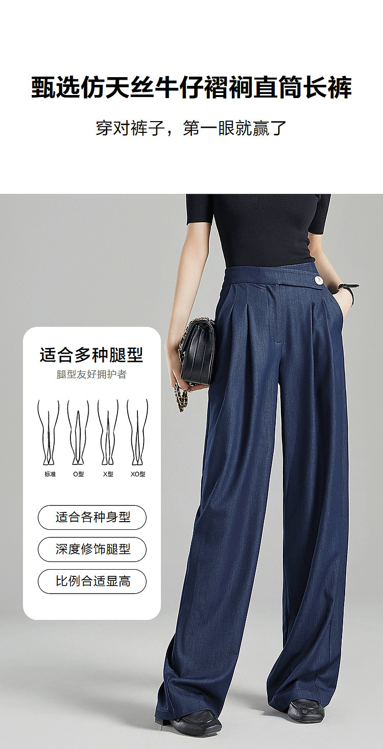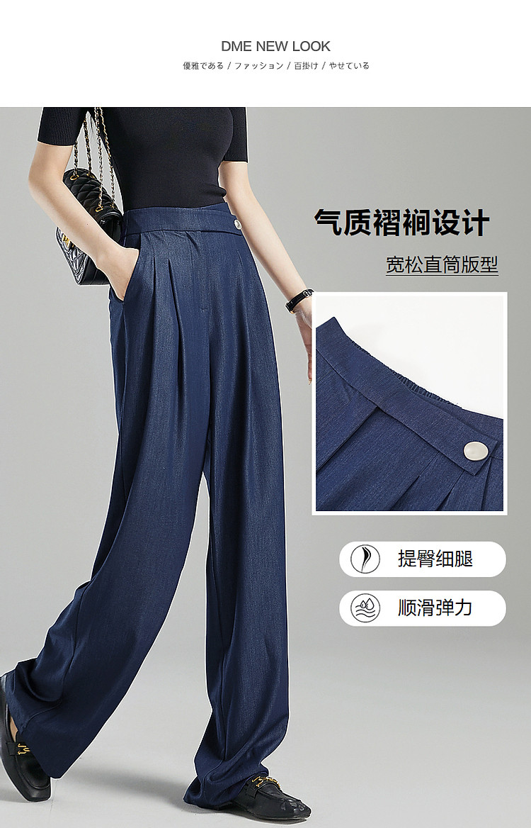 商品名称:【甄选仿天丝牛仔】春季时髦褶裥后腰松紧直筒长裤好搭女式休闲裤 104129