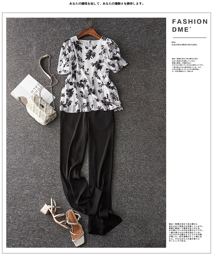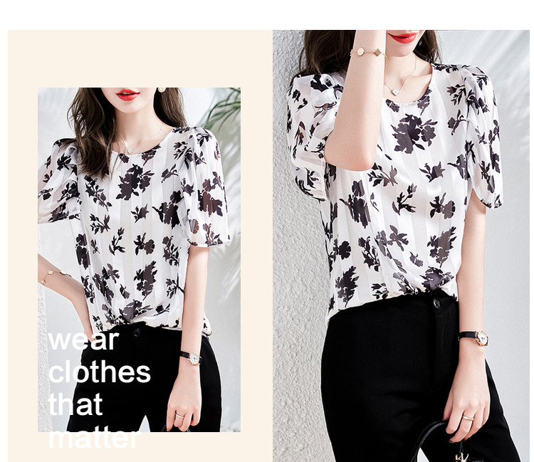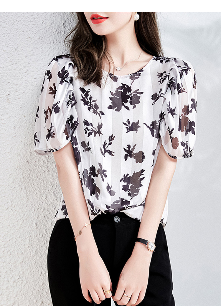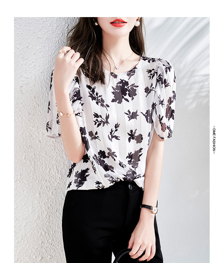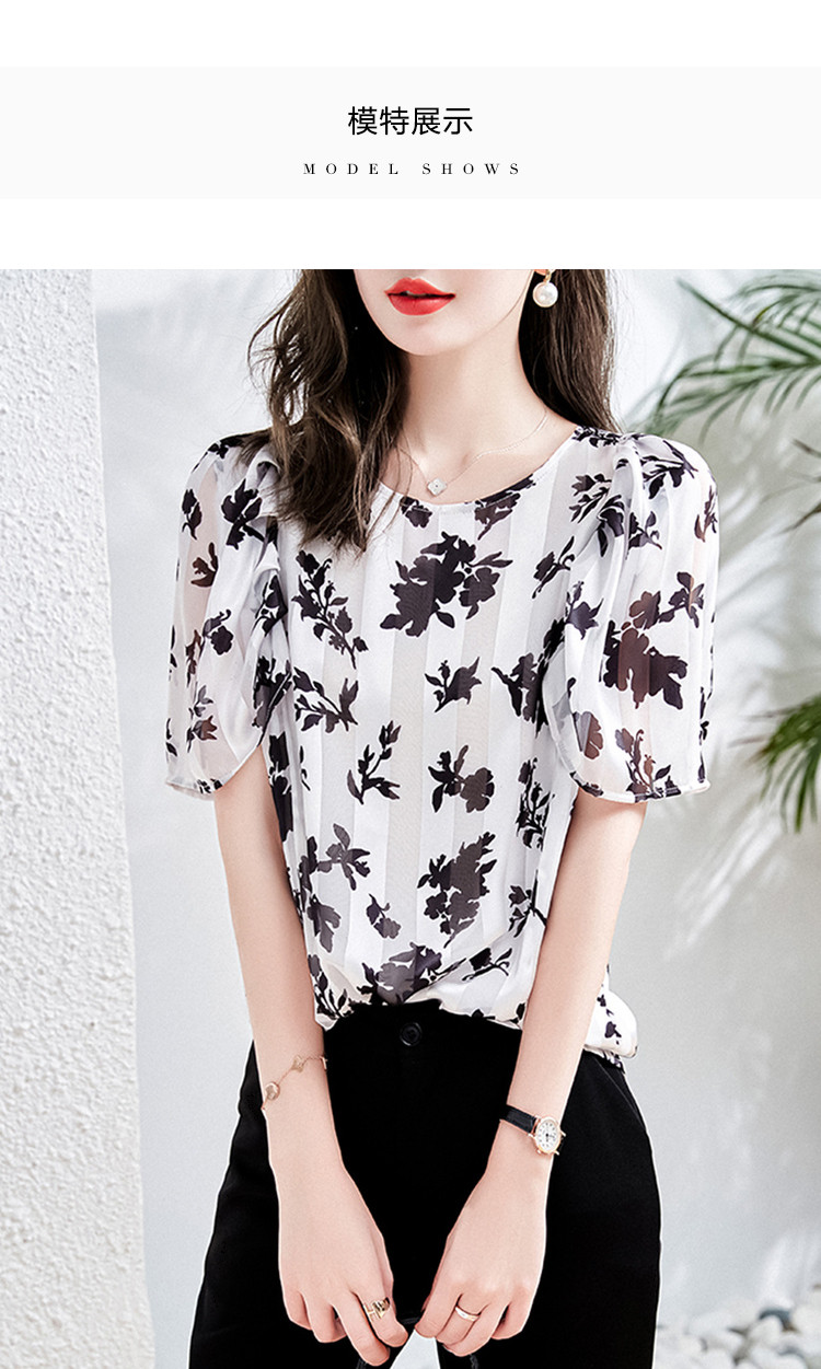 玖姿商场同款花卉轻熟风雪纺套头上衣短袖夏季 657292